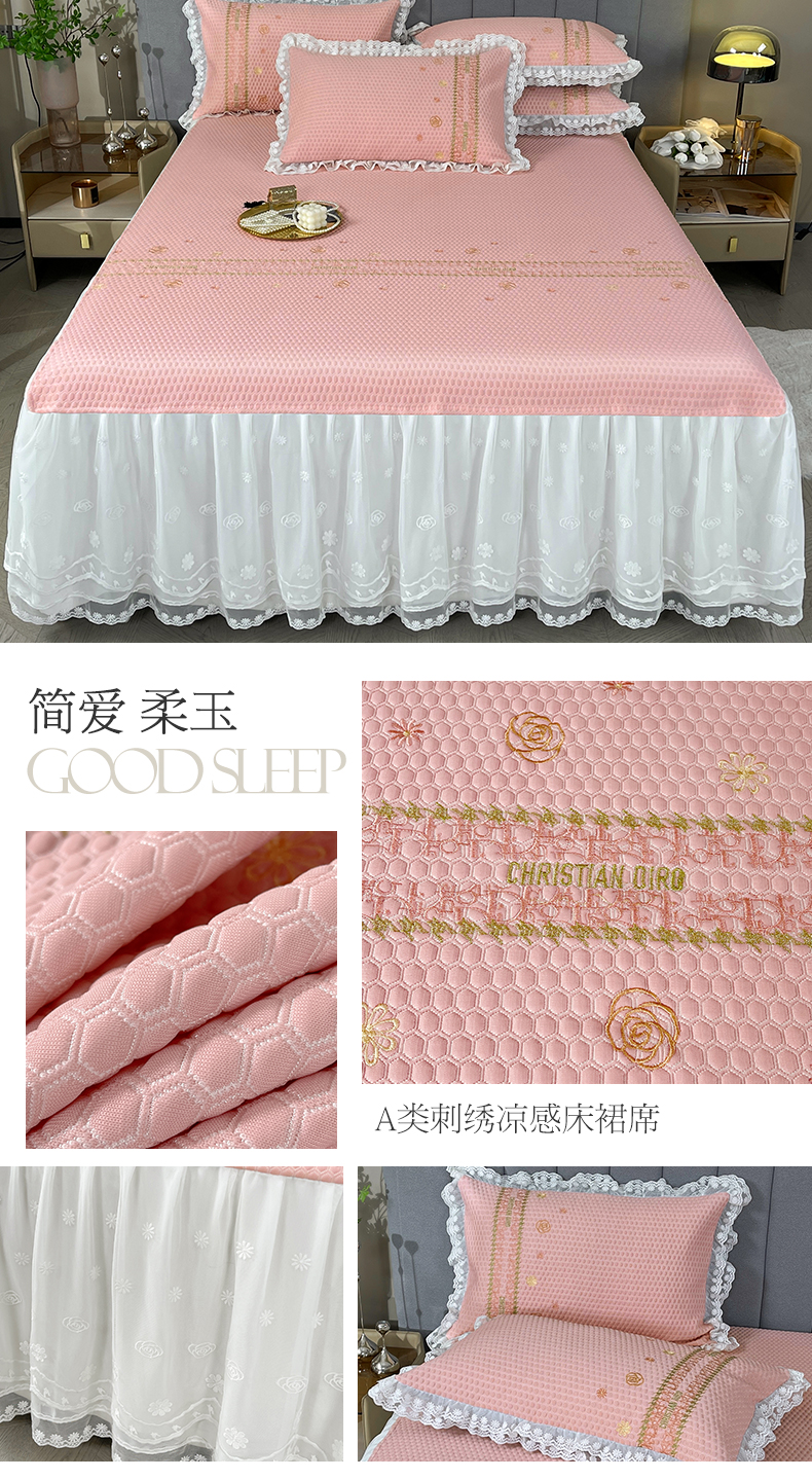 宜凡家纺2024新款A类蜂巢冰柠凉席床裙款三件套 简爱 柔玉