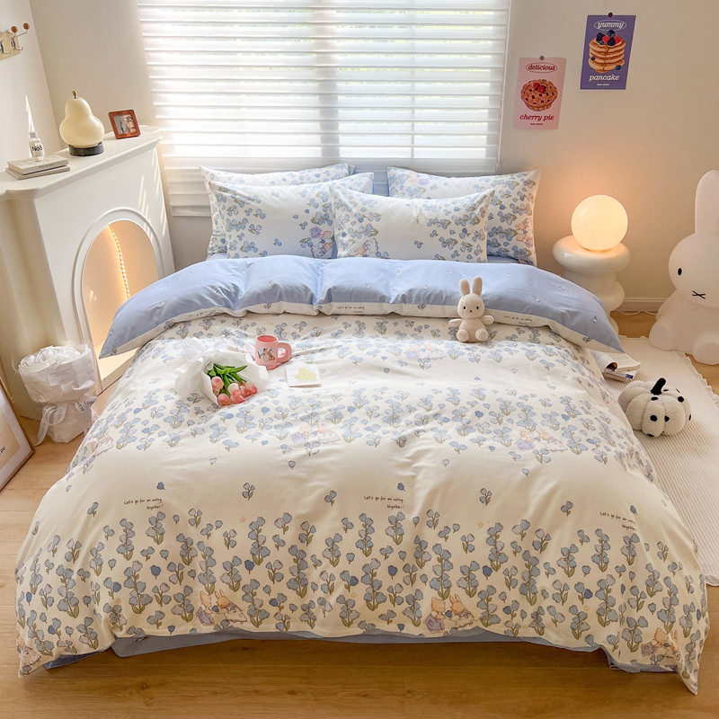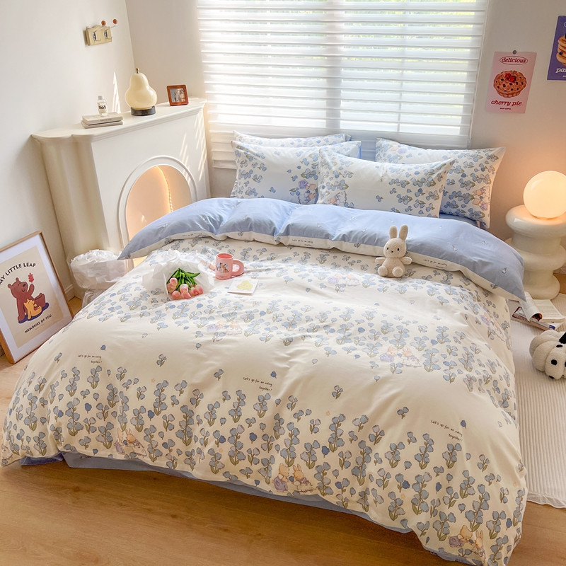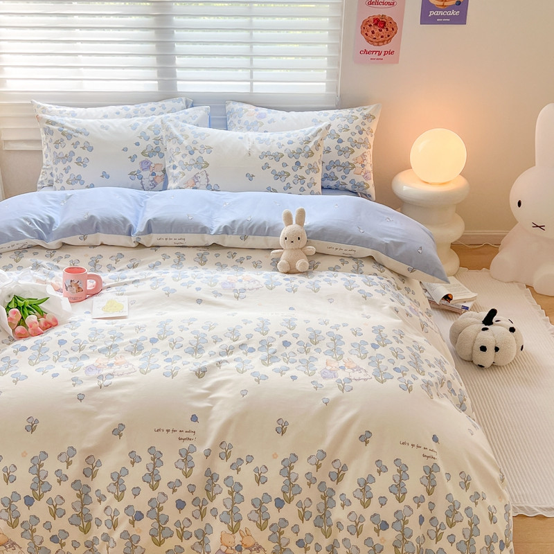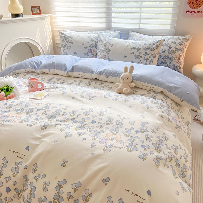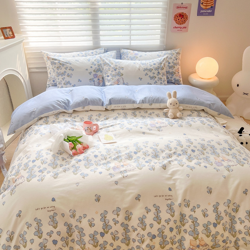 顾里家纺 2023新款40支13372全棉四季款韩系氛围四件套 铃兰小兔