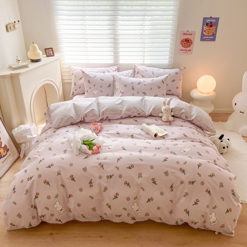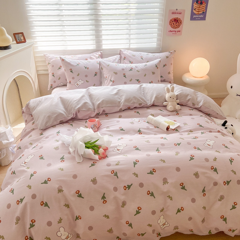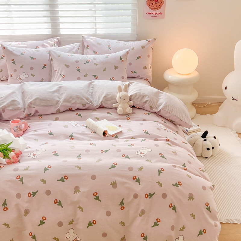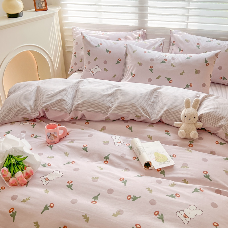 商品名称:顾里家纺 2023新款40支13372全棉四季款韩系氛围四件套 紫雾花兔