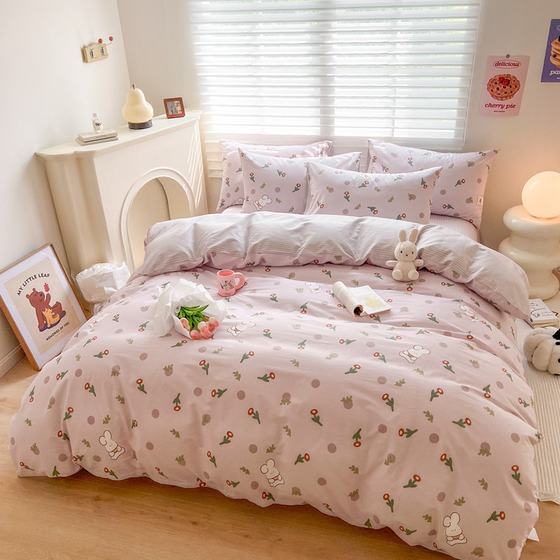 顾里家纺 2023新款40支13372全棉四季款韩系氛围四件套 紫雾花兔