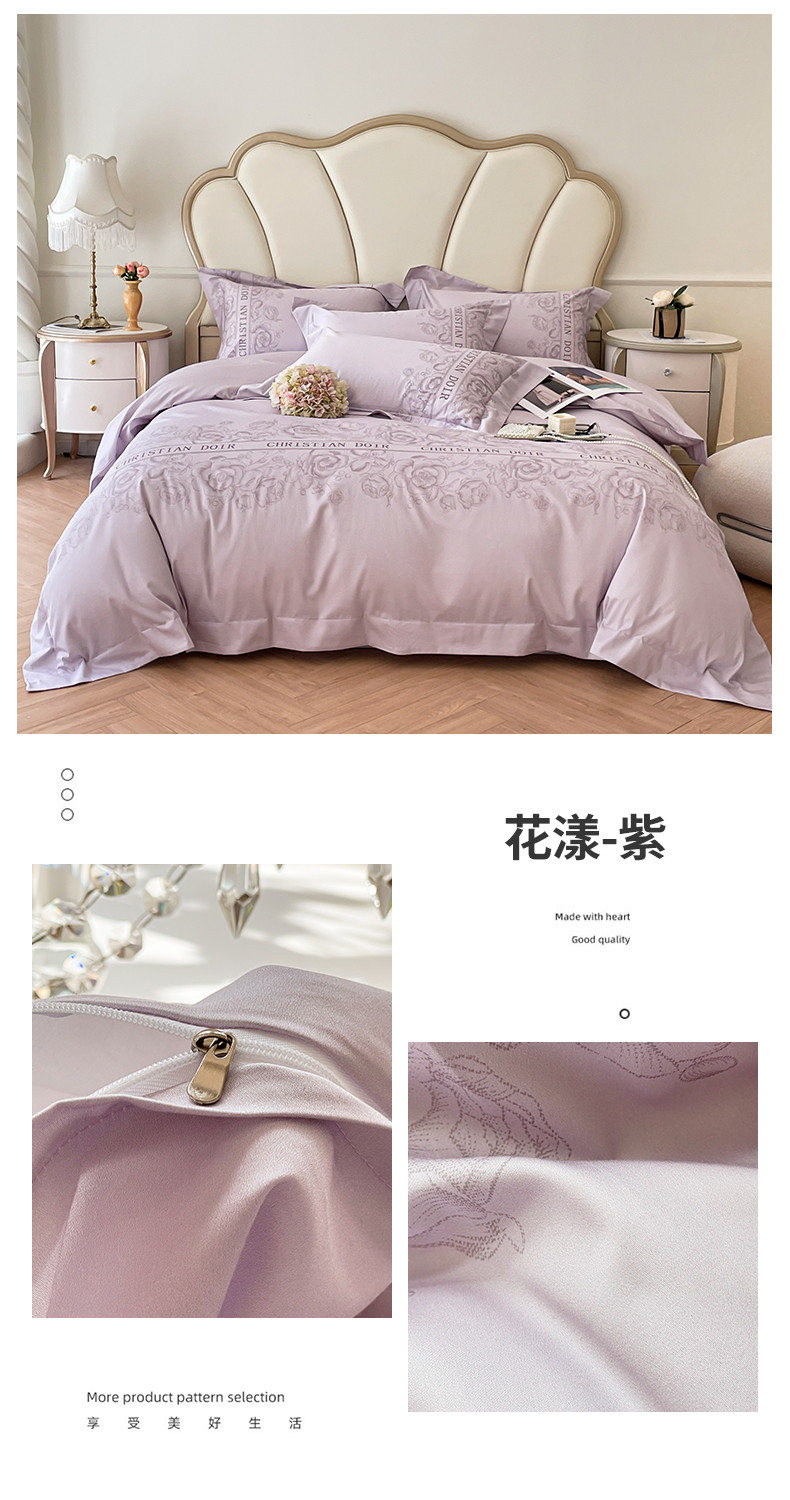 (总)蓝米卡夫 2025秋冬-全棉60支磨毛印+绣-郁金香系列(礼盒包装)提供买家秀,郁金香-粉玉,郁金香-米,郁金香-紫