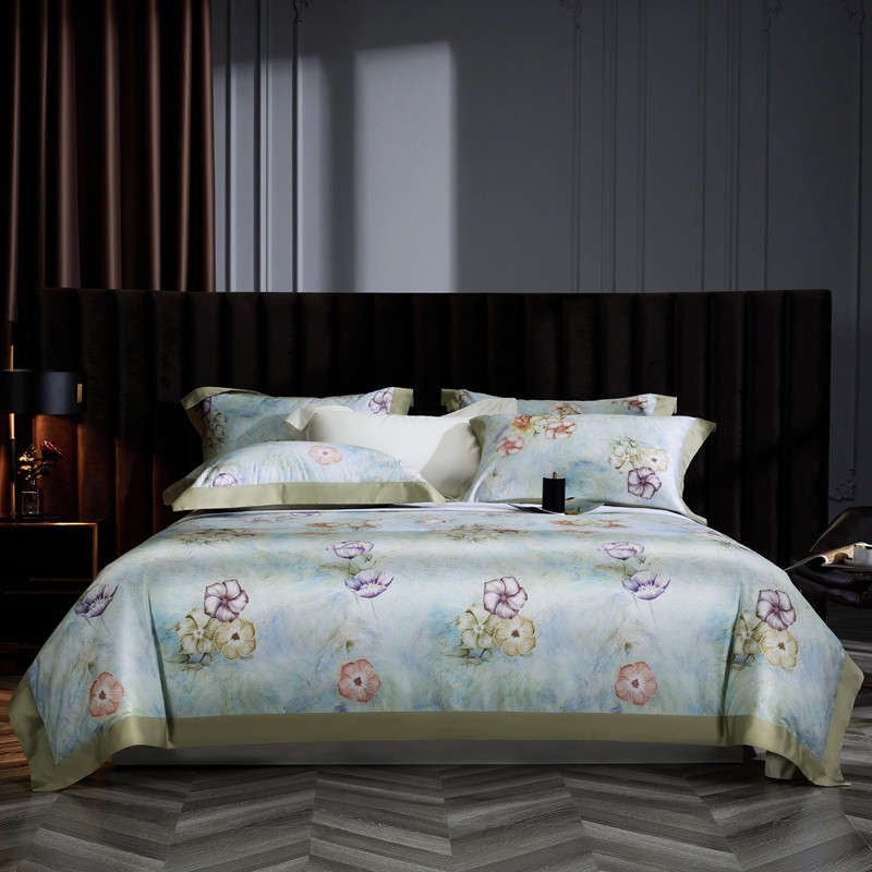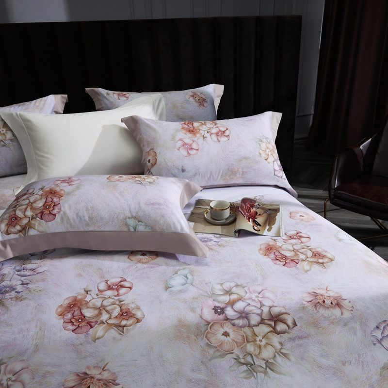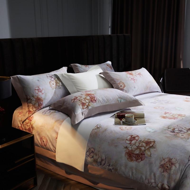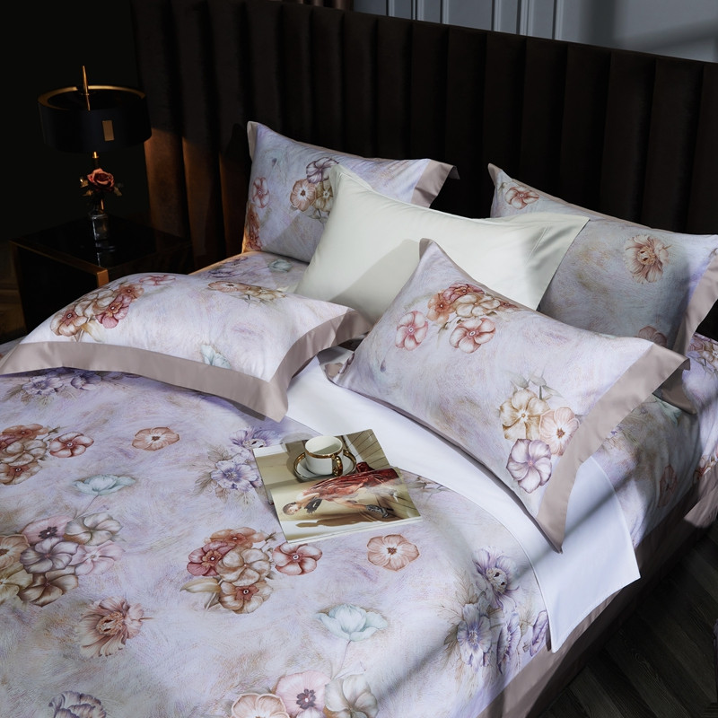 (总)缔缦 2023新款100s长绒棉拼角款数码印花四件套
