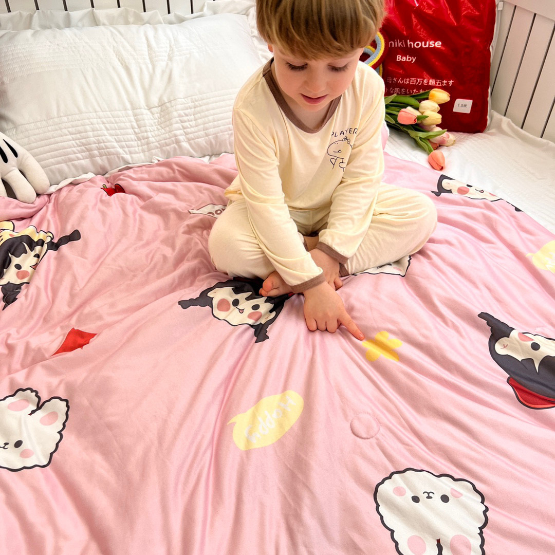 (总)花满路 2024新款有氨凉感丝卡通印花豆豆被儿童被夏被被子,玉桂狗,库洛米,KT猫,卡帕狗,米乐蒂