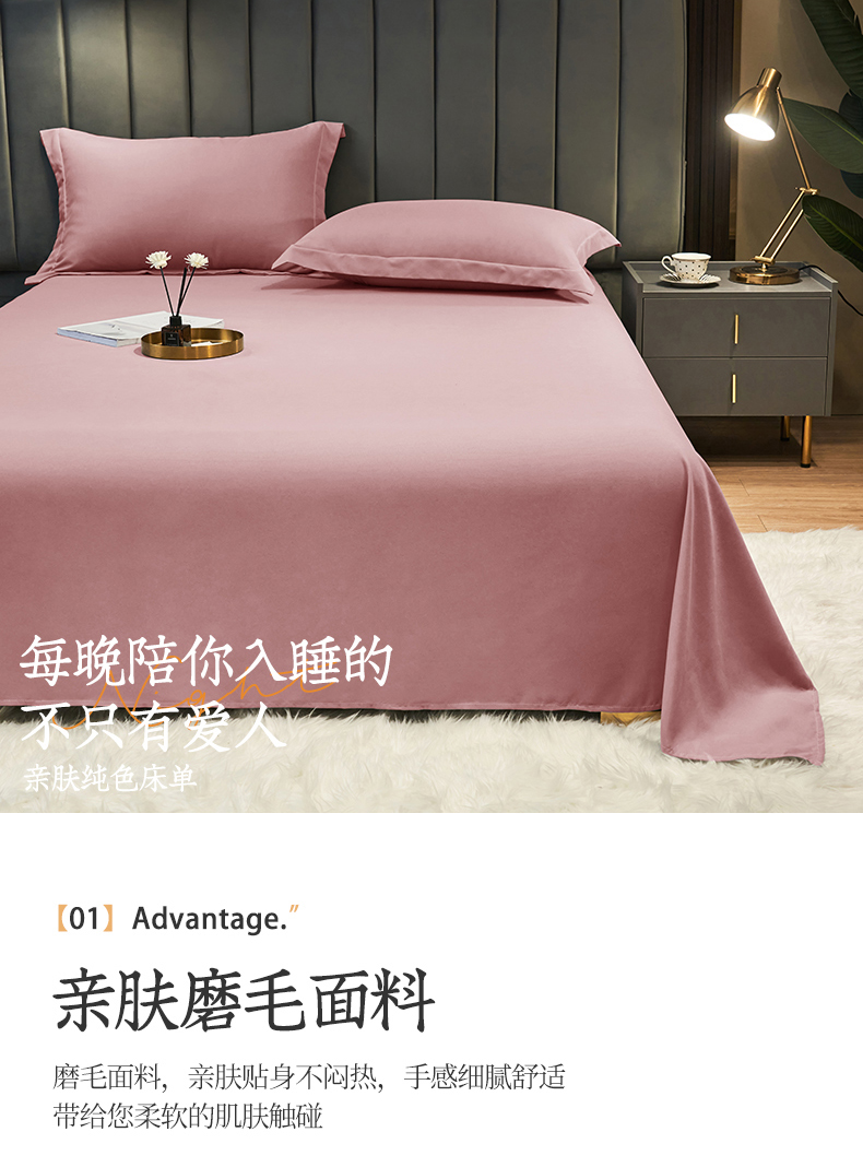 商品名称:恬澳家纺 2024新款跑量亲肤磨毛床单 粉豆沙