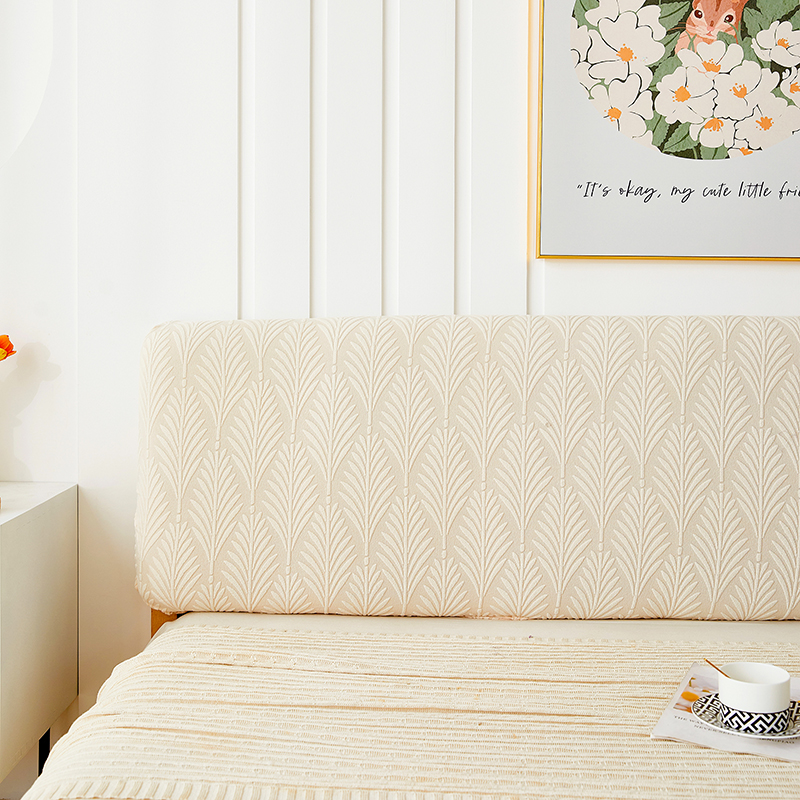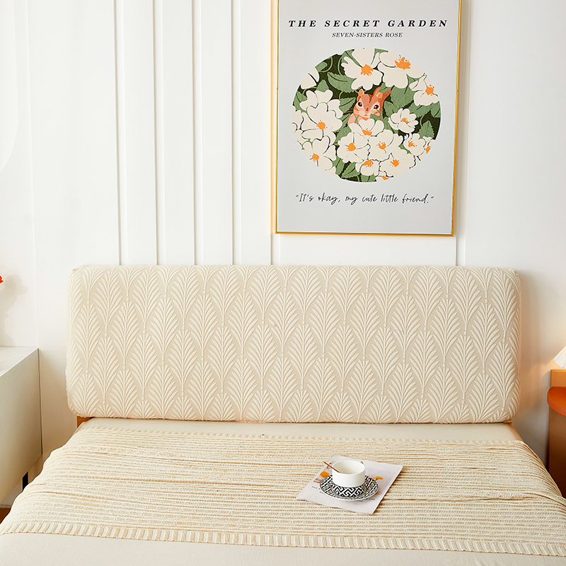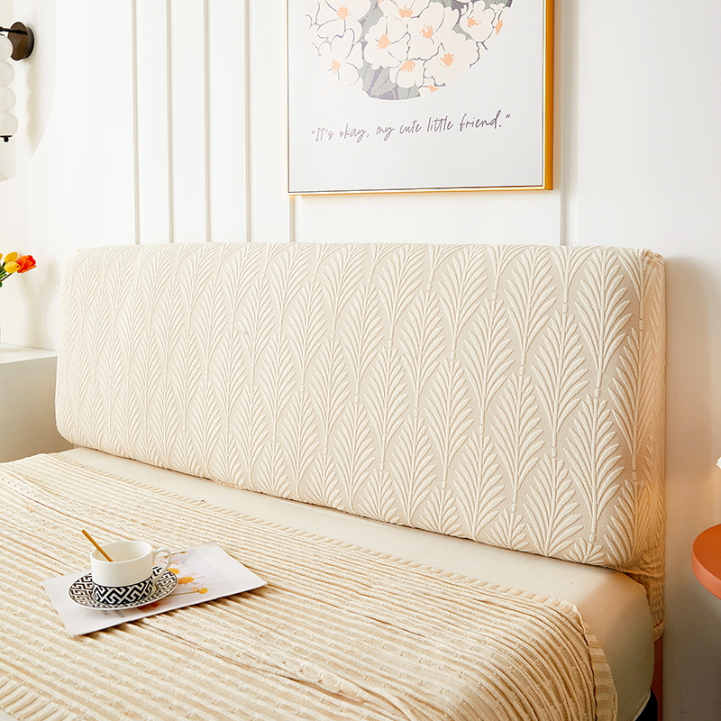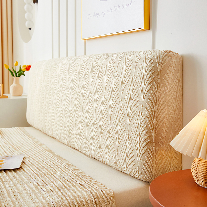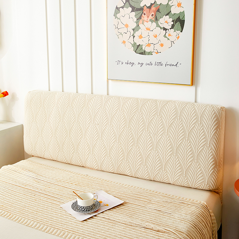 商品名称:逐日沙发套 2023新款纯色提花床头罩叶恋系列 叶恋-米黄色