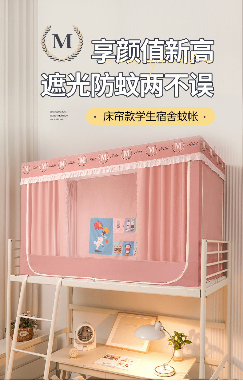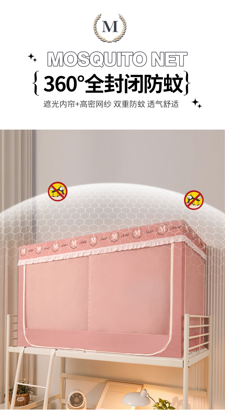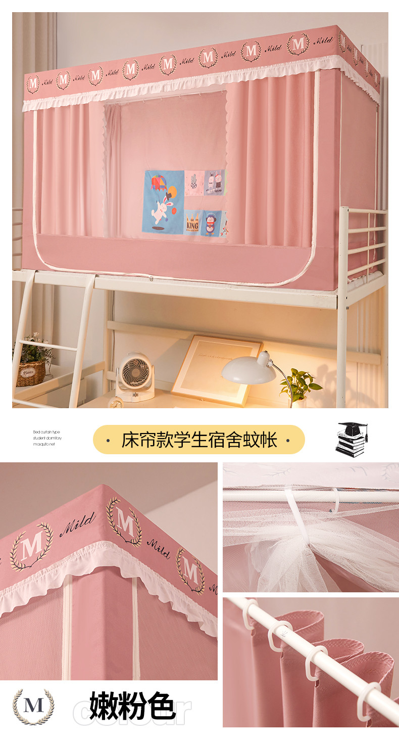 商品名称:初心 2025新款床帘款学生宿舍蚊帐 嫩粉色
