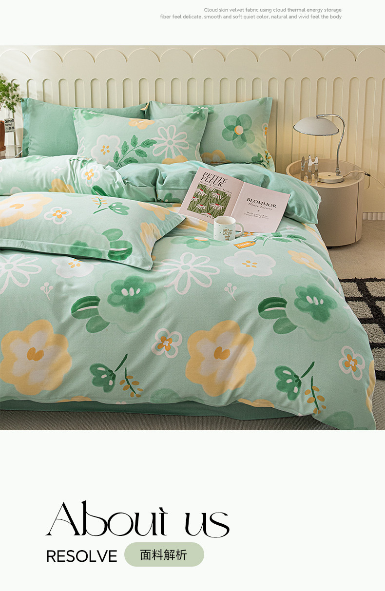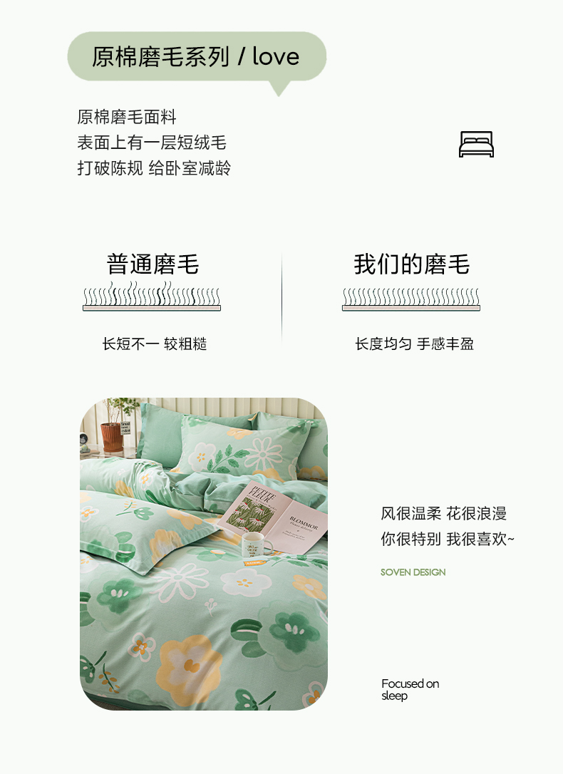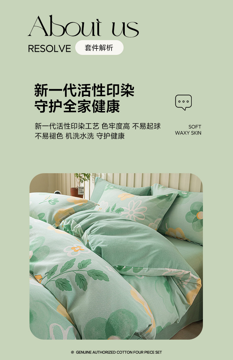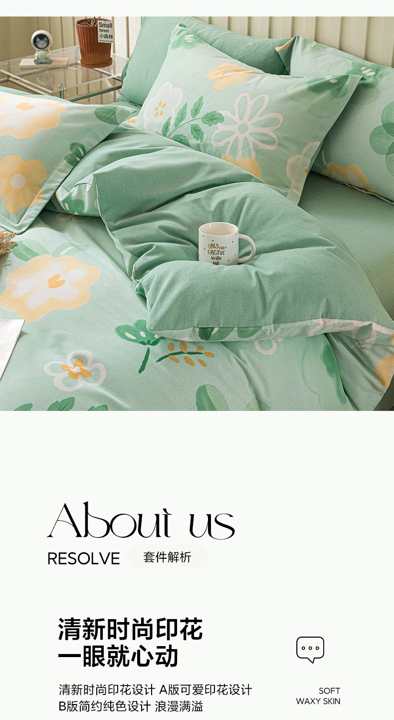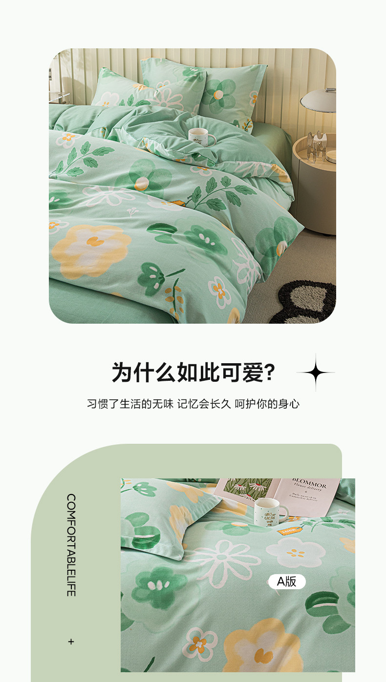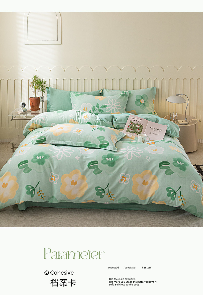 卡巴伦家纺 2023新款磨毛小清新印花系列四件套 绿茵