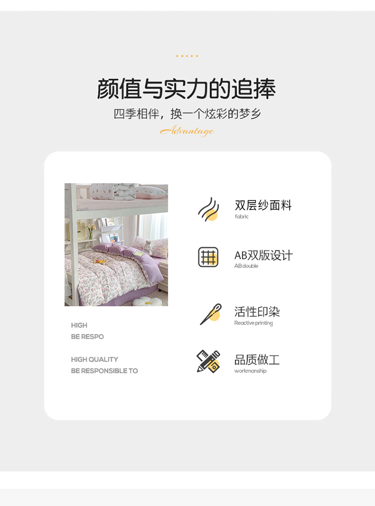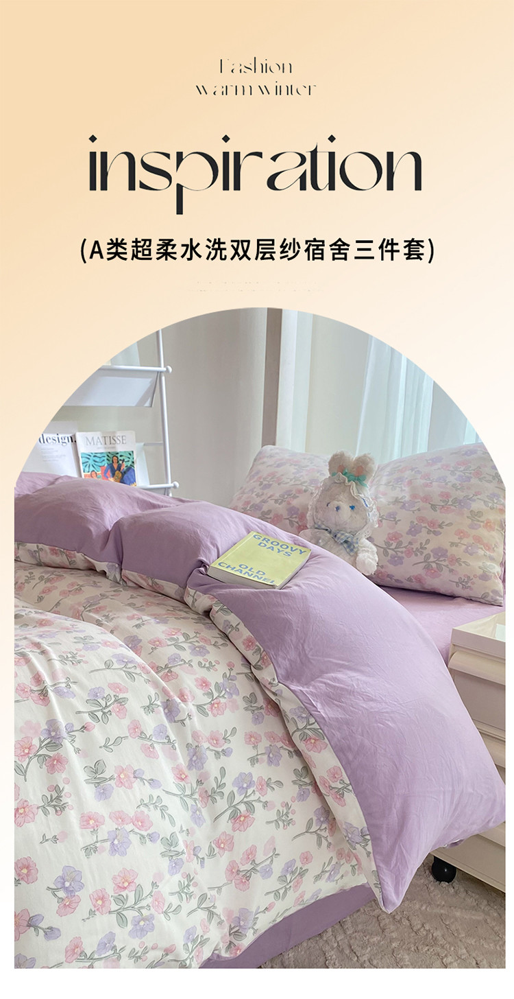 商品名称:妖妖家纺 2023新款超柔水洗双层纱三件套宿舍床 尽相思