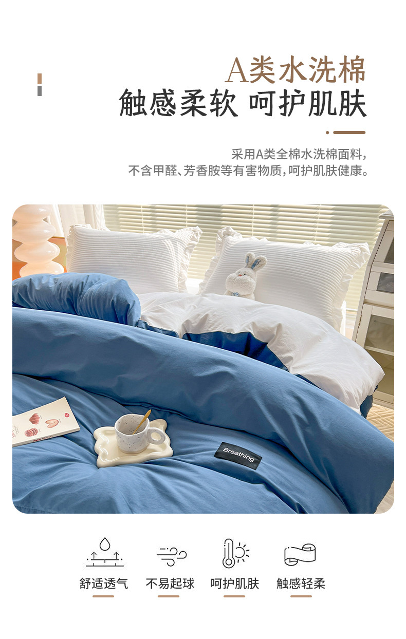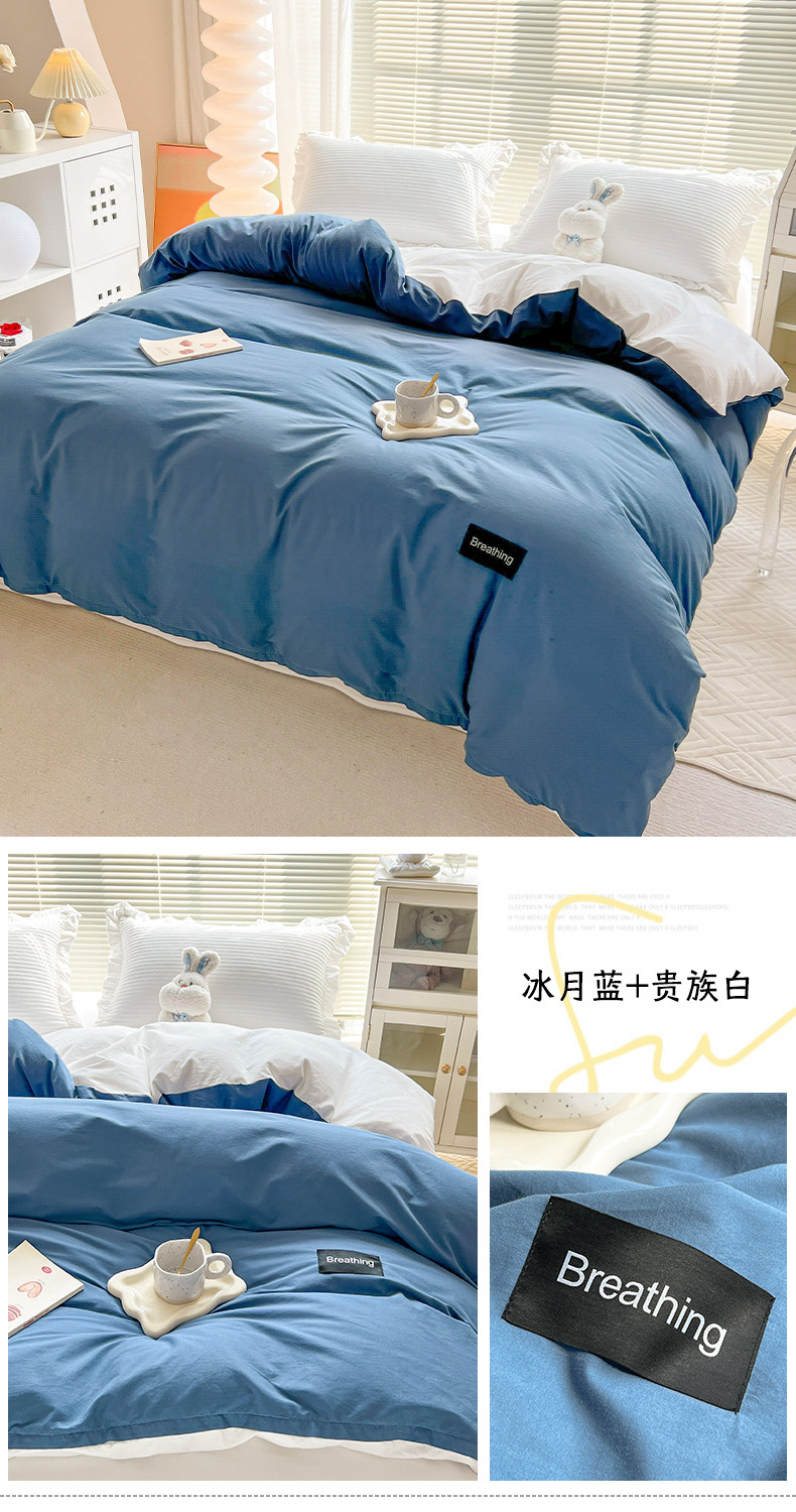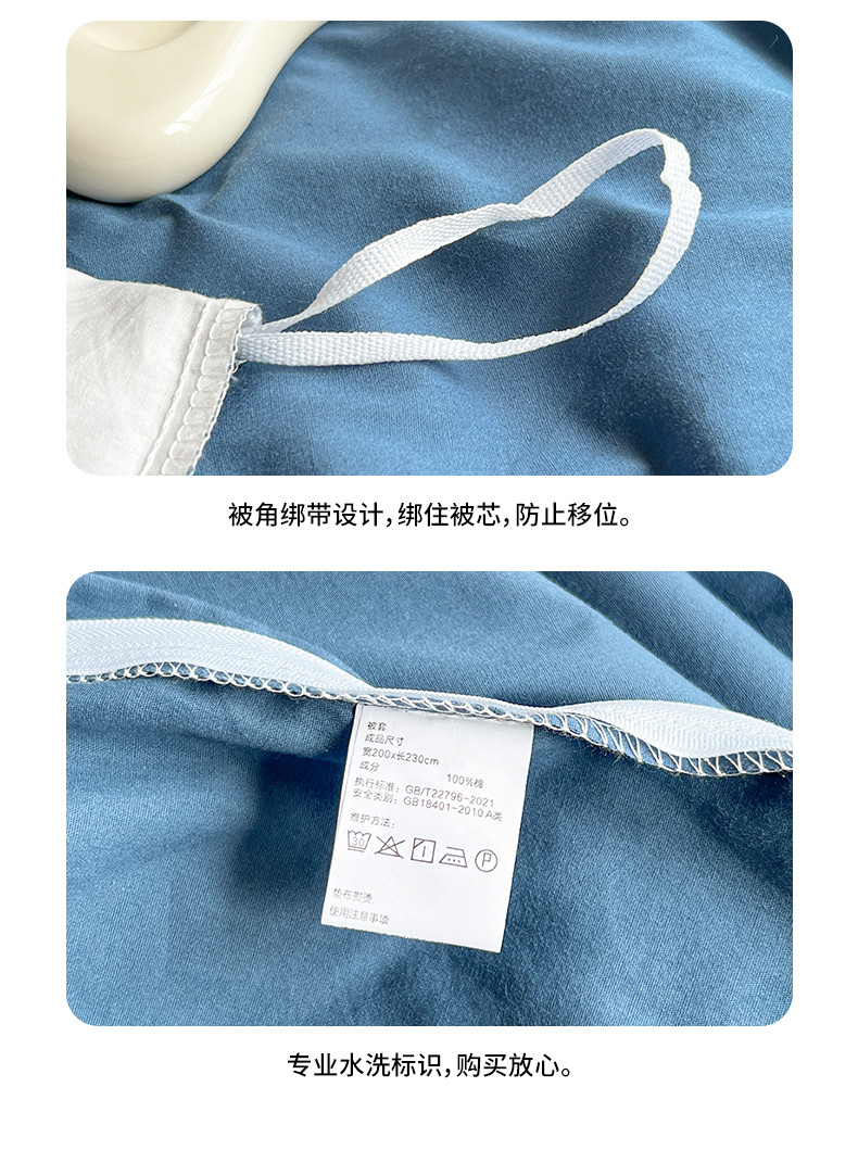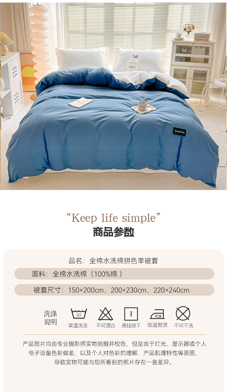 商品名称:绵庭家纺 2023新款全棉水洗棉拼色单被套 冰月蓝+贵族白