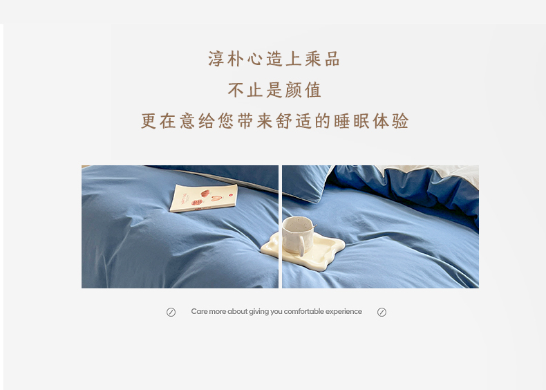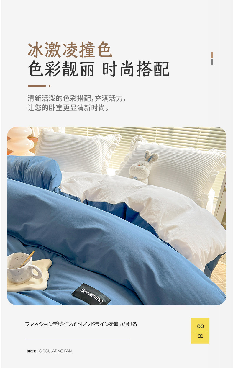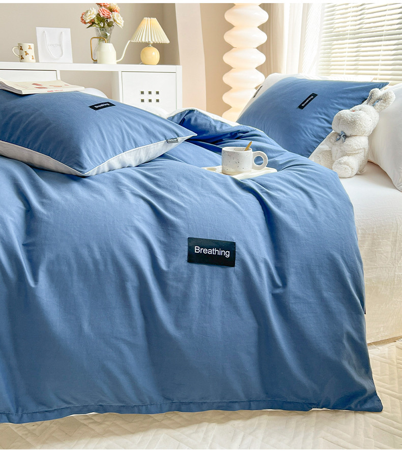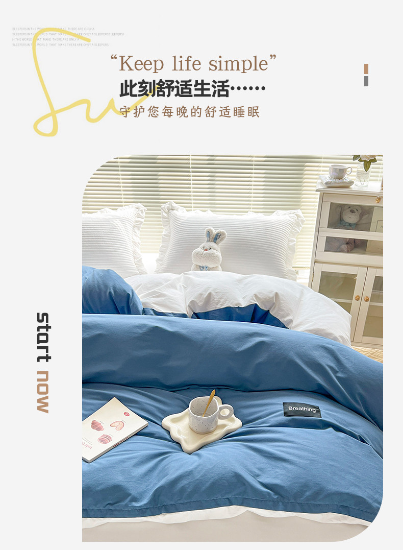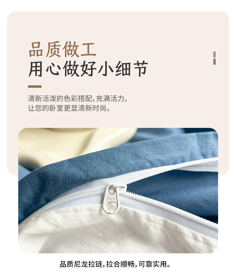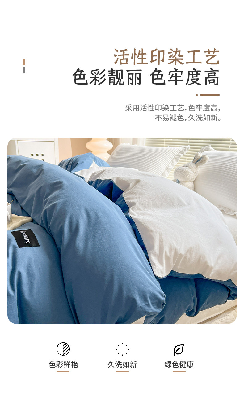 商品名称:绵庭家纺 2023新款全棉水洗棉拼色单被套 冰月蓝+贵族白