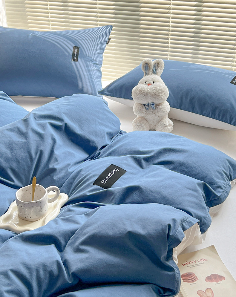 绵庭家纺 2023新款全棉水洗棉拼色单被套 冰月蓝+贵族白