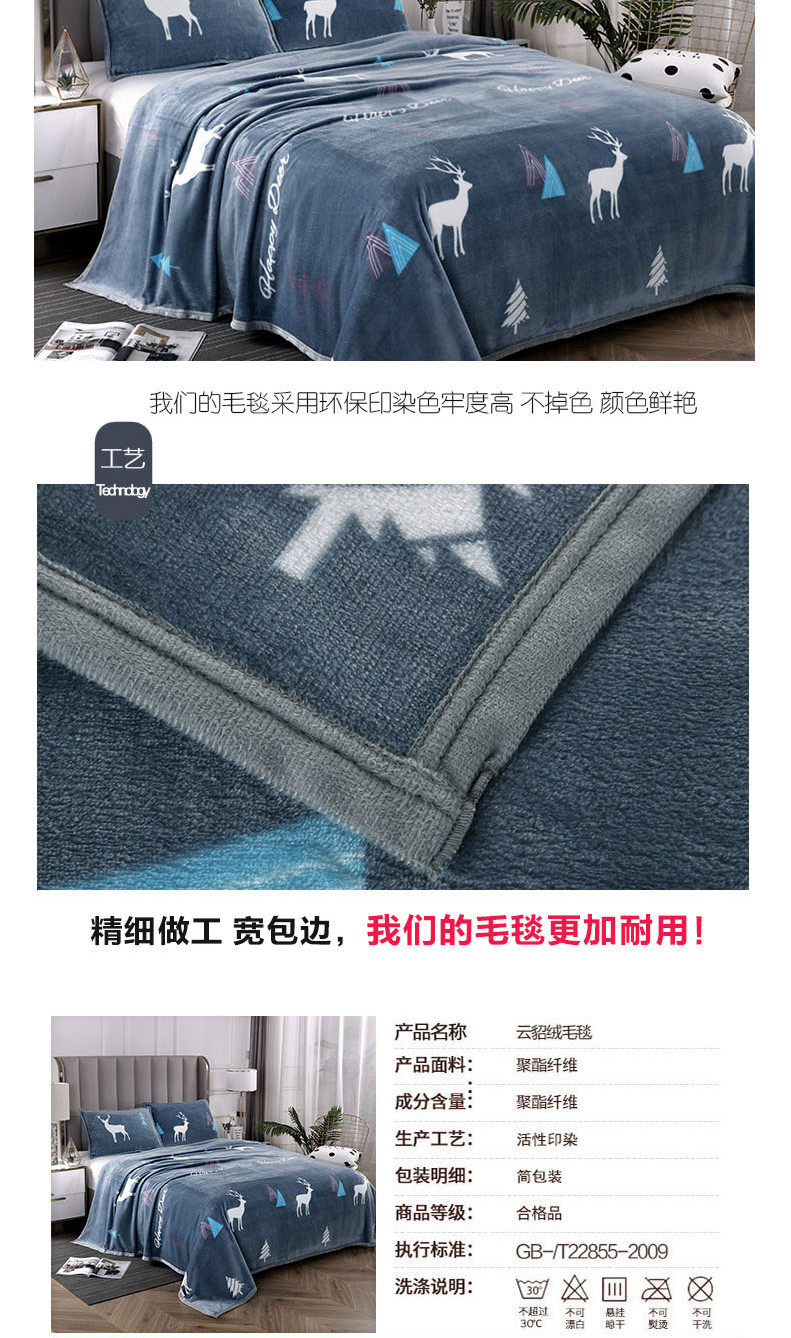 当前位置: 91家纺网 > 商品网购 > 毛毯休闲毯绒毯 > 法莱绒毯 > 赋雅 新款300克双面绒毯子超柔加厚云貂绒法莱绒 福鹿