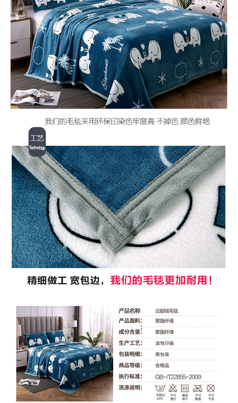 当前位置: 91家纺网 > 商品网购 > 毛毯休闲毯绒毯 > 法莱绒毯 > 赋雅 新款300克双面绒毯子超柔加厚云貂绒法莱绒 快乐小象
