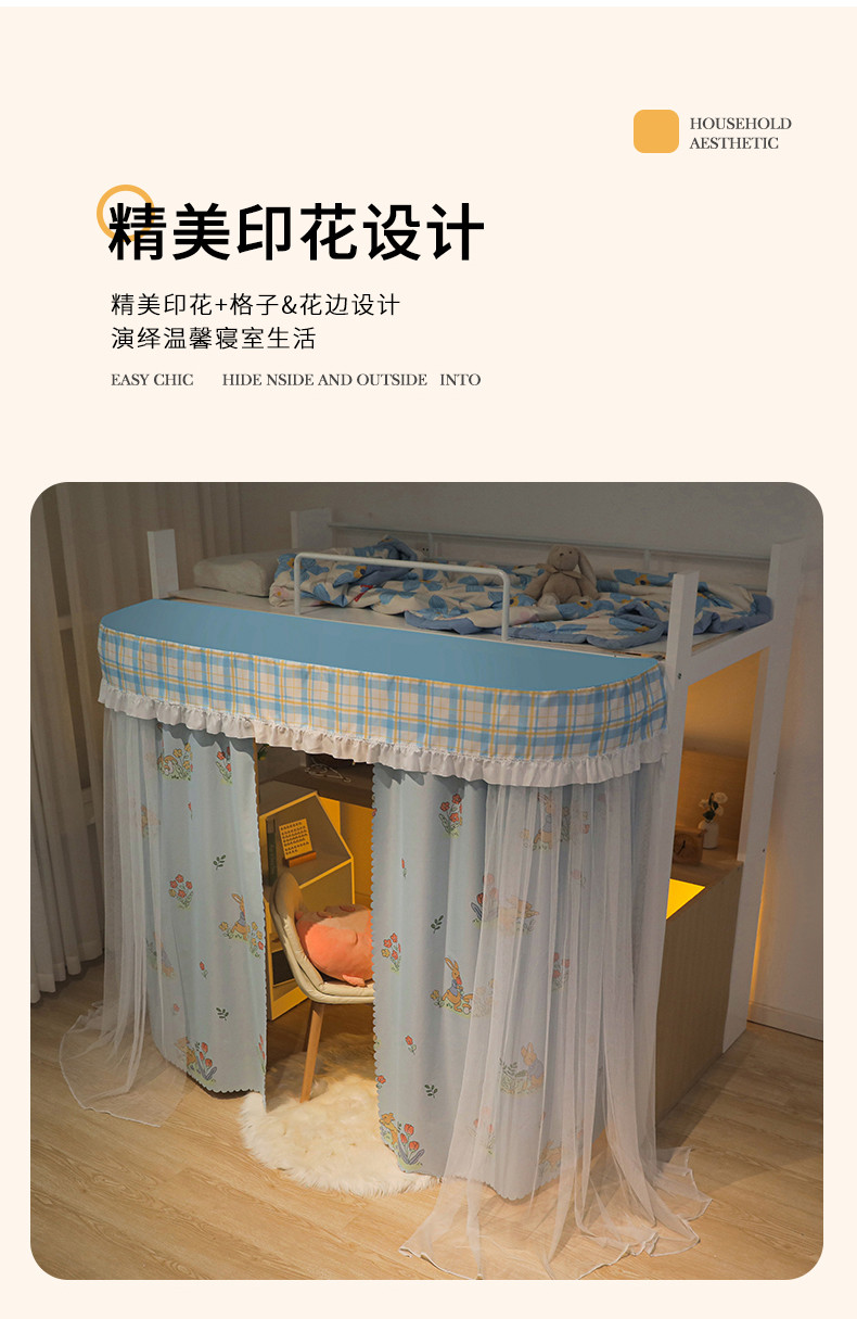 商品名称:(总)安金 2024新款涂层99%强遮光学生蚊帐床帘一体格子花边印花