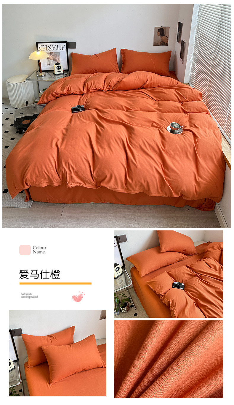 蓝淋家纺 2023新款双拼水洗棉高级感亲肤四件套/三件套 爱马仕橙
