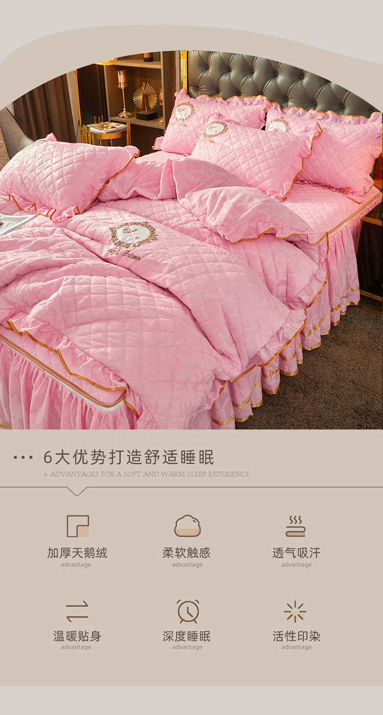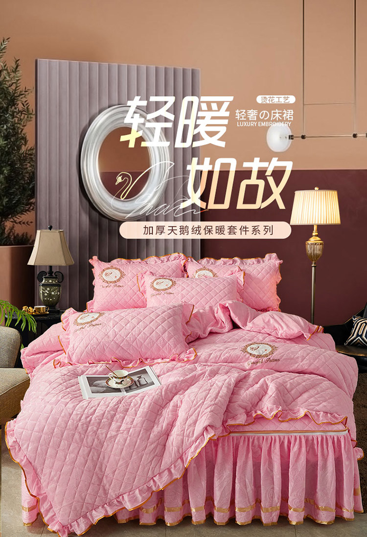 当前位置: 91家纺网 > 商品网购 > 床品套件 > 四件套 > 磨绒四件套 > 大豆蛋白棉天鹅绒夹棉床笠加床裙拉链可脱卸床裙 居里夫人-少女粉