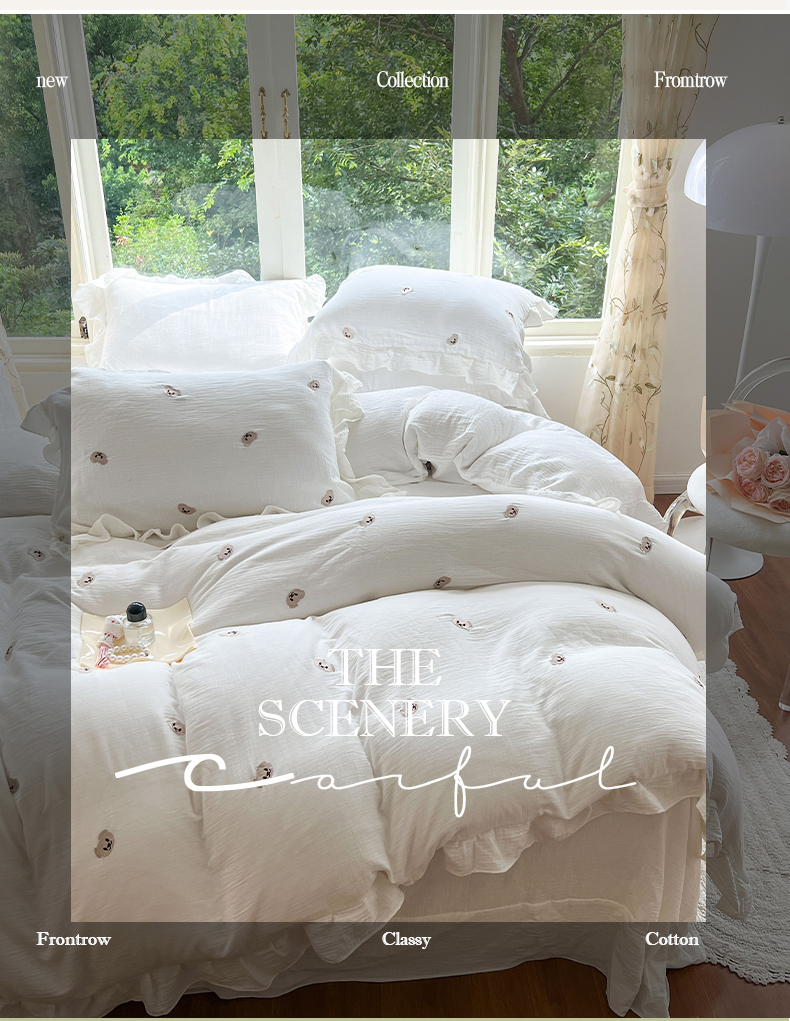 木楌家居 2024秋冬全棉皱皱纱荷叶边刺绣工艺款四件套 米诺
