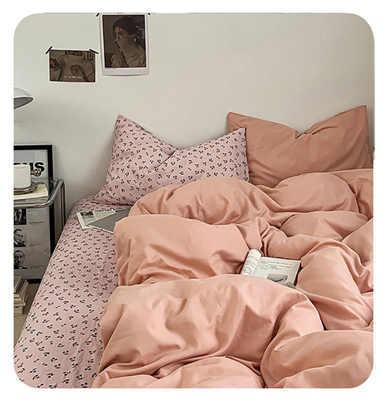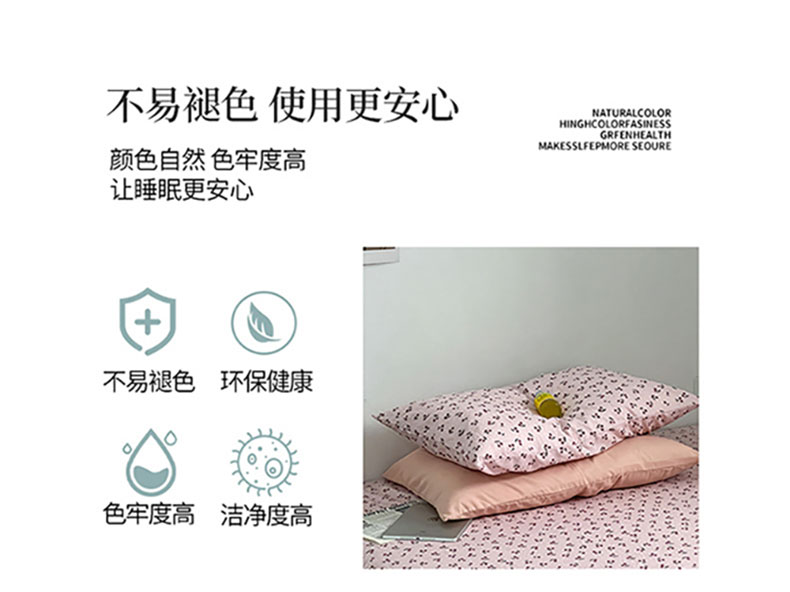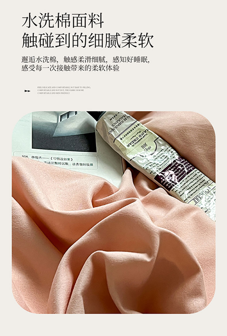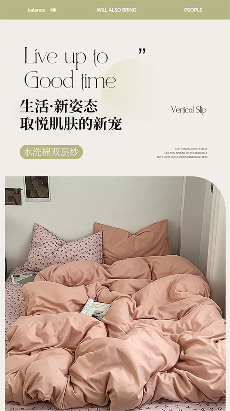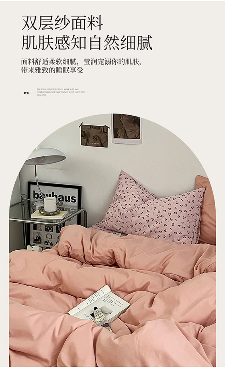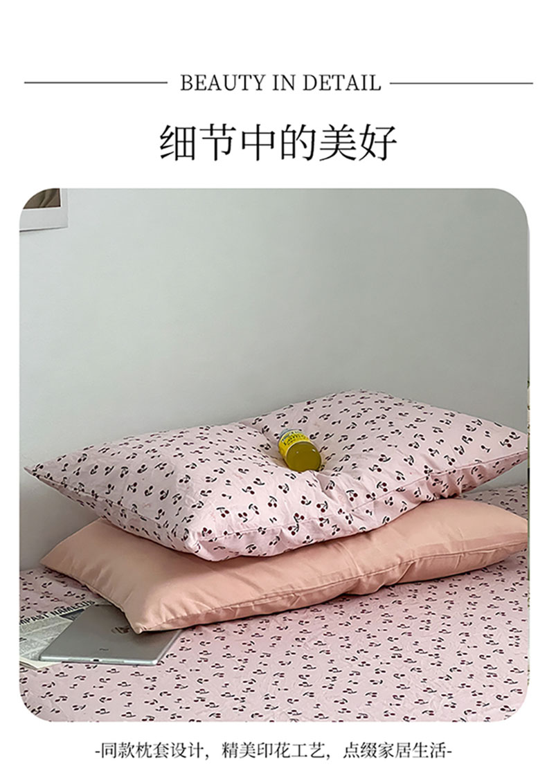 商品名称:梦嘉居 2023新款水洗棉双层纱亲肤舒适单床笠 粉玉+小樱桃