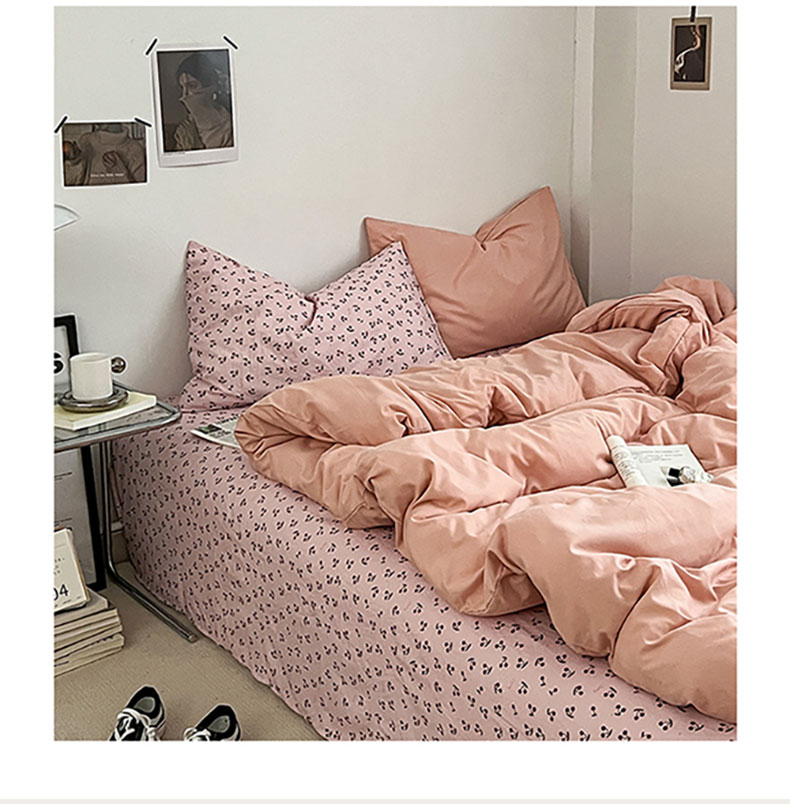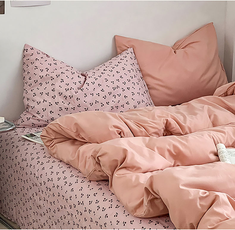 梦嘉居 2023新款水洗棉双层纱亲肤舒适单床笠 粉玉+小樱桃