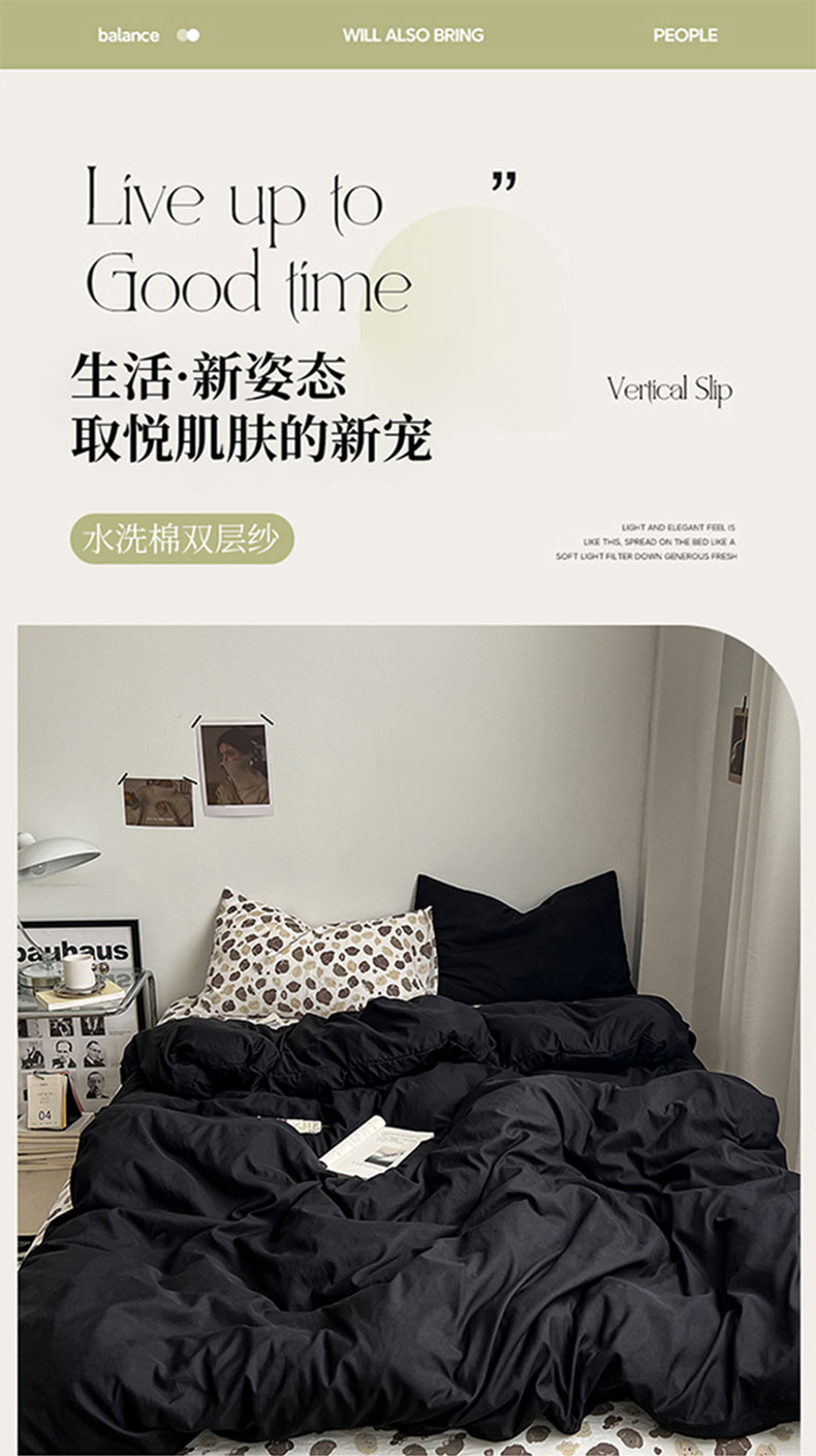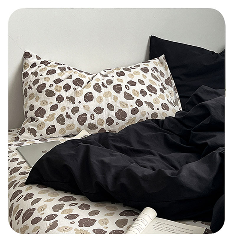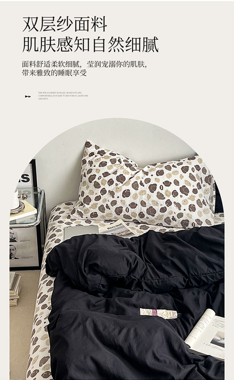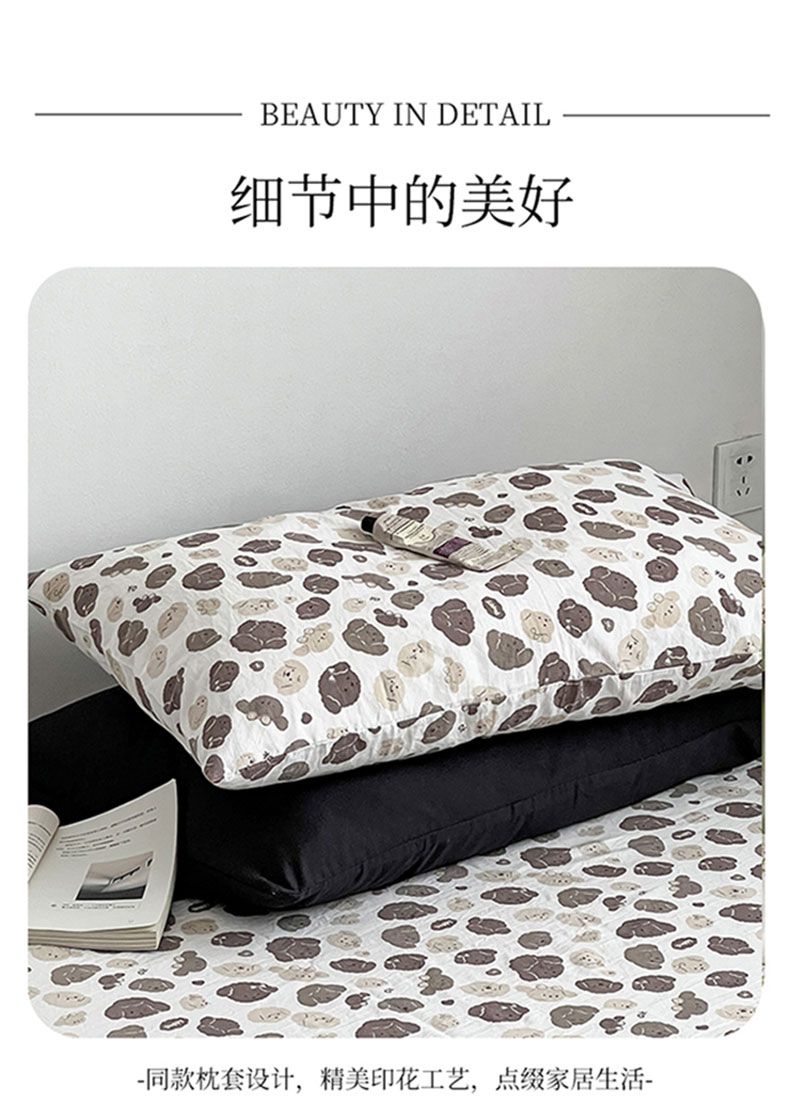 商品名称:梦嘉居 2023新款水洗棉双层纱亲肤舒适单床笠 闪耀黑+欢乐狗