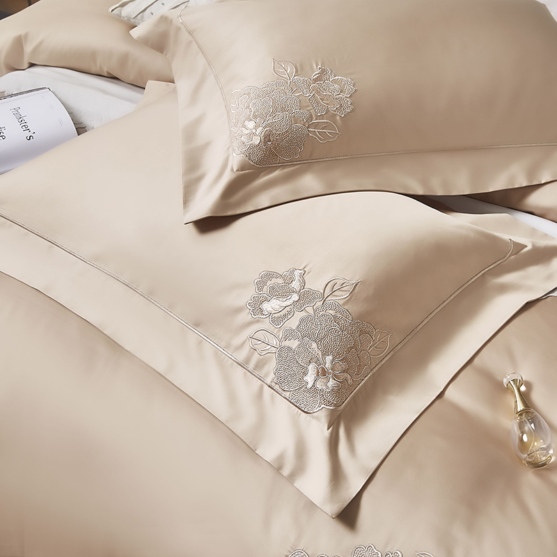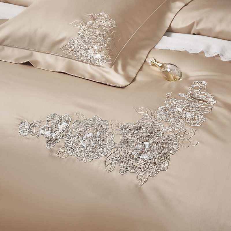 商品名称:爱情故事 2025新款100支新疆长绒棉刺绣四件套 花魅-香槟
