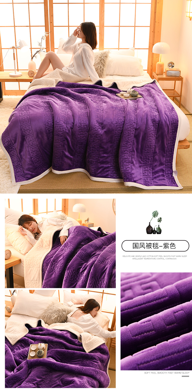 商品名称:2023新款【加厚款】国风被毯 紫色