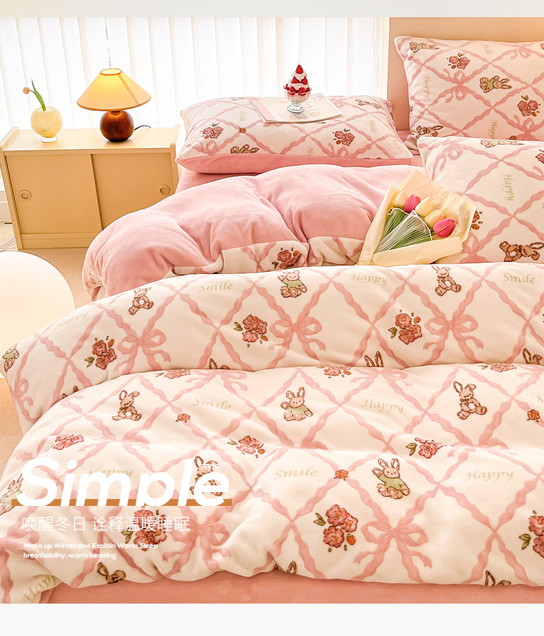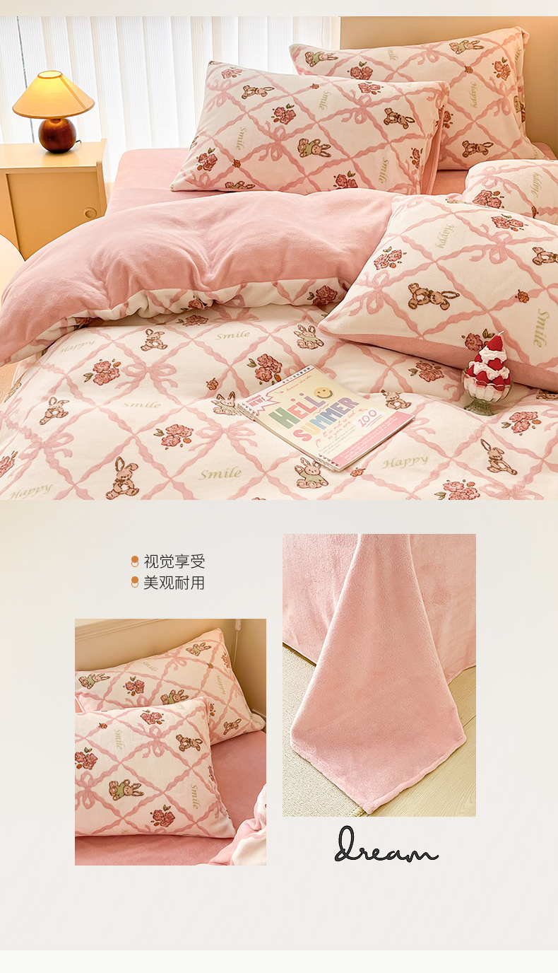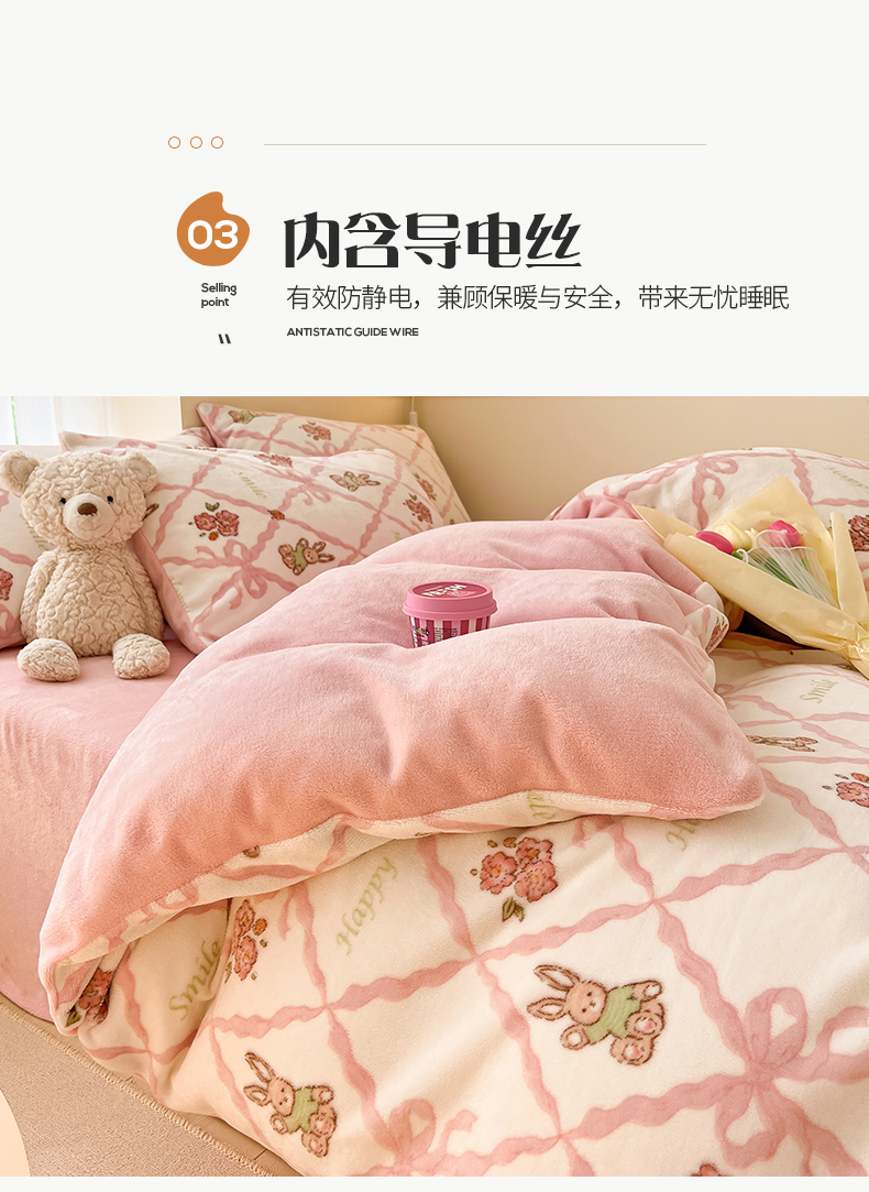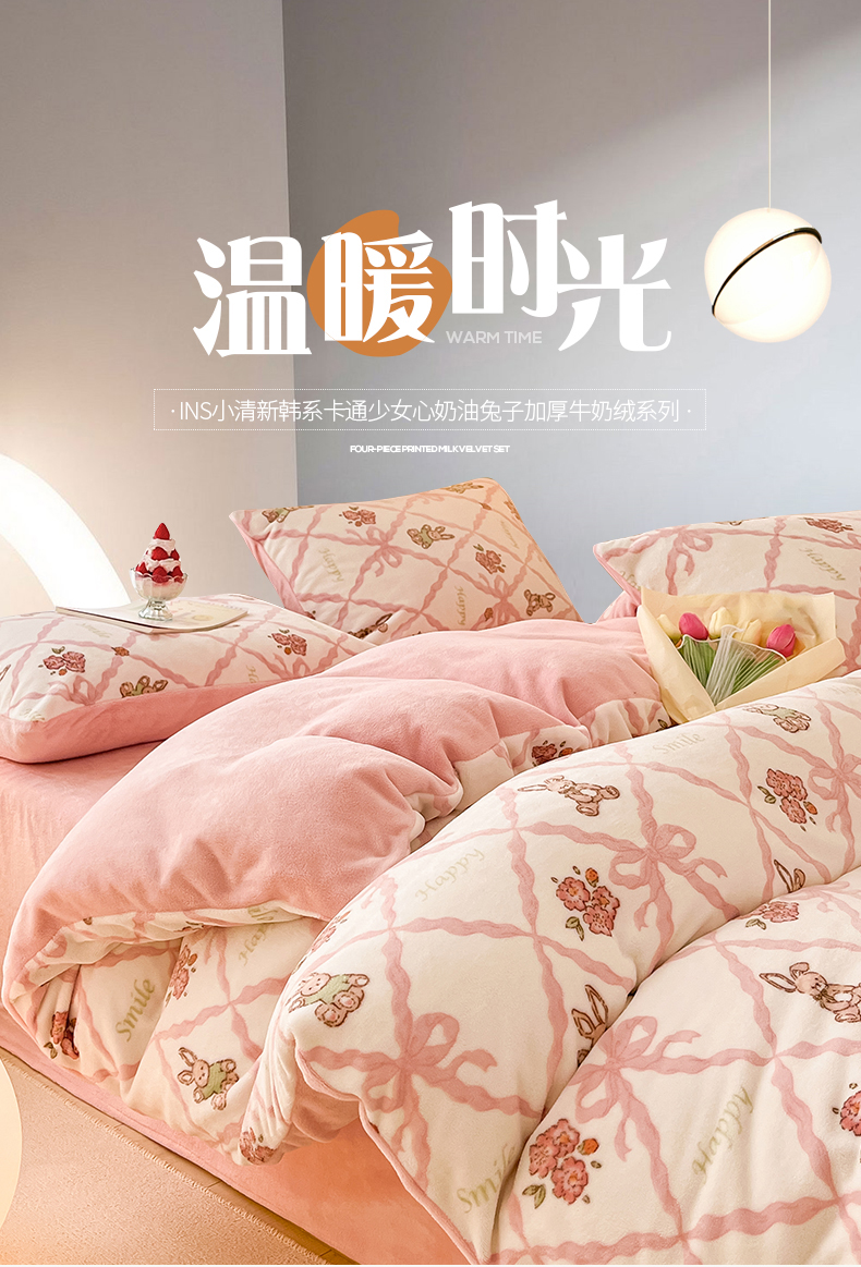 桃子 2023新款ins小清新韩系卡通少女心奶油兔子加厚牛奶绒系列四件套-第一批 绒-菲丽