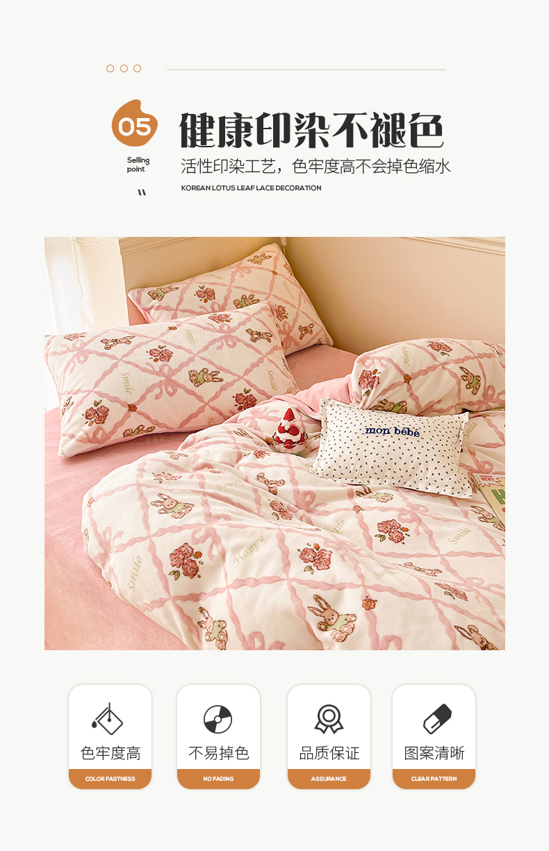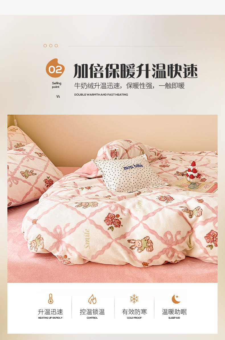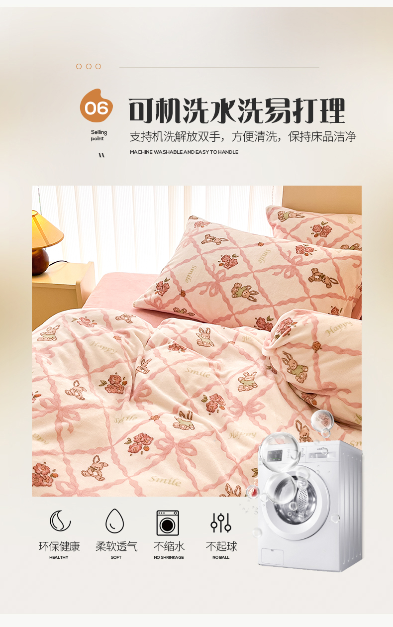 桃子 2023新款ins小清新韩系卡通少女心奶油兔子加厚牛奶绒系列四件套-第一批 绒-菲丽