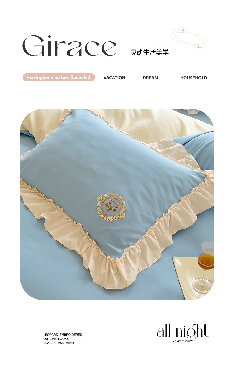 当前位置: 91家纺网 > 商品网购 > 床品套件 > 四件套 > 普通磨毛四件套 > yyds网供 2023新款韩版皇冠花边款公主风夹棉床裙款四件套-风格一【有买家秀】 皇冠-海盐兰