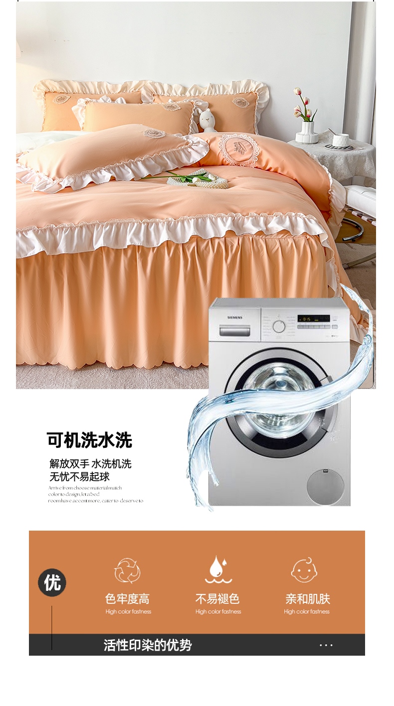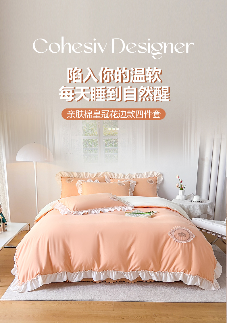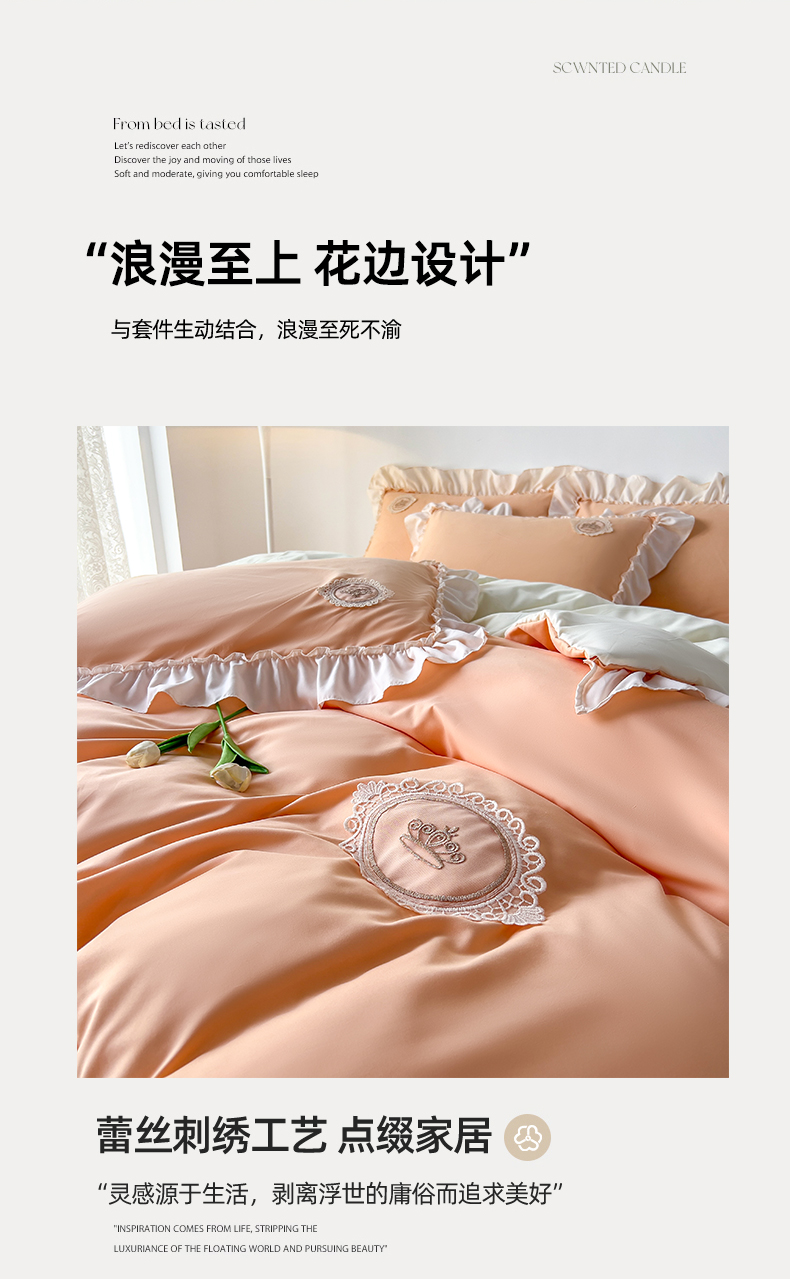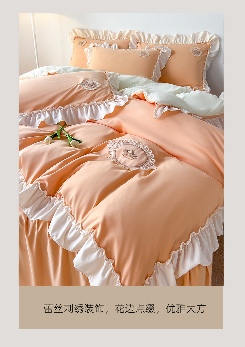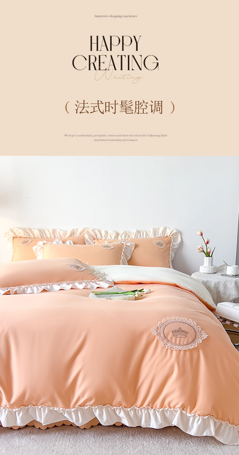 当前位置: 91家纺网 > 商品网购 > 床品套件 > 四件套 > 普通磨毛四件套 > yyds网供 2023新款法式皇冠花边款公主风夹棉床裙款四件套-风格二【有买家秀】 杏柿橙
