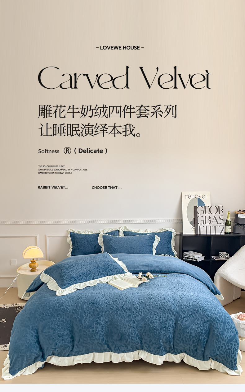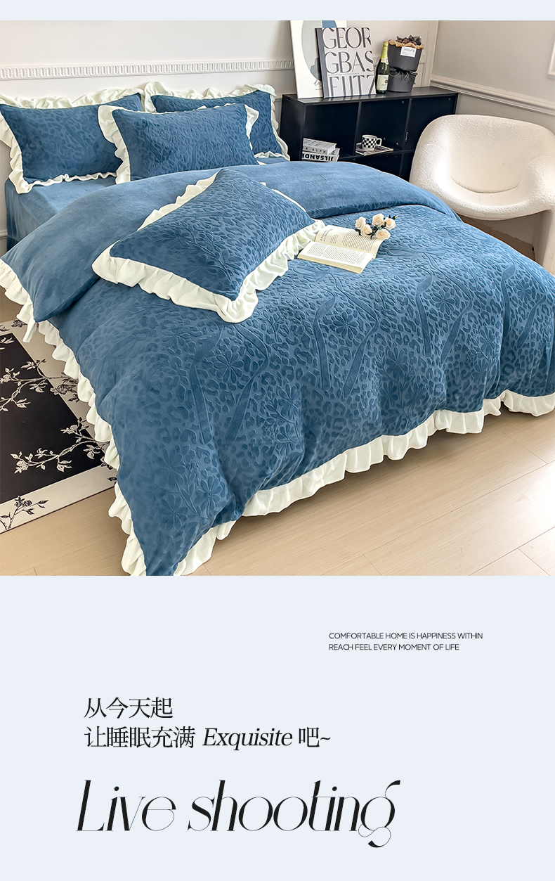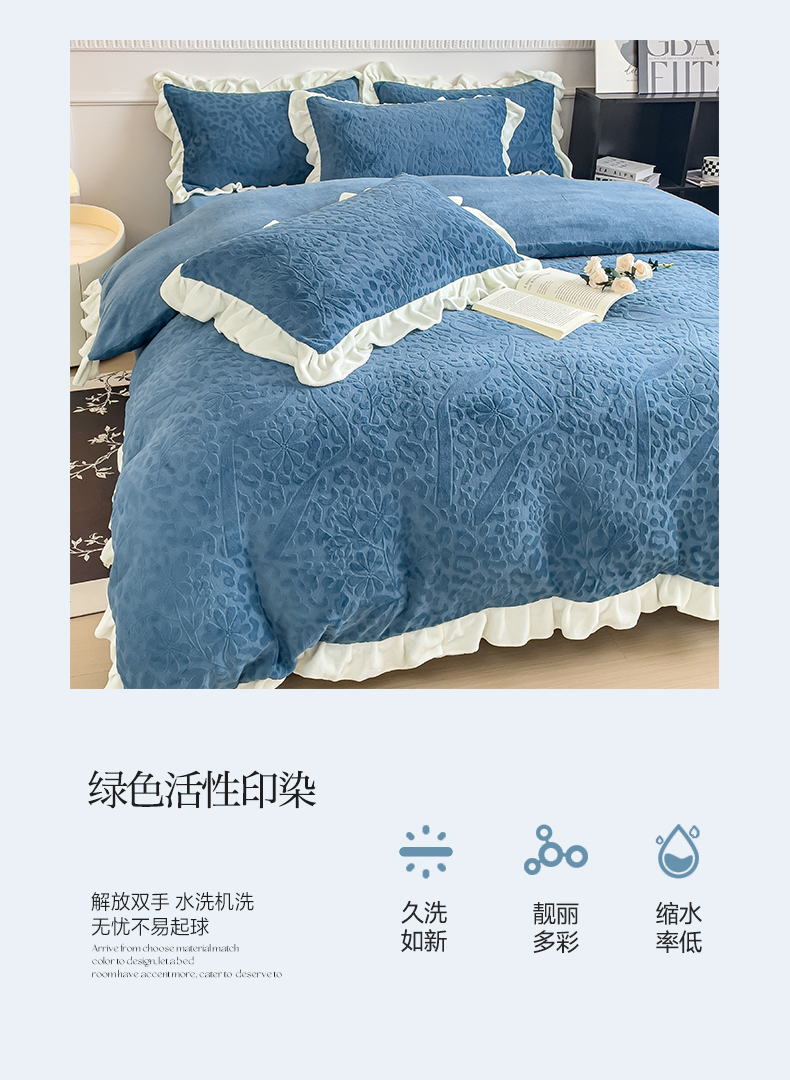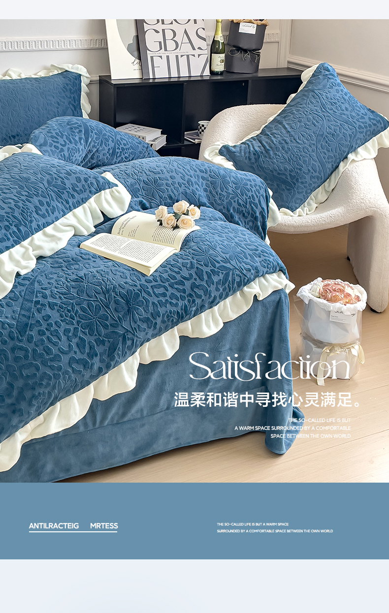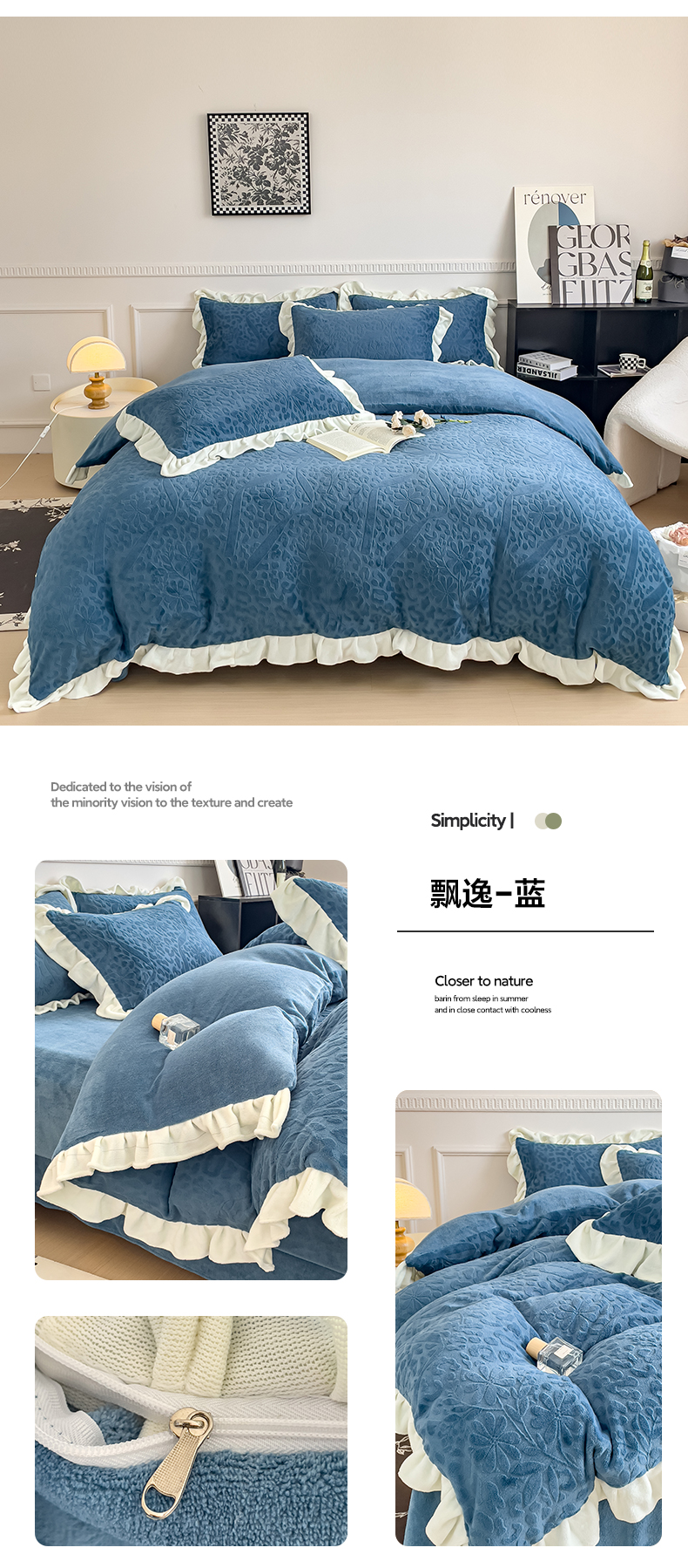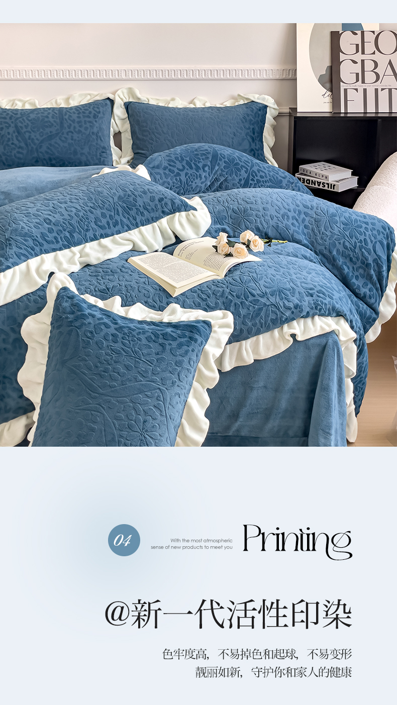 铠畅家纺 2023新款花边雕花牛奶绒四件套-飘逸系列 飘逸-蓝