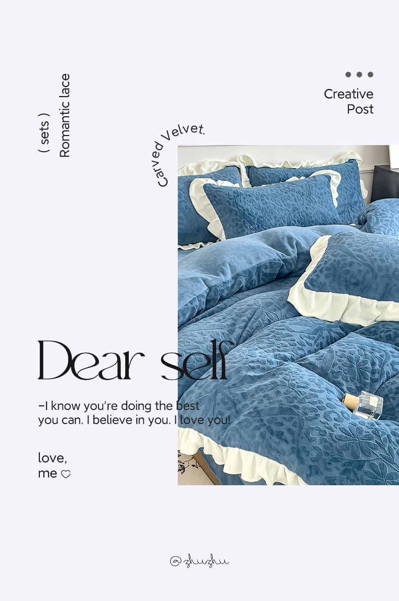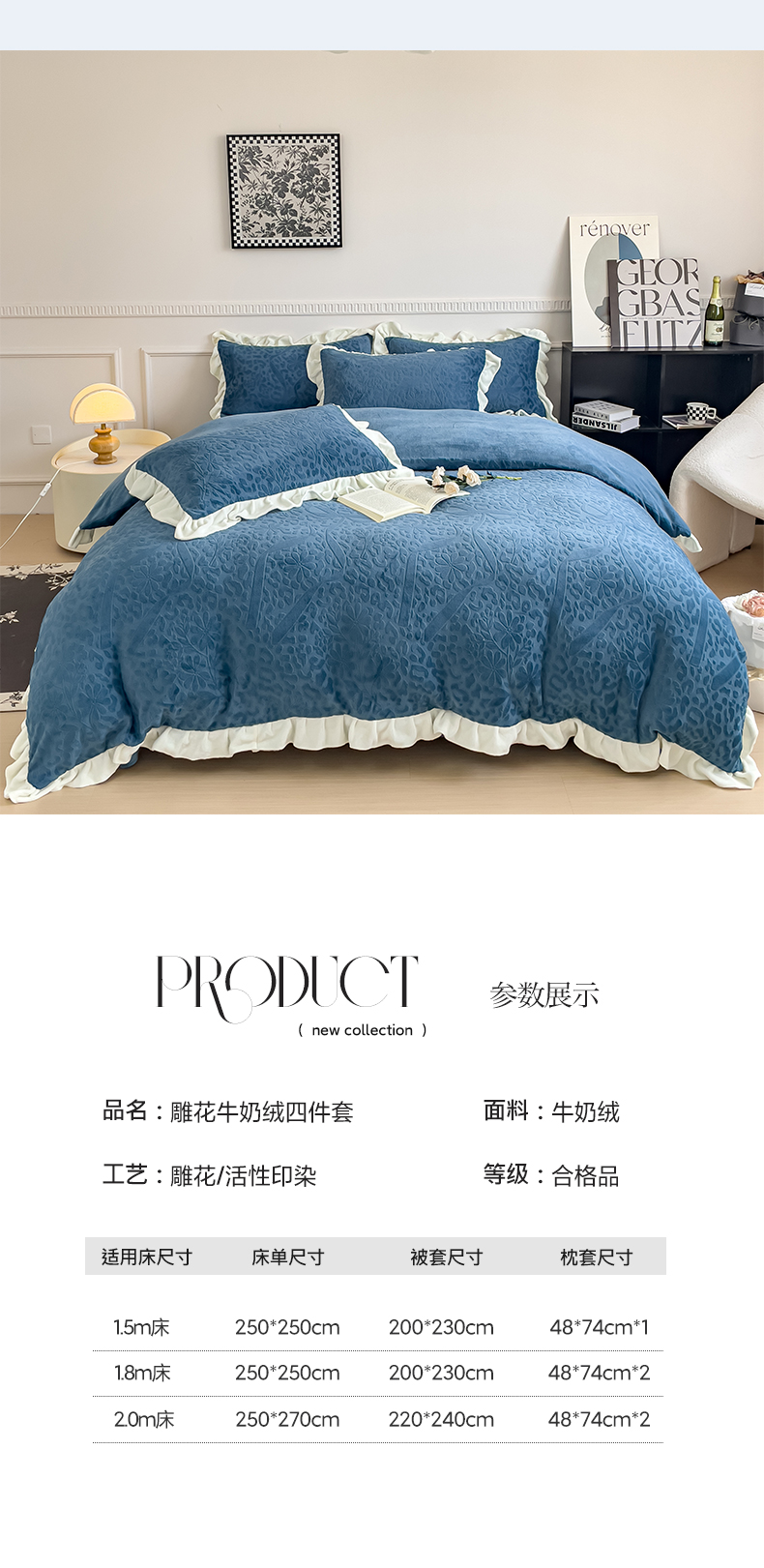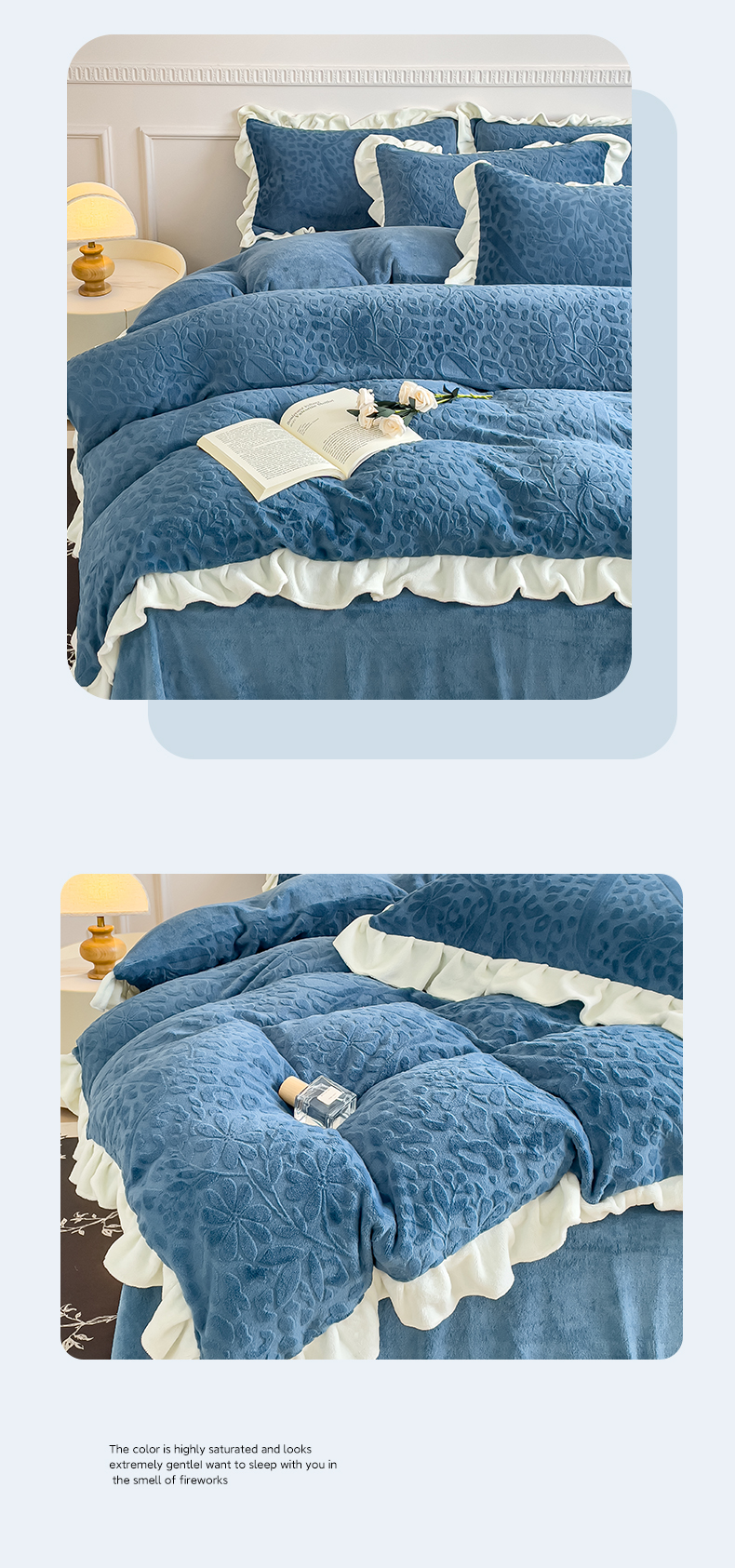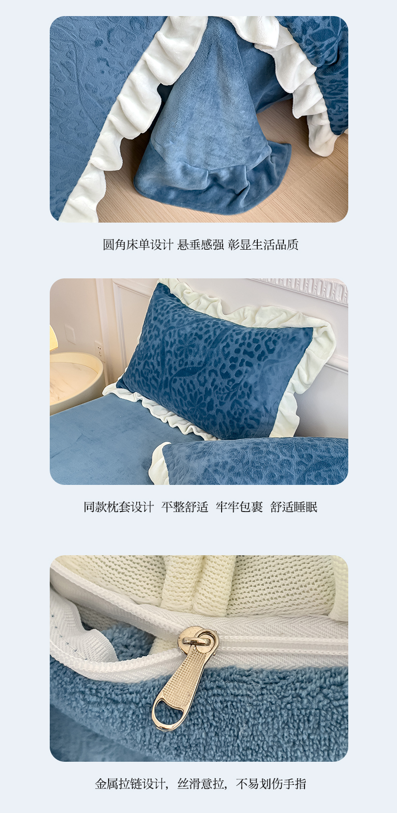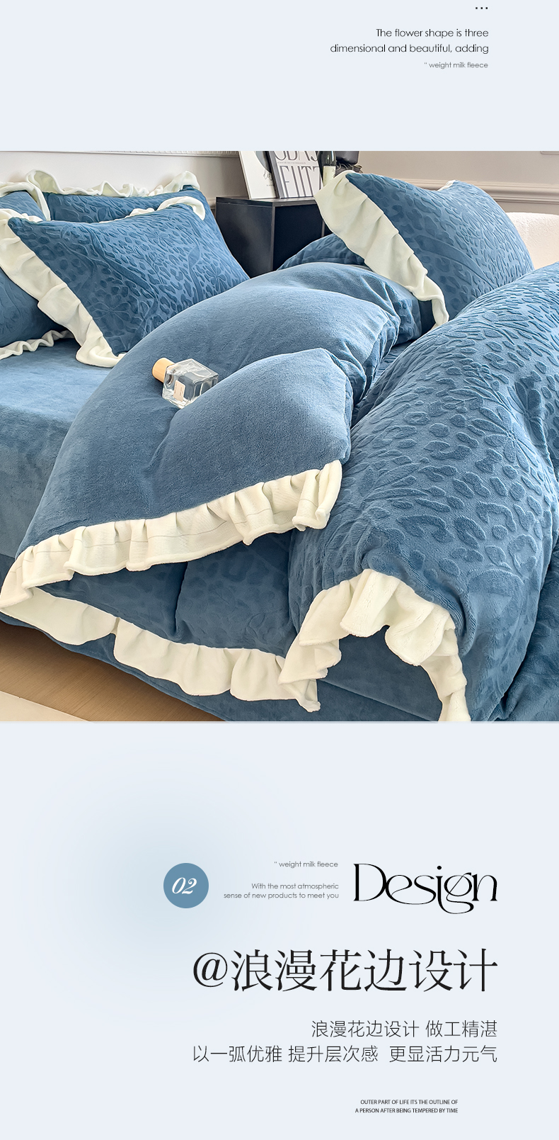 铠畅家纺 2023新款花边雕花牛奶绒四件套-飘逸系列 飘逸-蓝