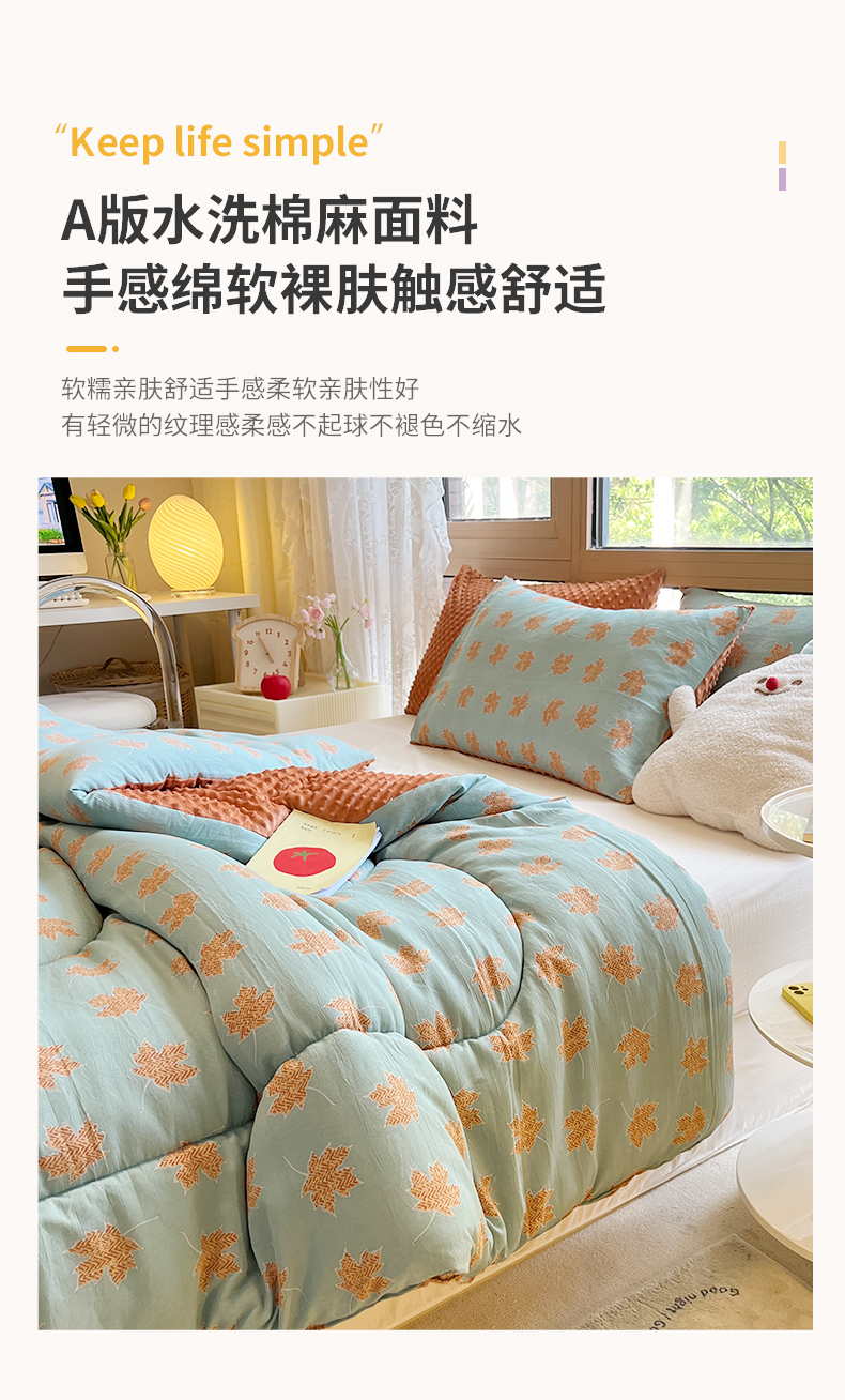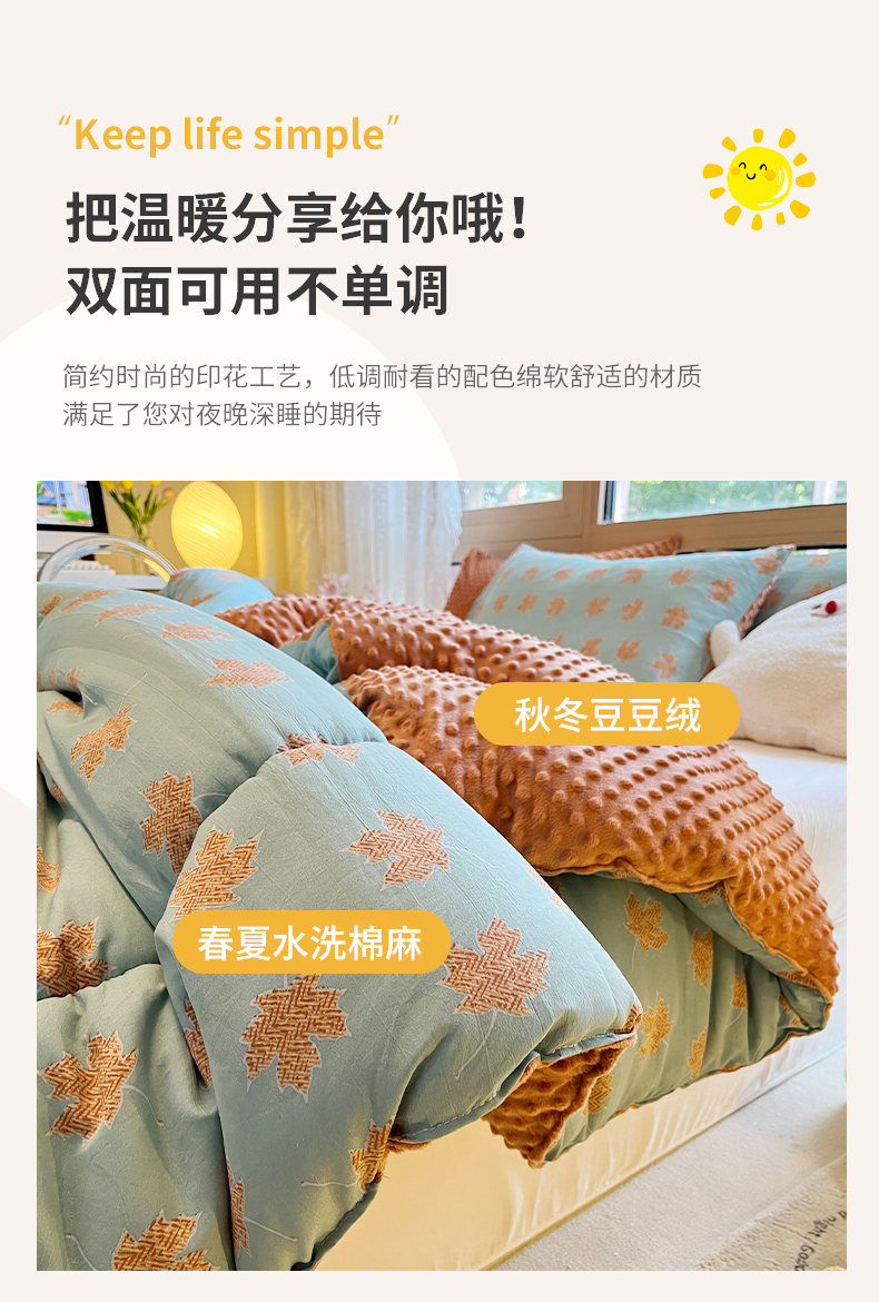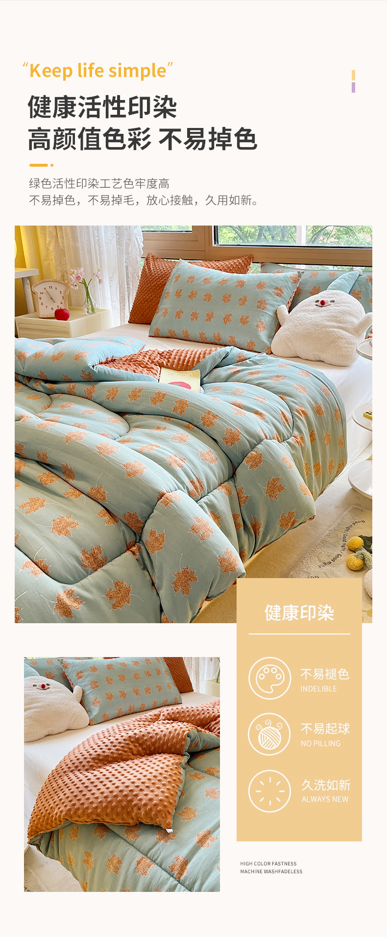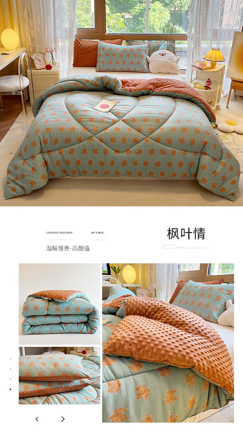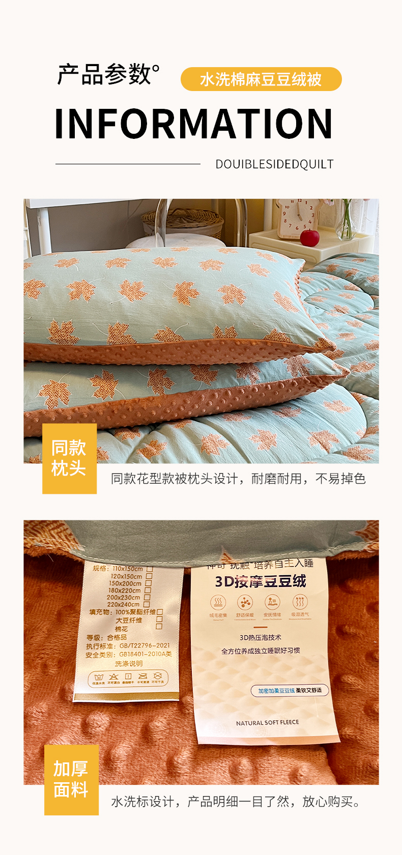 • 91家纺网 家纺一手货源 找家纺 雅蔓依 2025新款水洗棉麻3D豆豆绒冬被 枫叶情