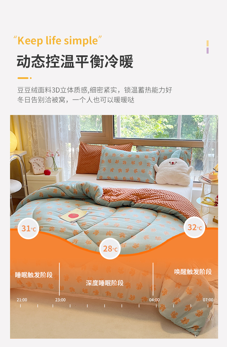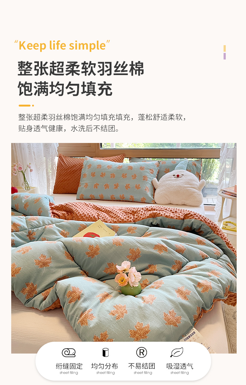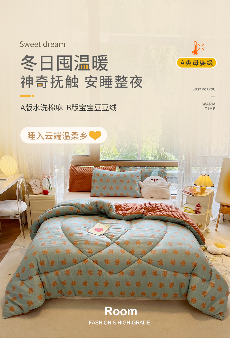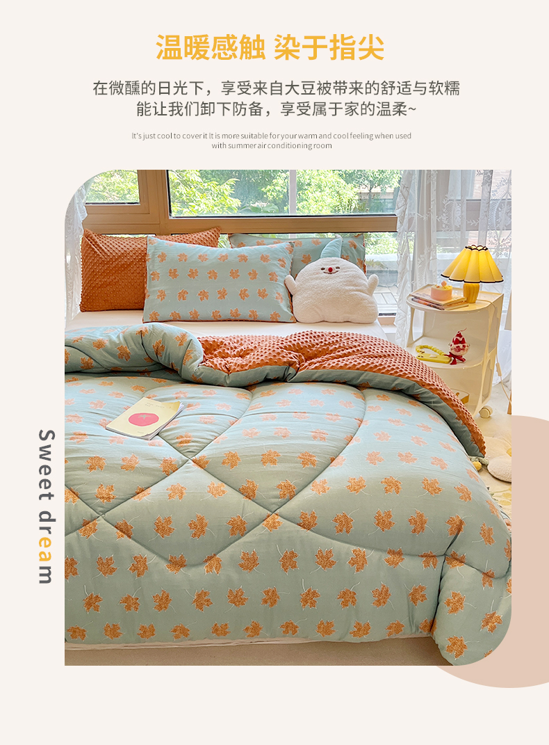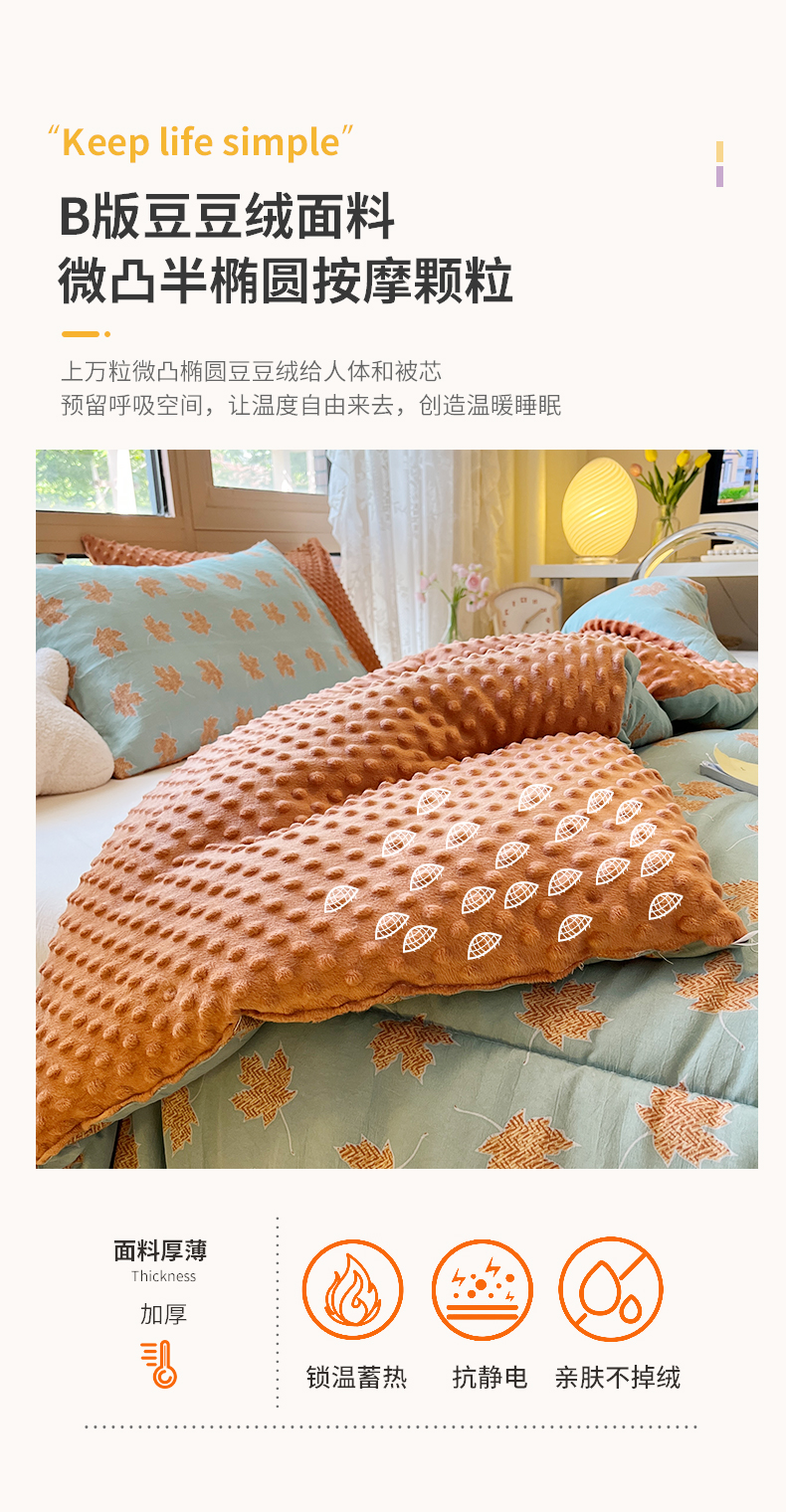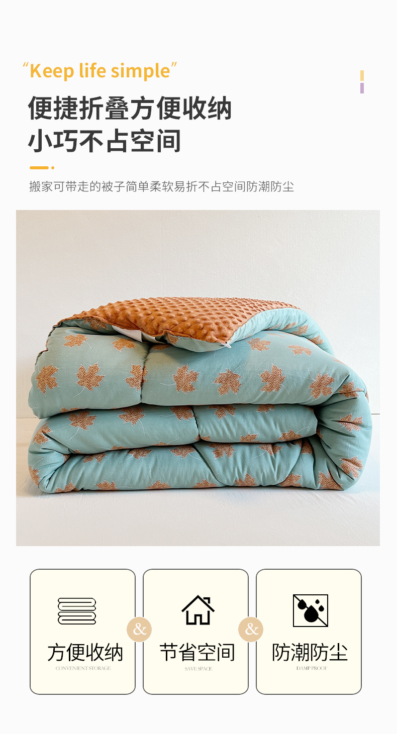 • 91家纺网 家纺一手货源 找家纺 雅蔓依 2025新款水洗棉麻3D豆豆绒冬被 枫叶情
