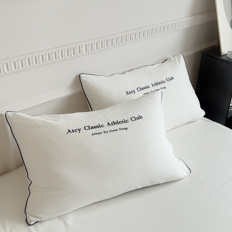 商品名称:尤米 2023新款莫奈系列水洗棉绣花麻绳款枕套 莫奈-月光白