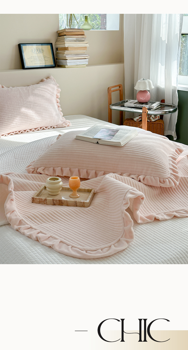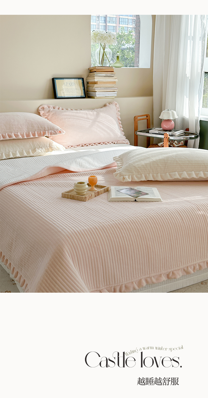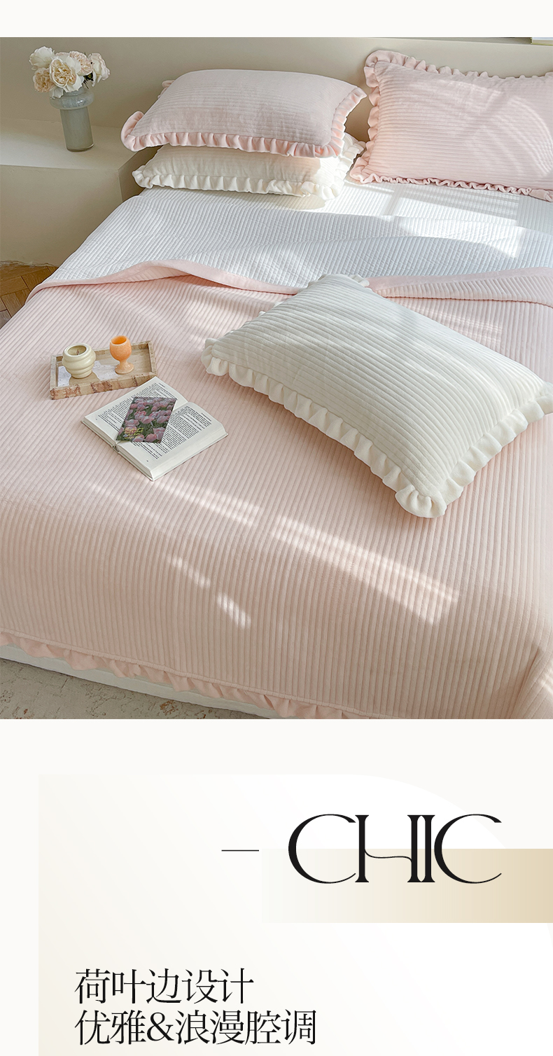 (总)琳可家居 2023新款纯色花边款高克重消光牛奶绒床盖三件套