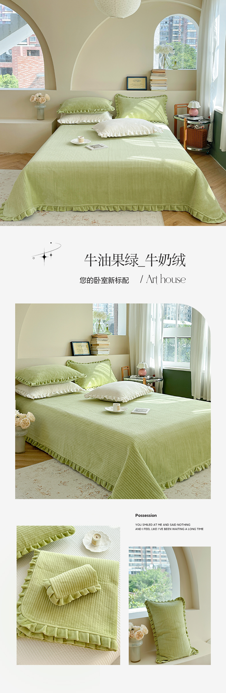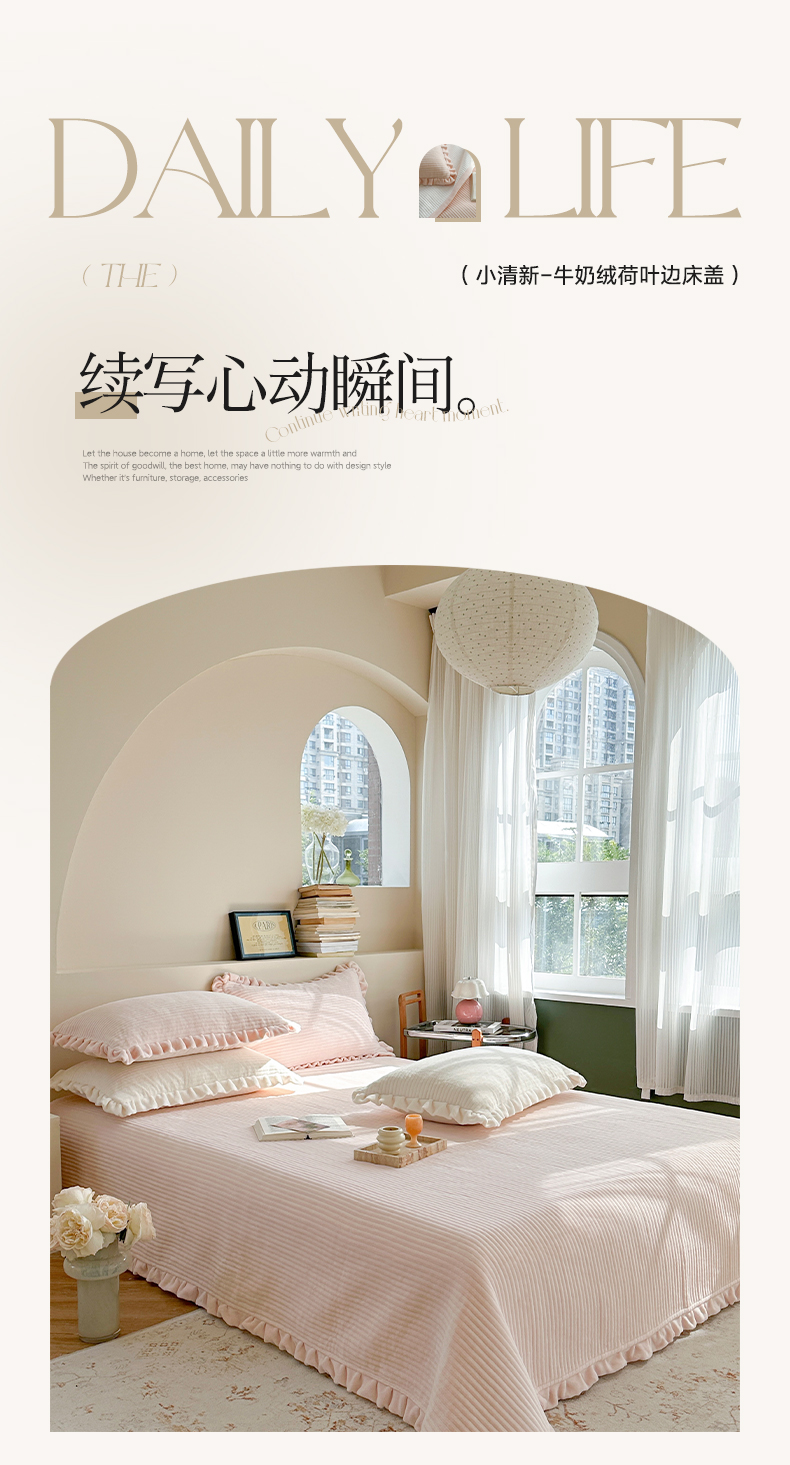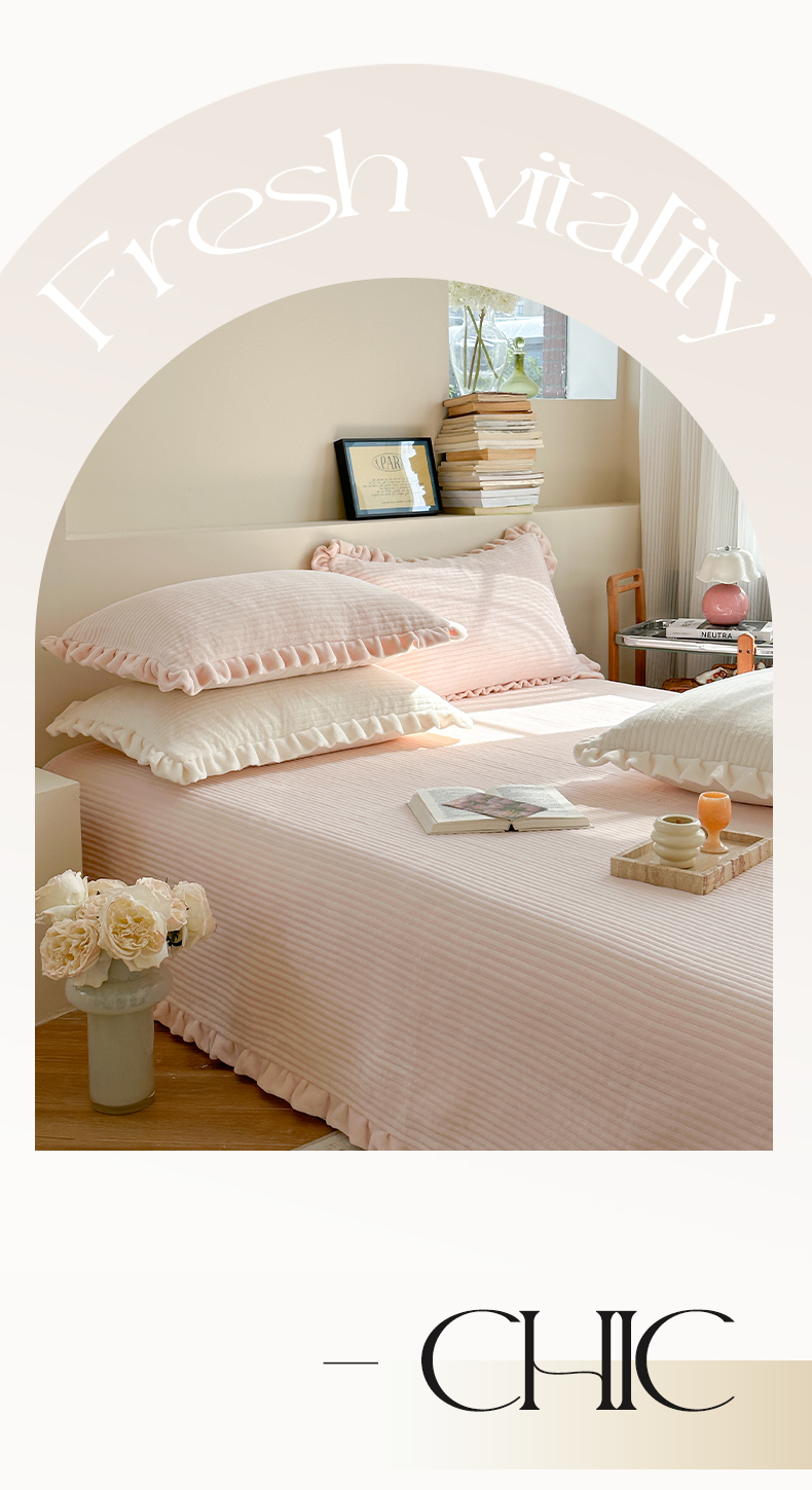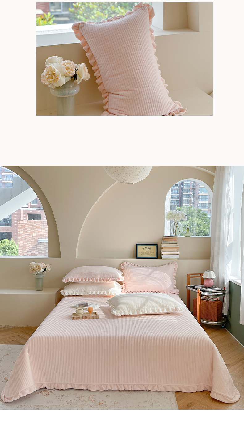 (总)琳可家居 2023新款纯色花边款高克重消光牛奶绒床盖三件套
