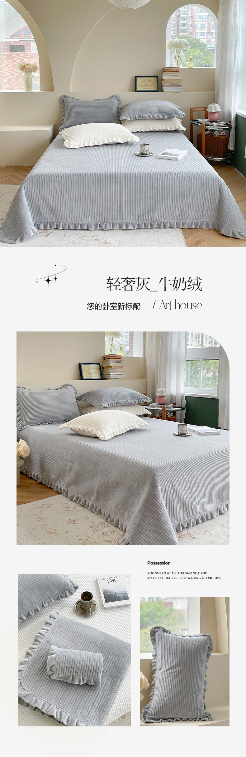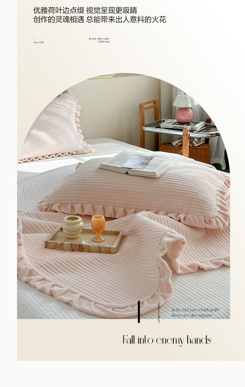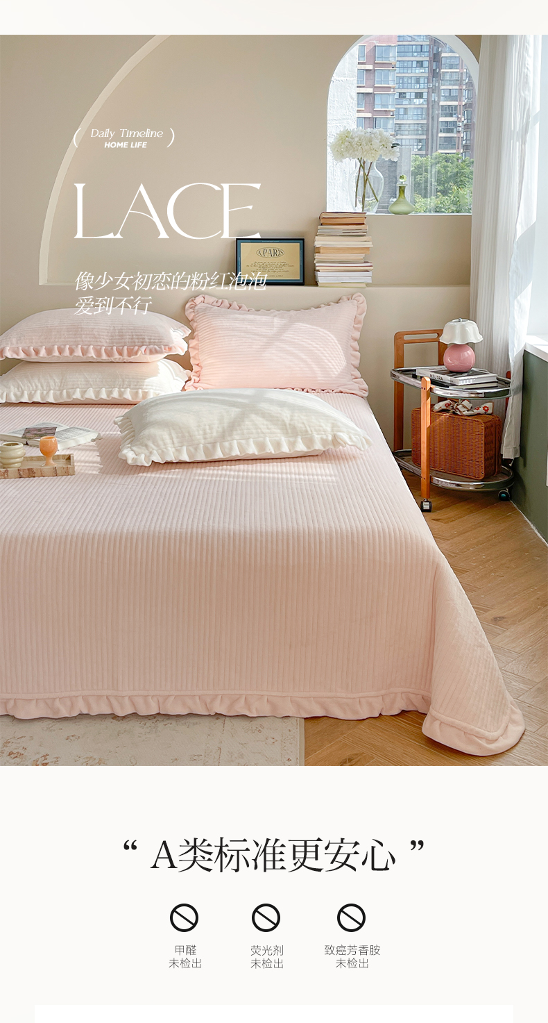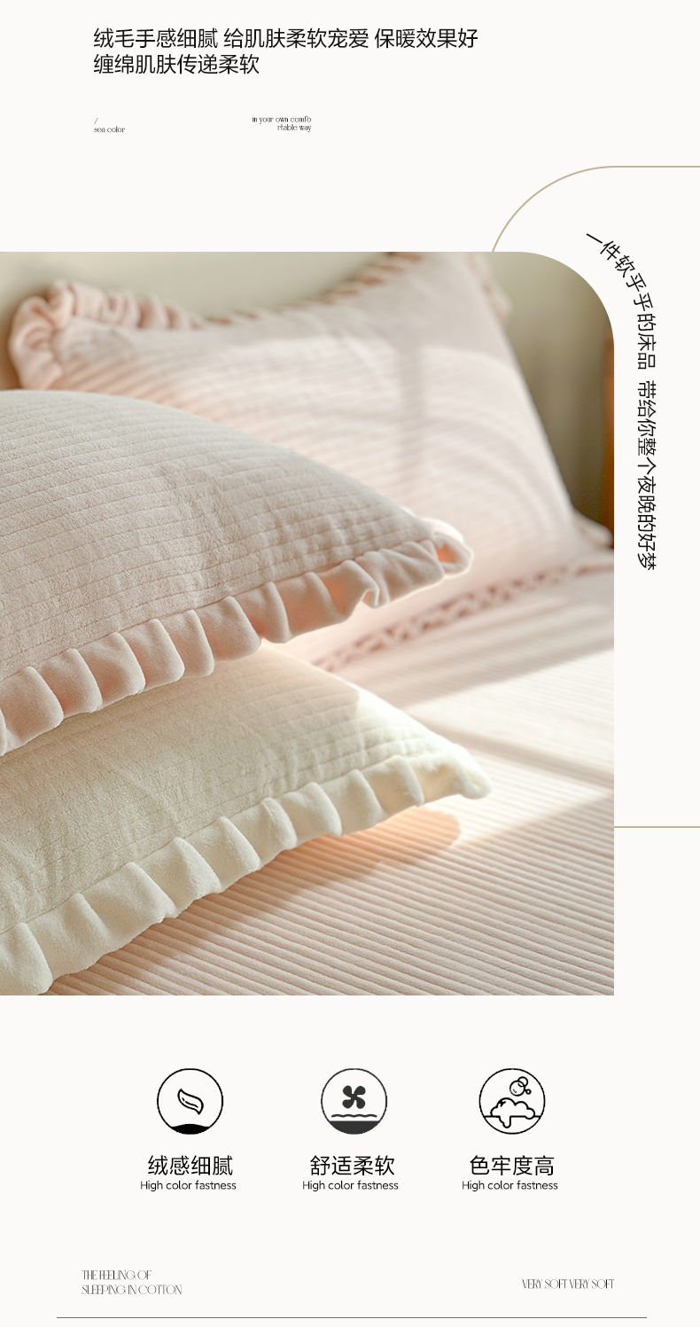 商品名称:(总)琳可家居 2023新款纯色花边款高克重消光牛奶绒床盖三件套
