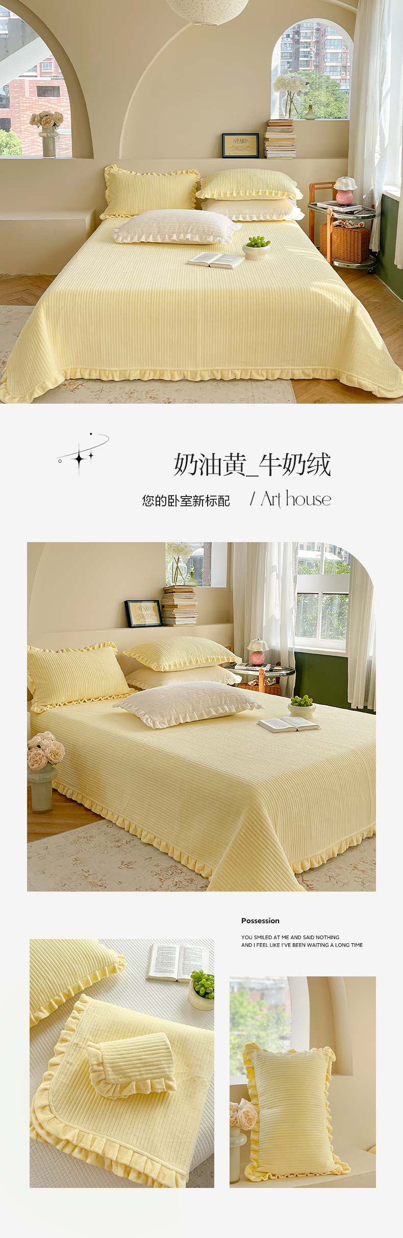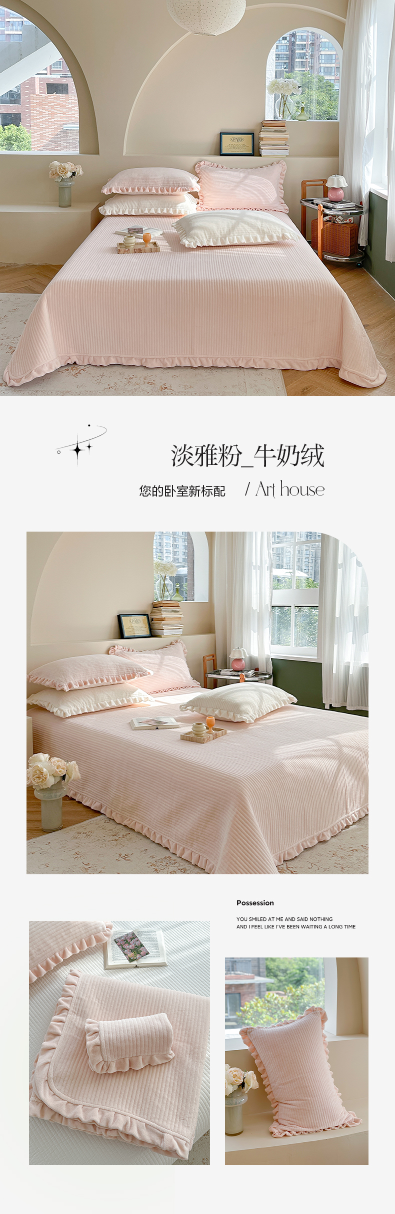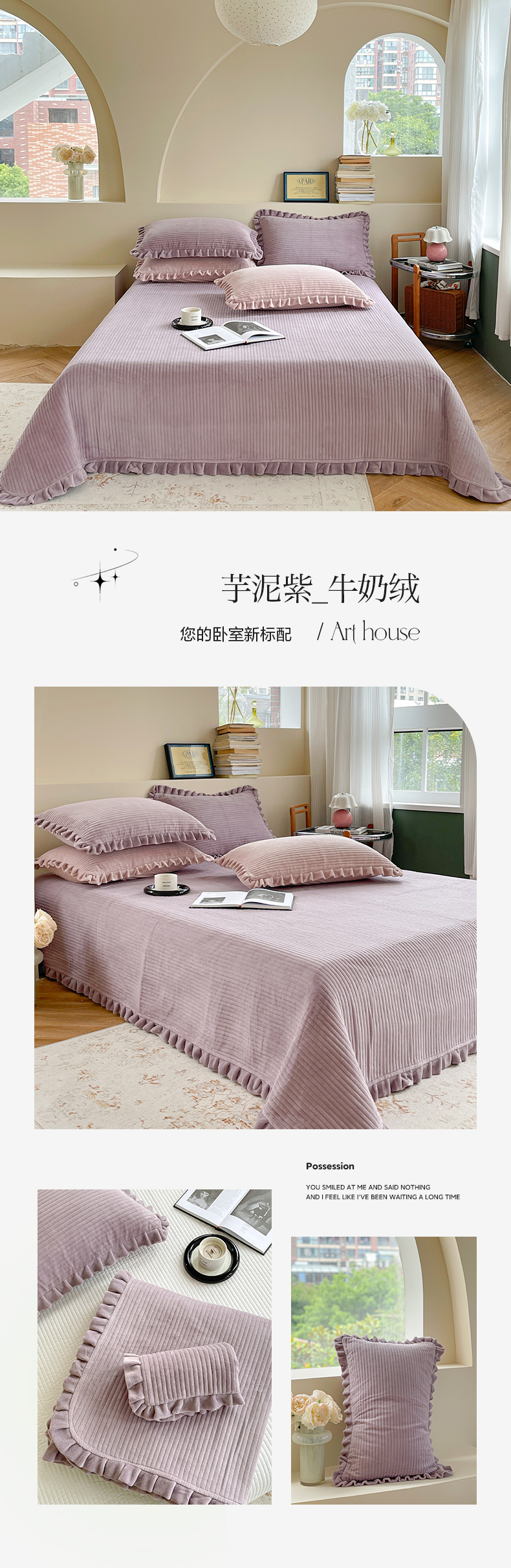 商品名称:(总)琳可家居 2023新款纯色花边款高克重消光牛奶绒床盖三件套