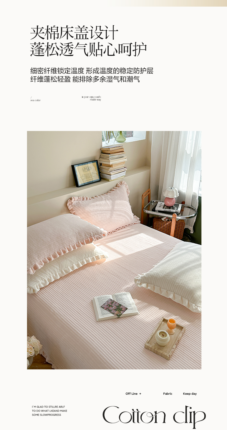 2022新款40S纯棉水洗棉韩版全棉荷叶边夹棉绗缝床盖三件套,海盐蓝,静谧灰,抹茶绿,奶油黄,千黛紫,浅豆沙,悠悠粉,云朵白,马卡桔,青草绿
