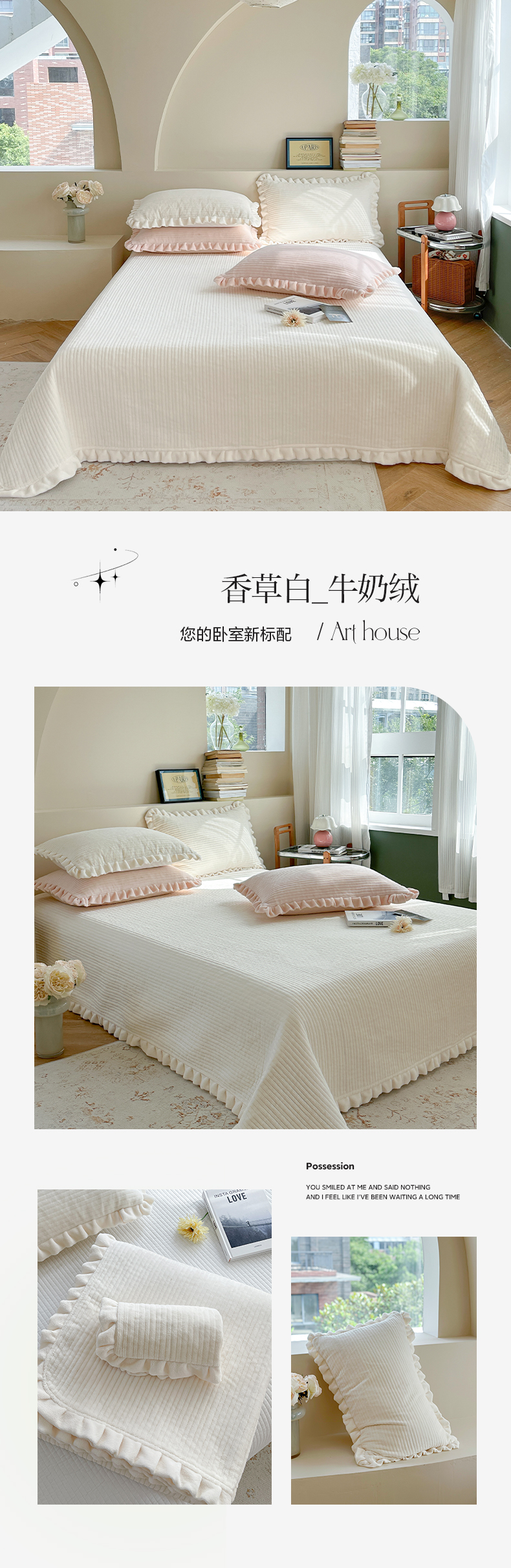 (总)琳可家居 2026新款60S长绒棉花边床盖A类双面全棉高温水洗-蝶恋系列,蝶恋-暖白,蝶恋-卡其,蝶恋-雾粉,组合