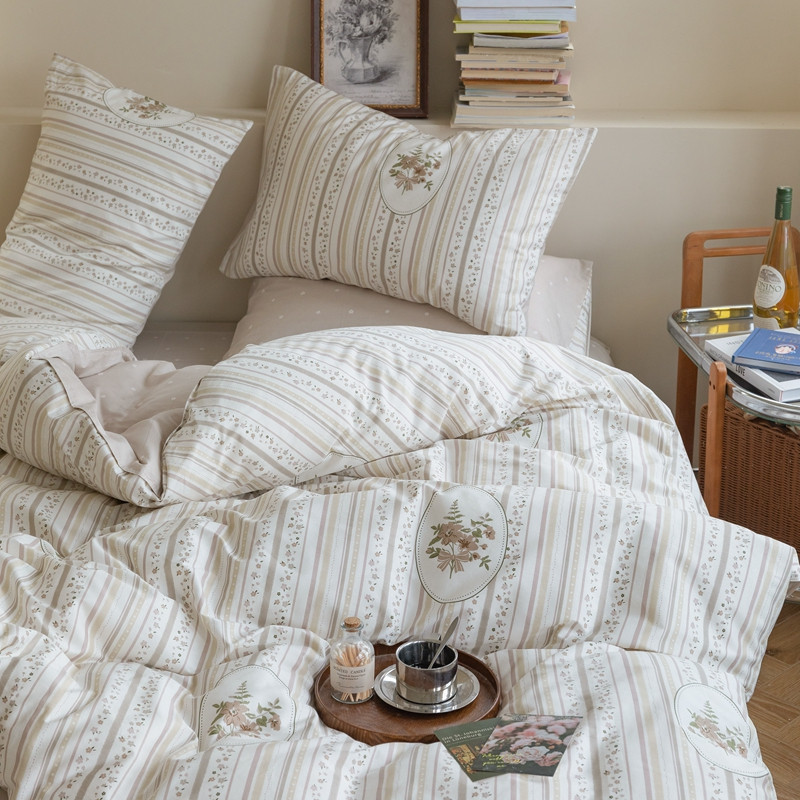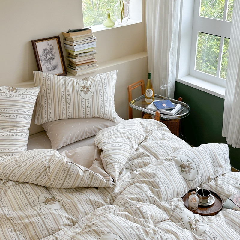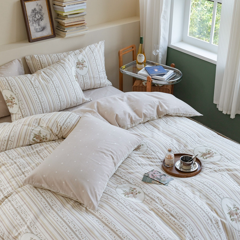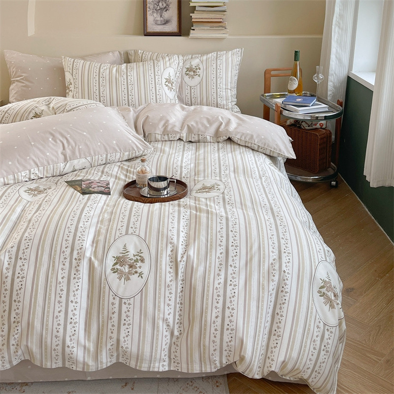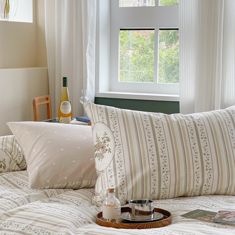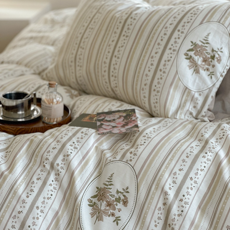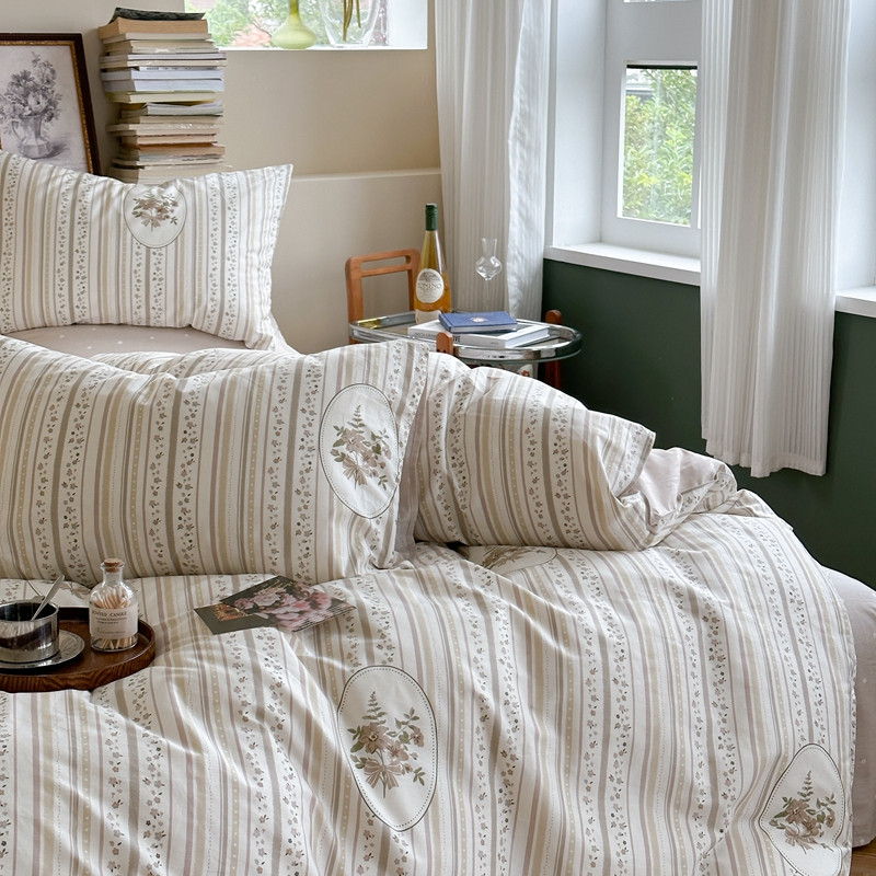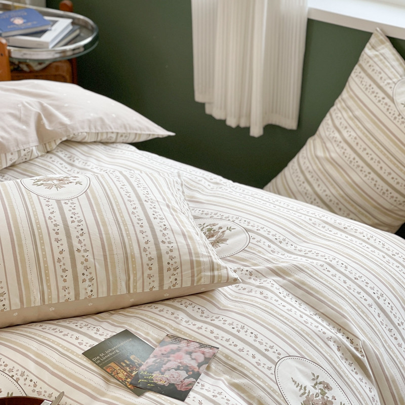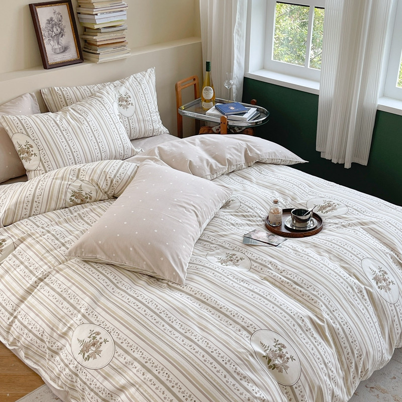 时年 2022新款全棉40支13372ins条纹款四件套 复古奶绿,复古奶绿