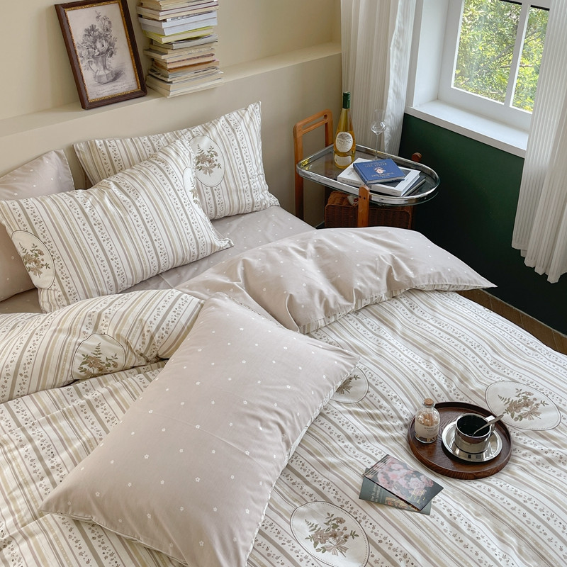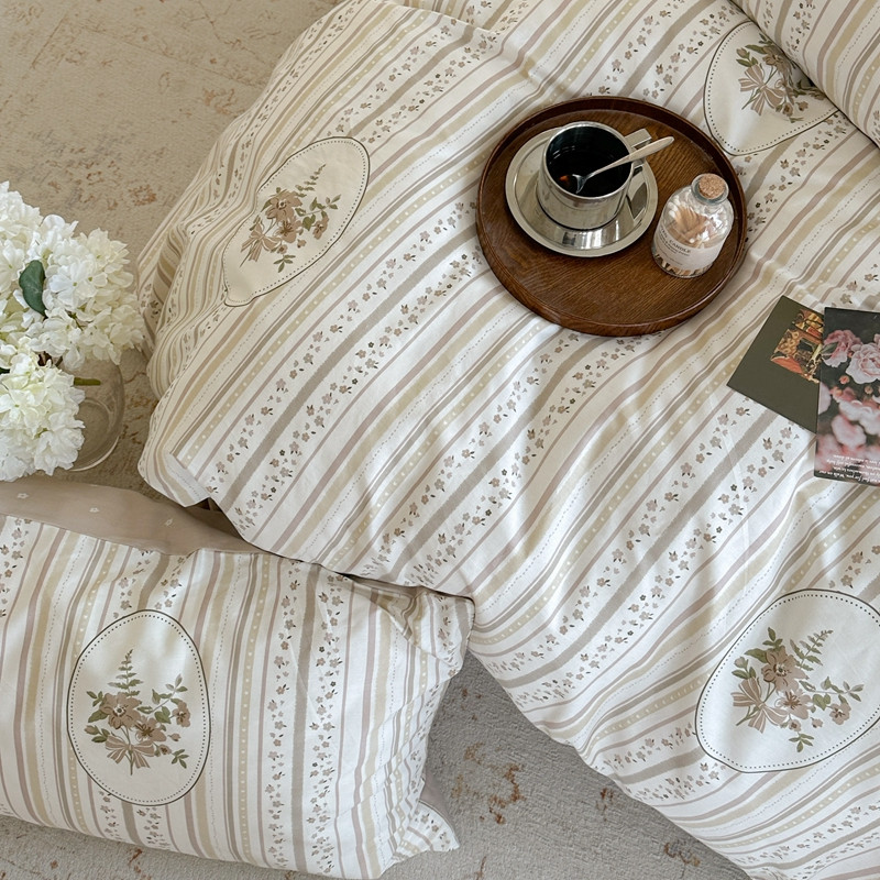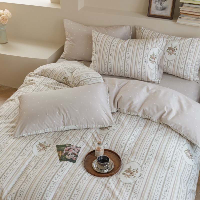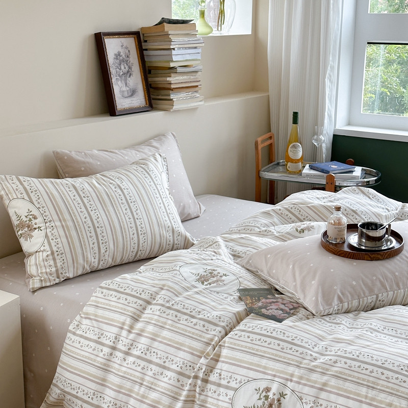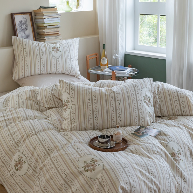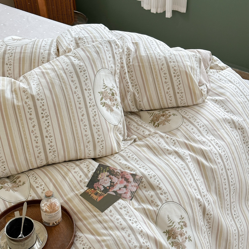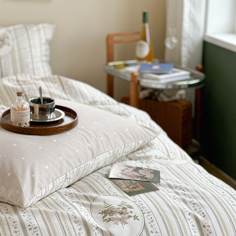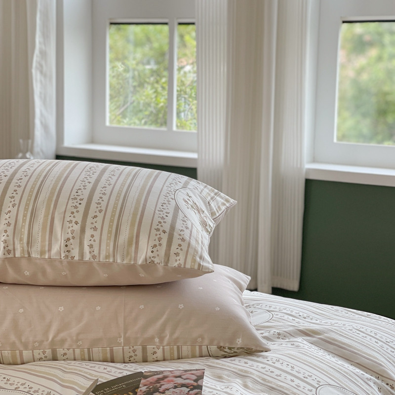 时年 2022新款全棉40支13372ins条纹款四件套 复古奶绿,复古奶绿