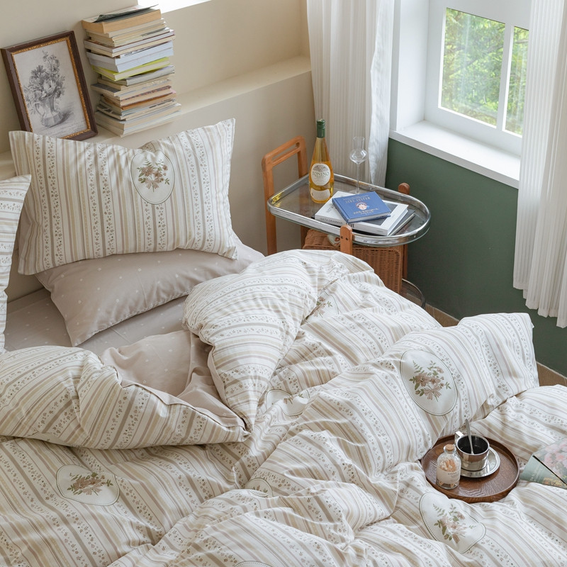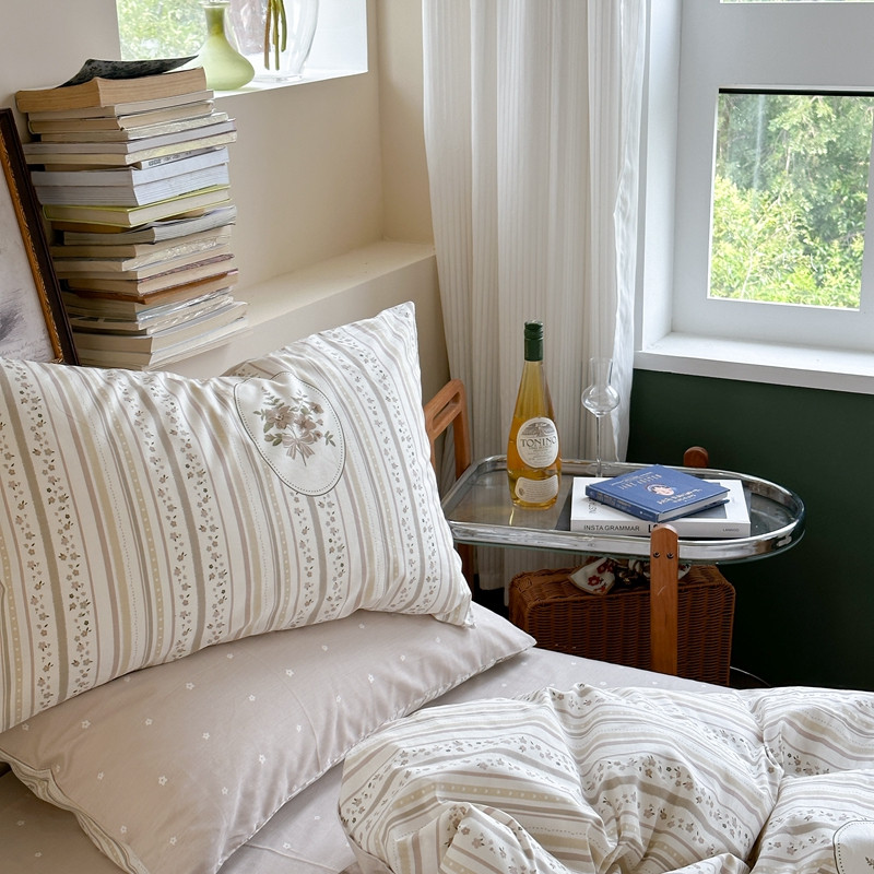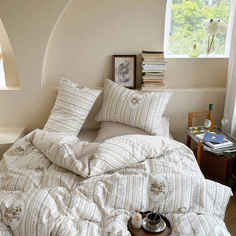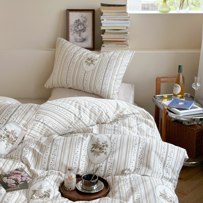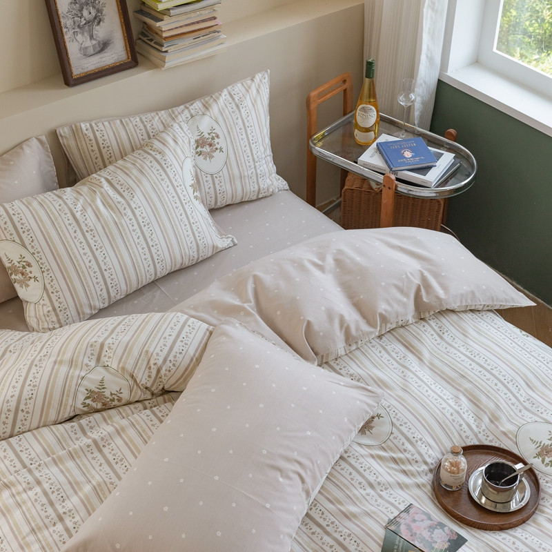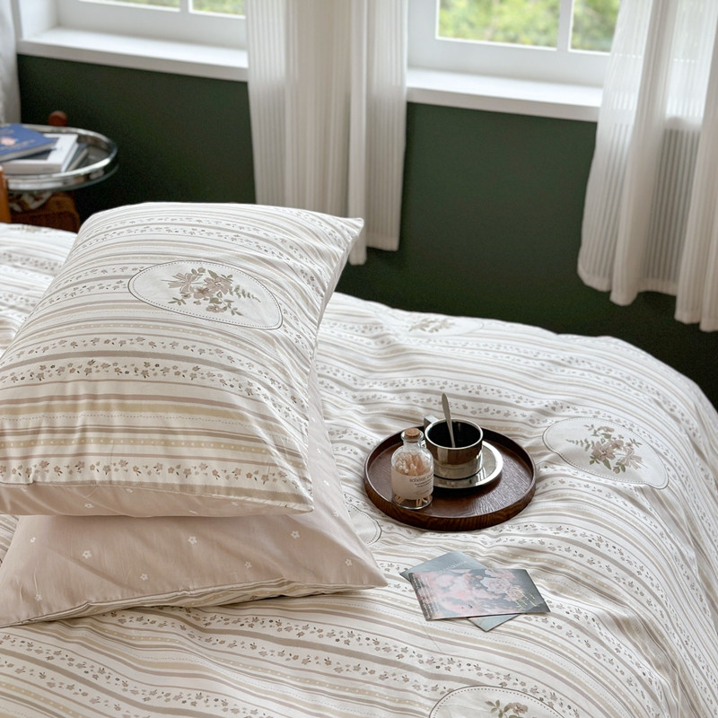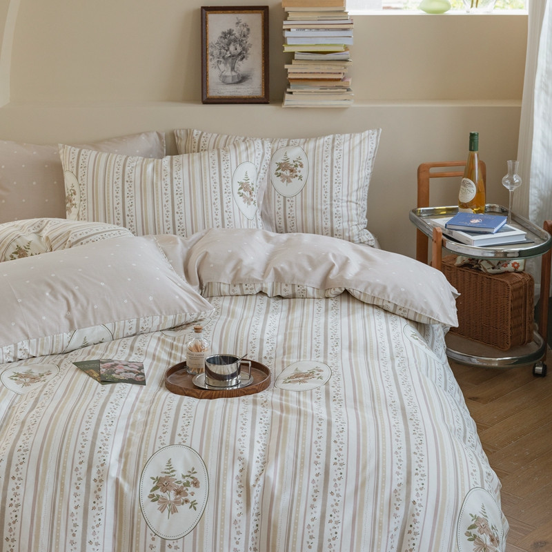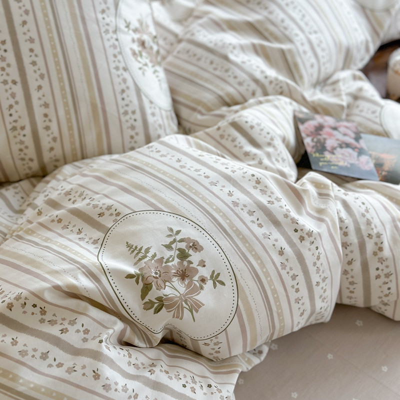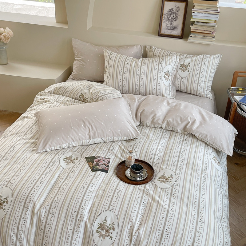 时年 2022新款全棉40支13372ins条纹款四件套 复古奶绿,复古奶绿