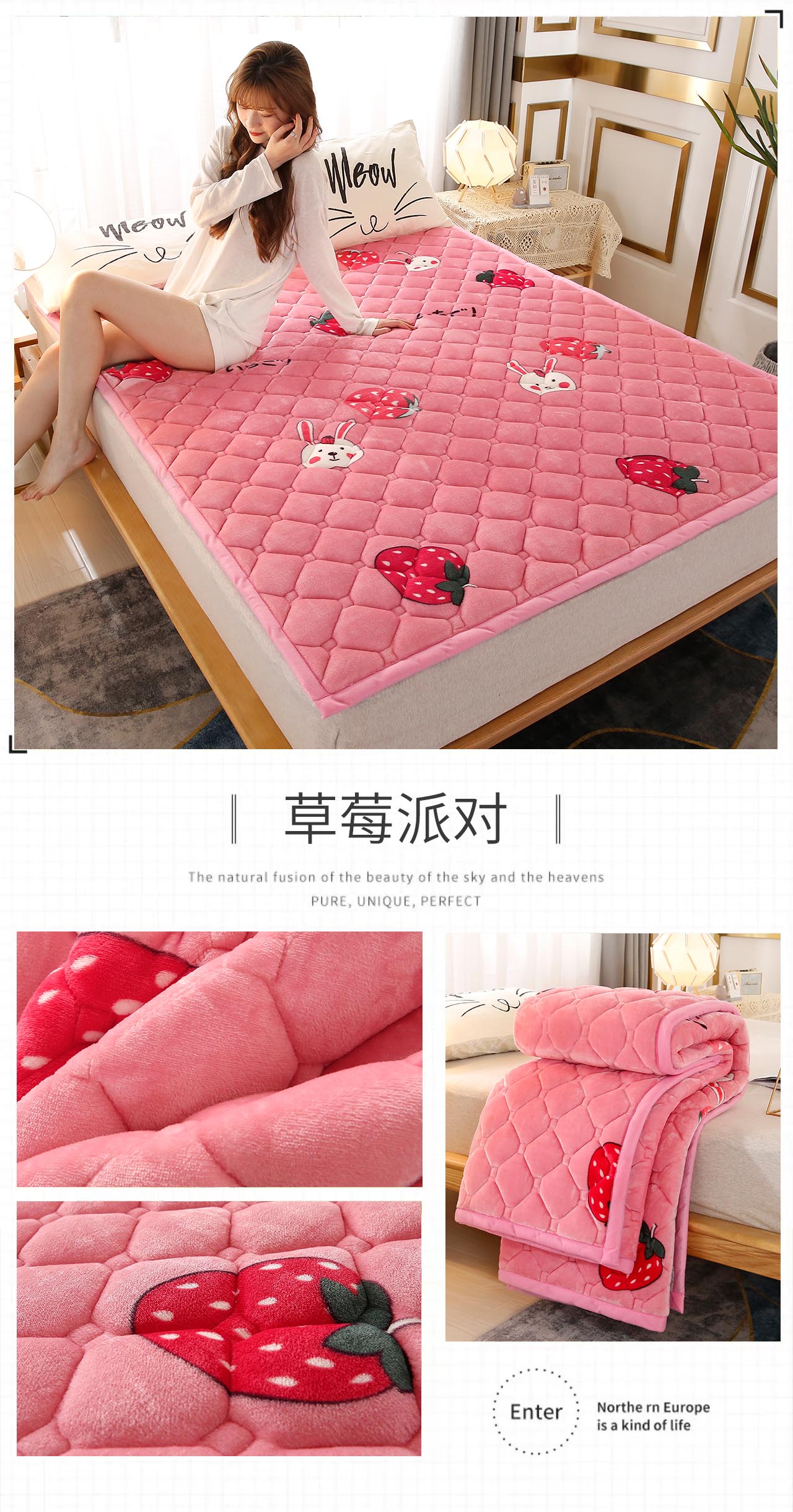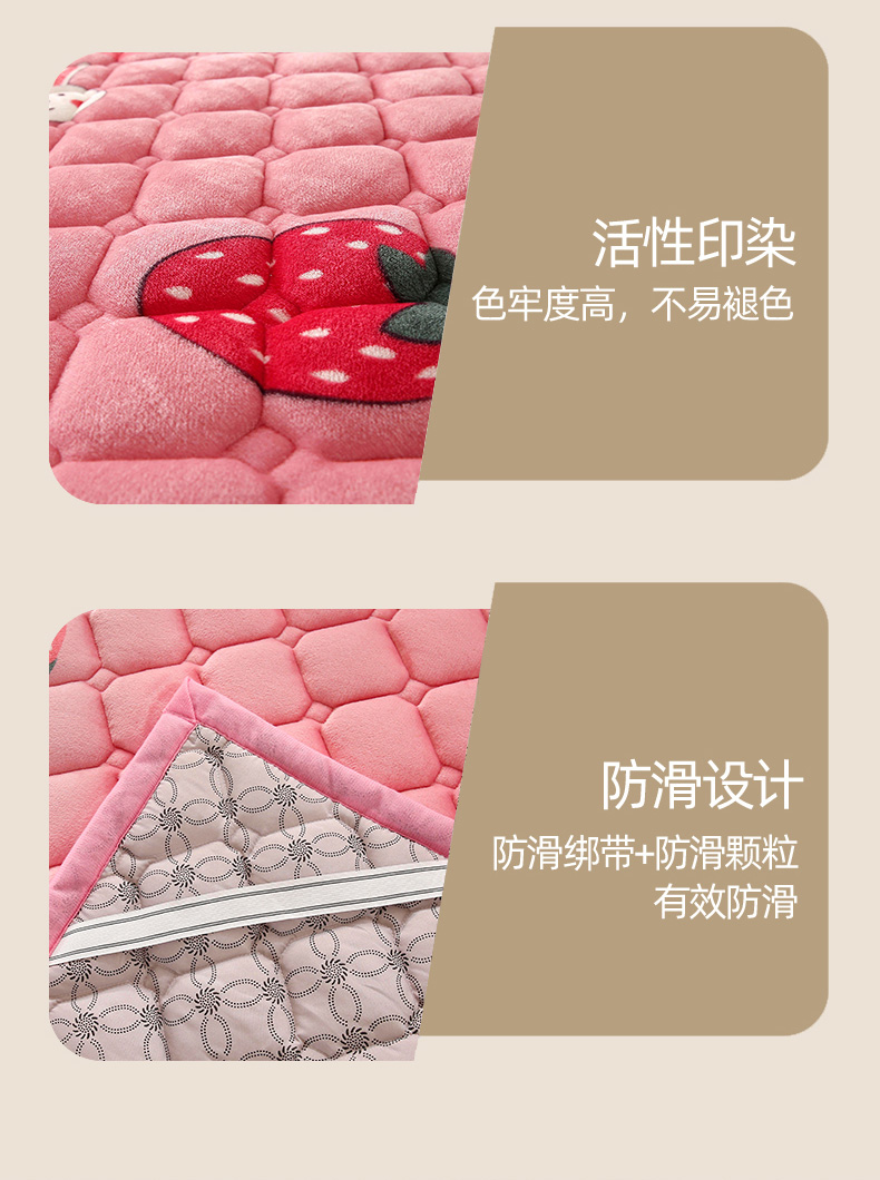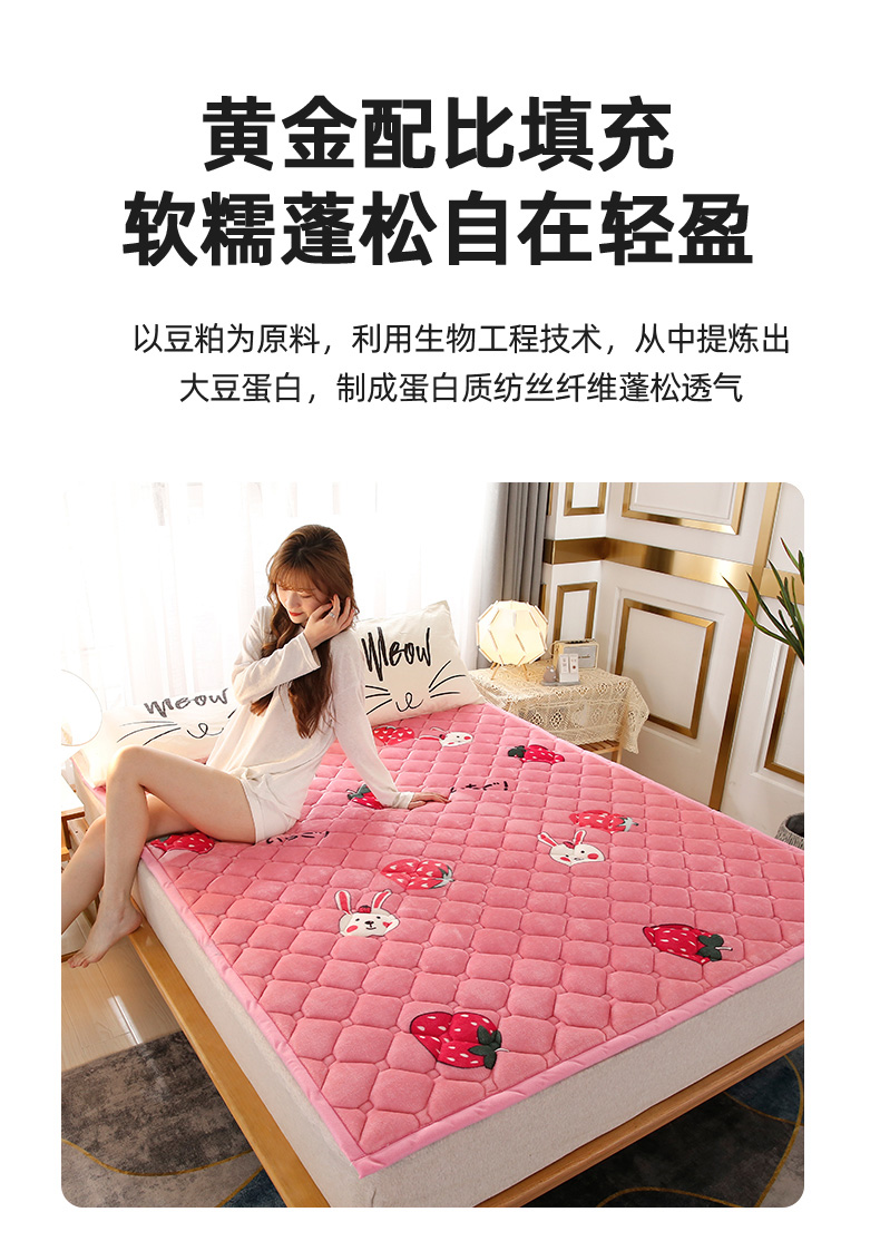 商品名称:东宇 2024年新款A类抗菌牛奶绒大床加厚床垫 草莓派对