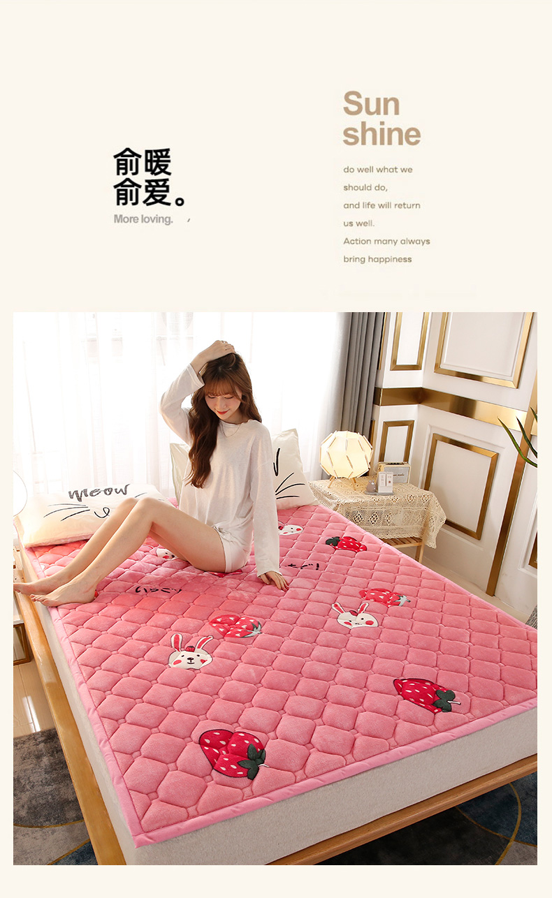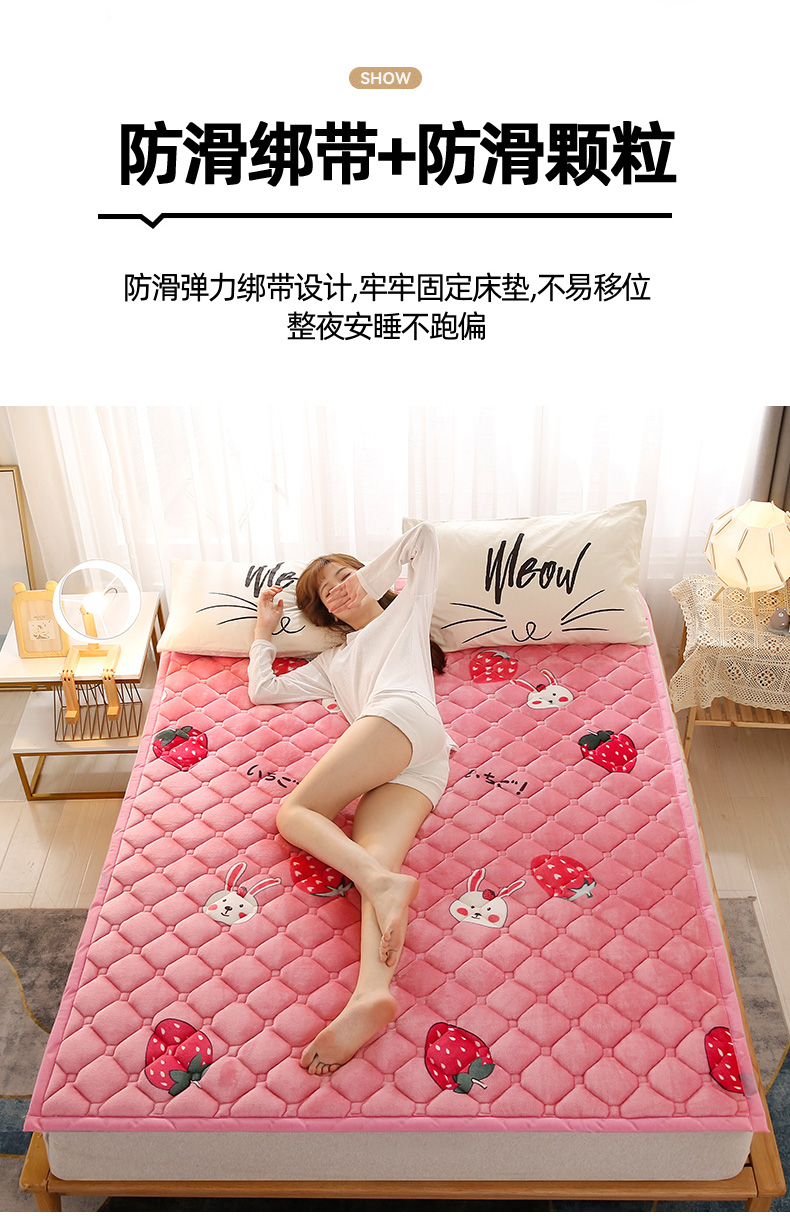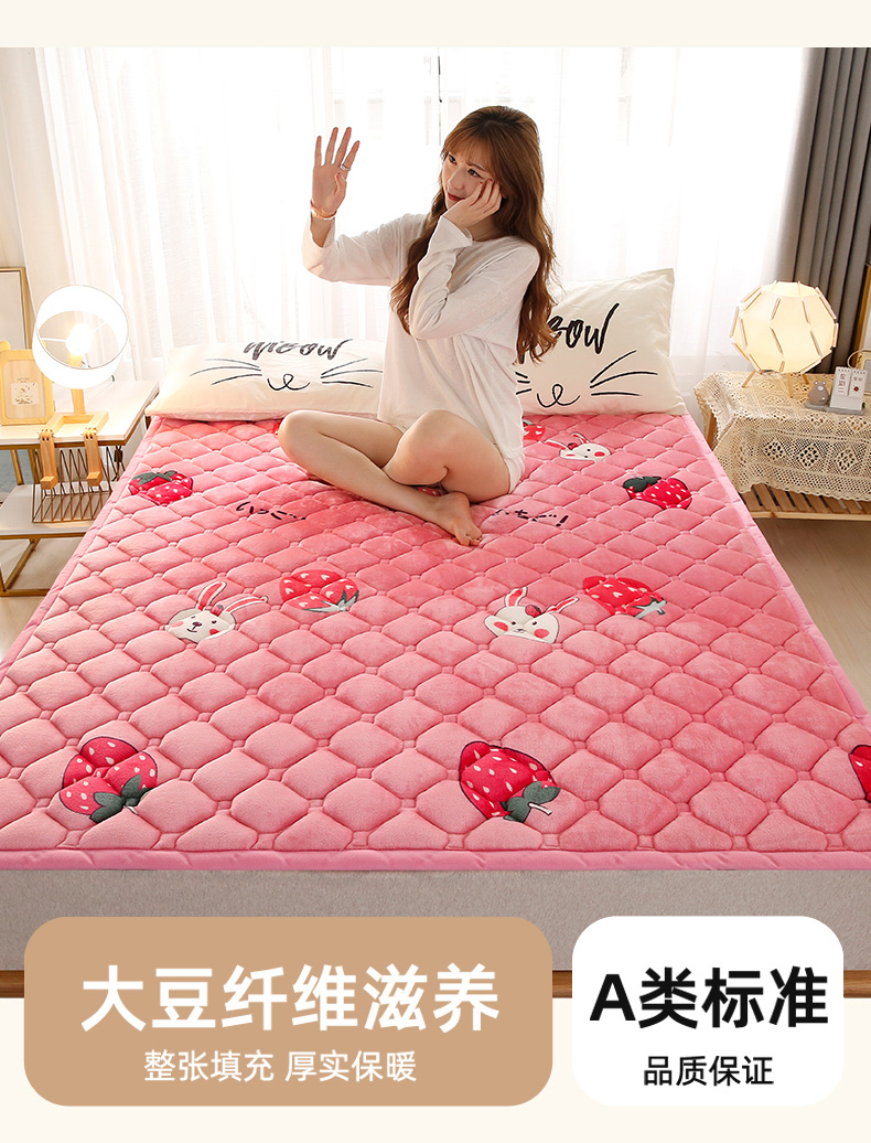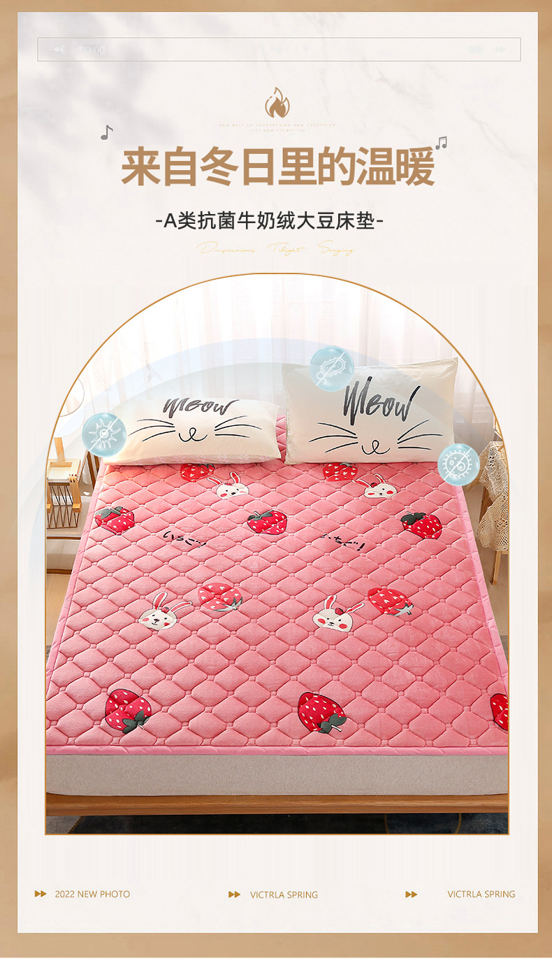 商品名称:东宇 2024年新款A类抗菌牛奶绒大床加厚床垫 草莓派对