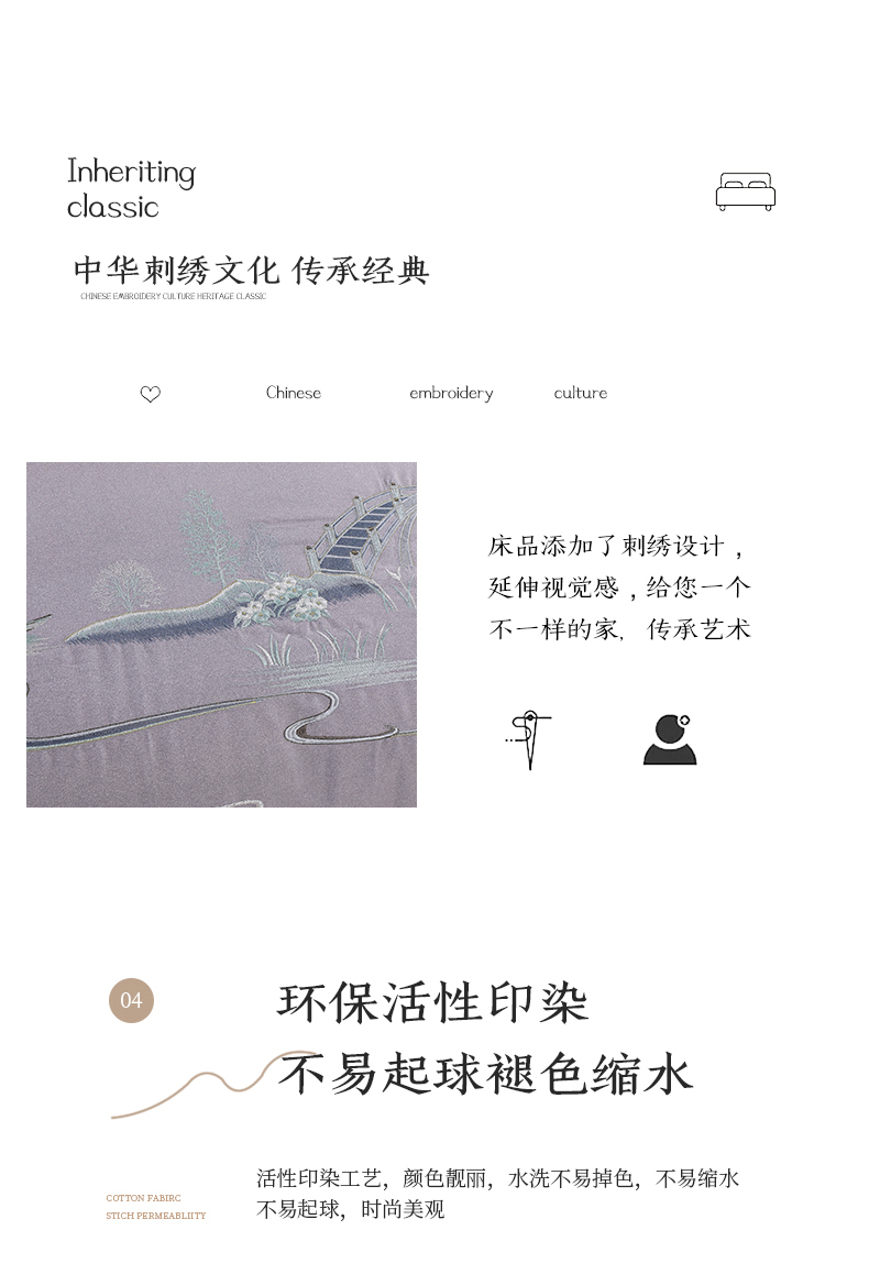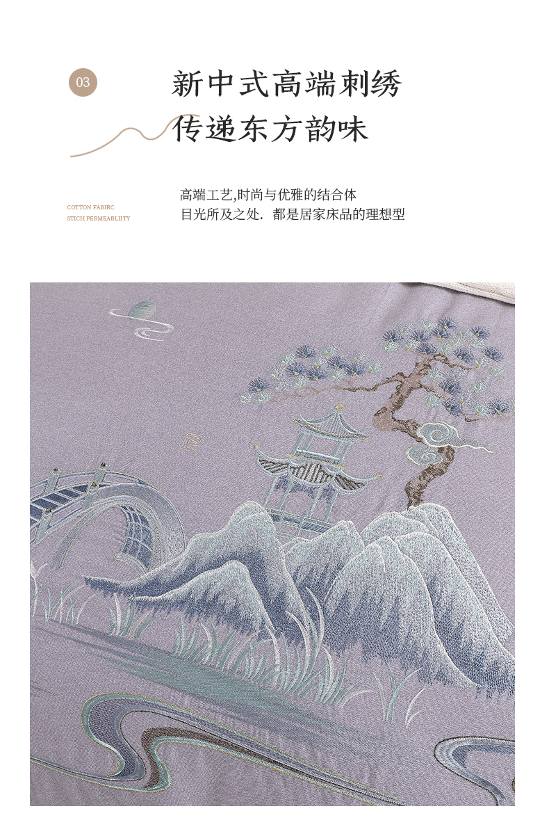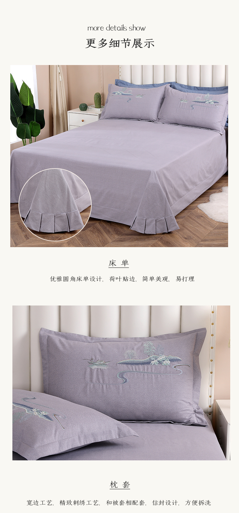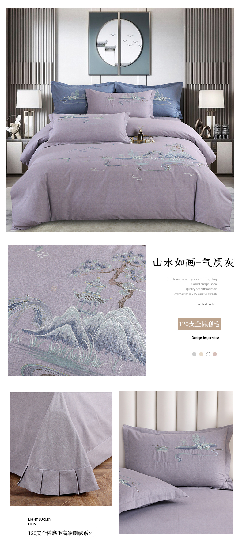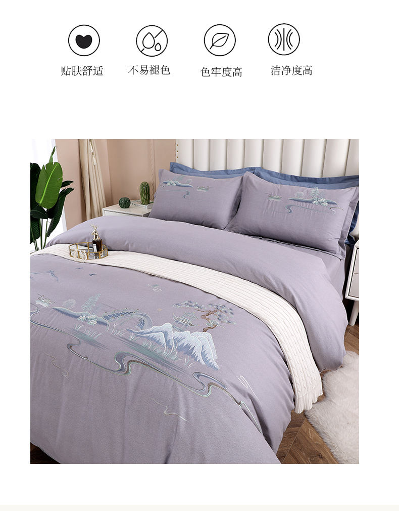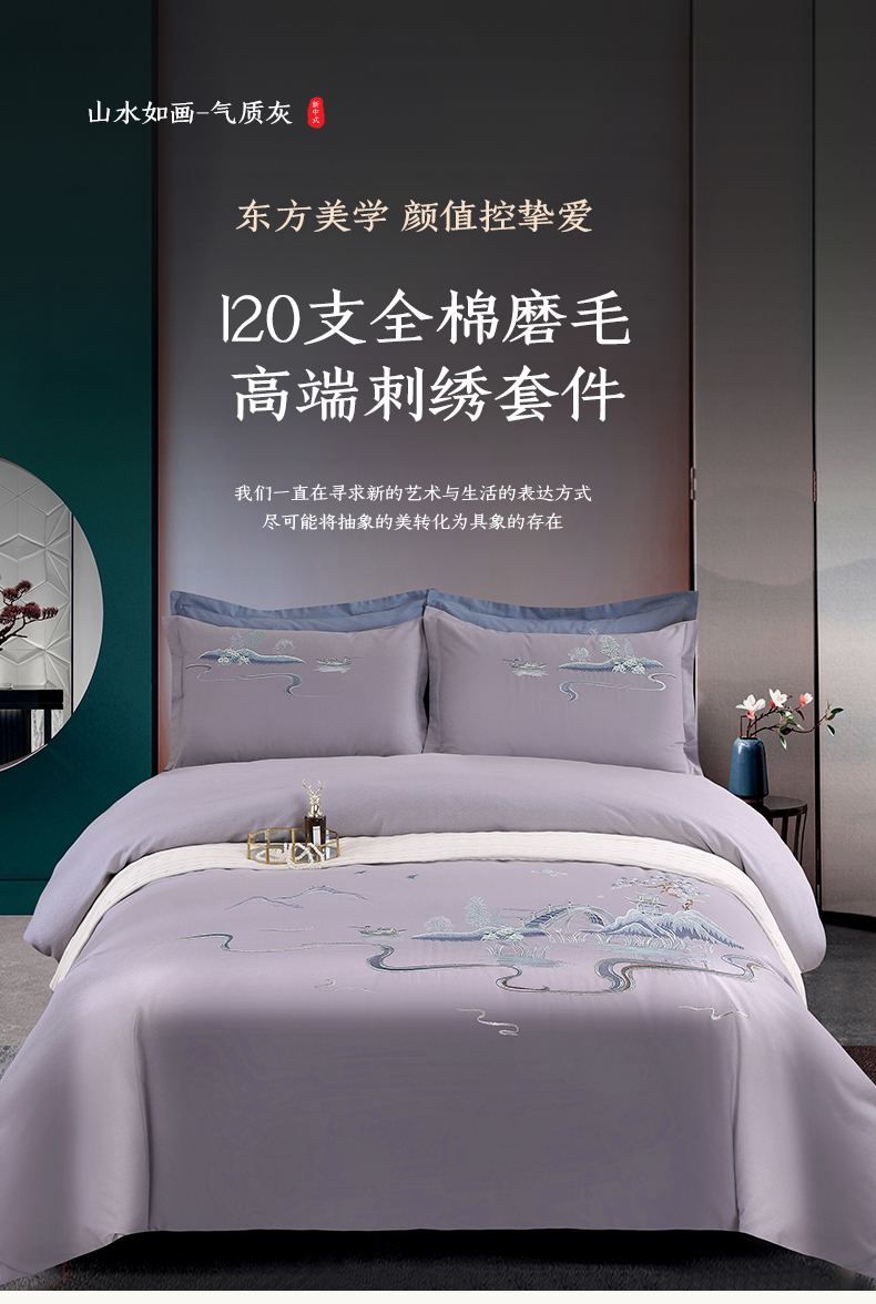商品名称:浩情 2026新款高端加厚120S高端磨毛刺绣系列四件套 山水如画-气质灰