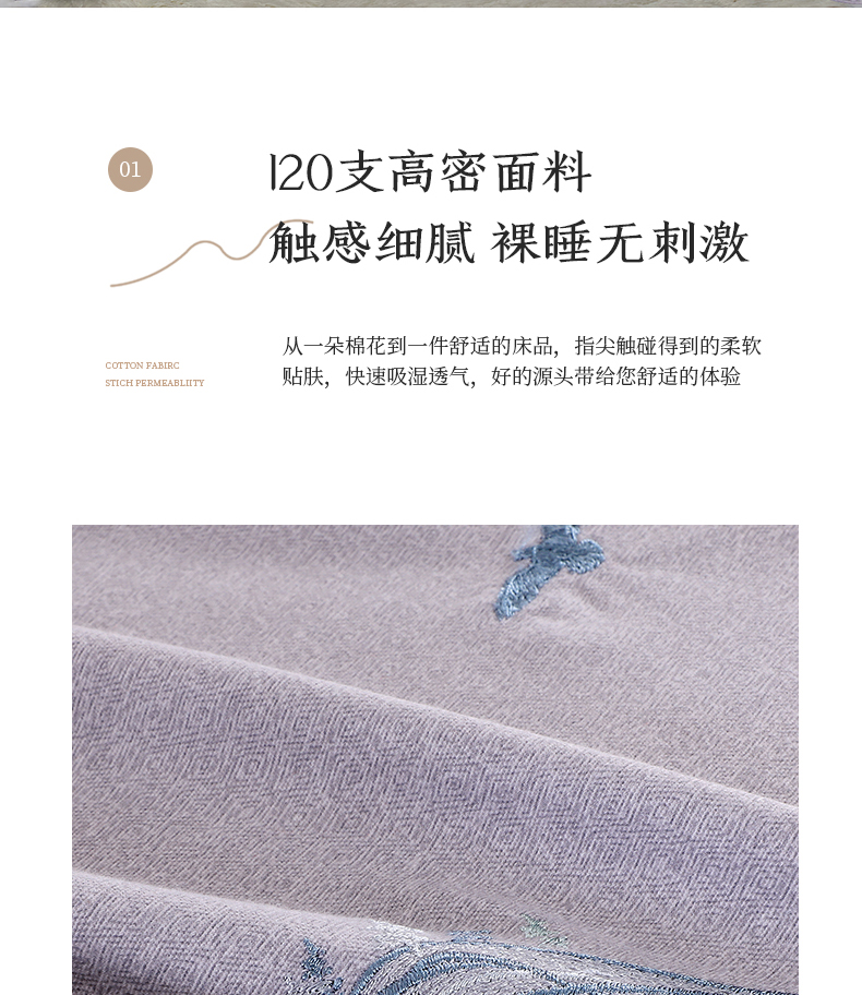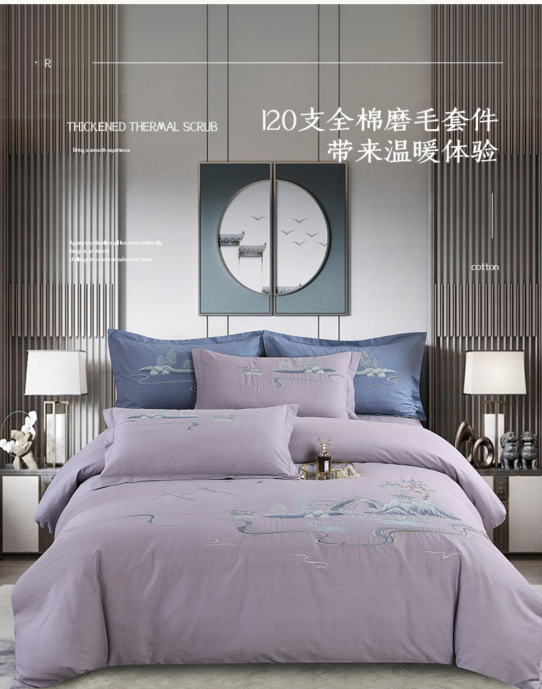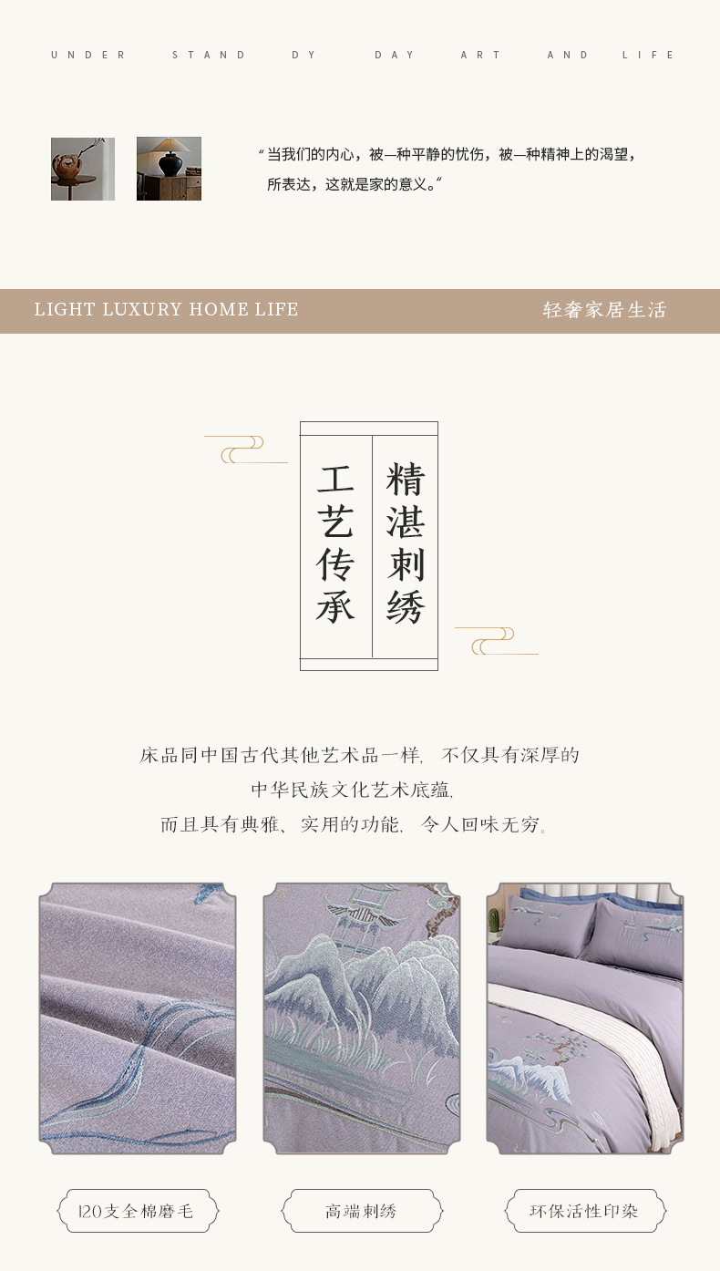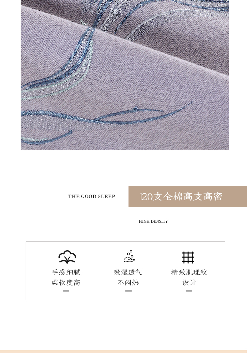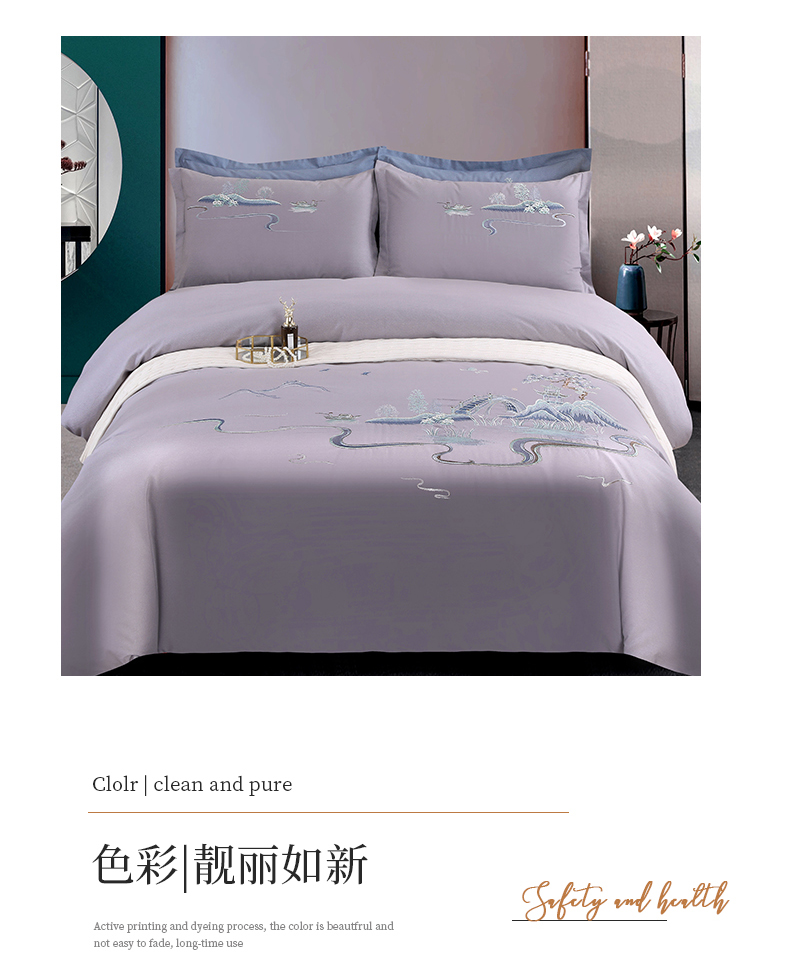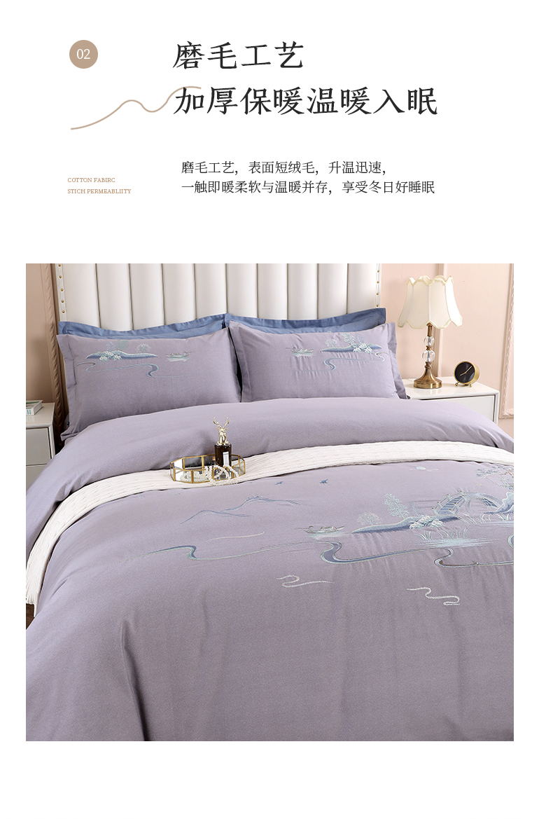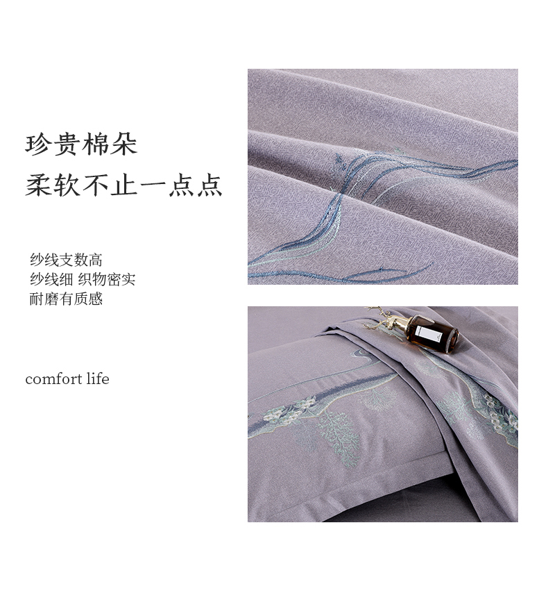 商品名称:浩情 2026新款高端加厚120S高端磨毛刺绣系列四件套 山水如画-气质灰