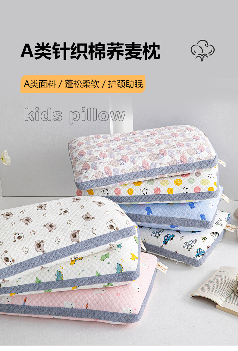 (总)仁宇2023年新款A类全棉针织棉卡通幼儿园全荞麦枕头枕芯