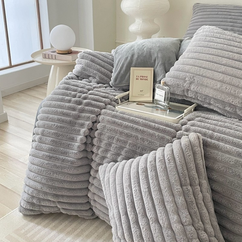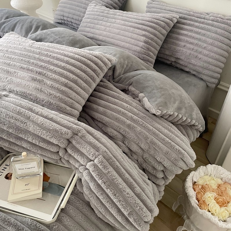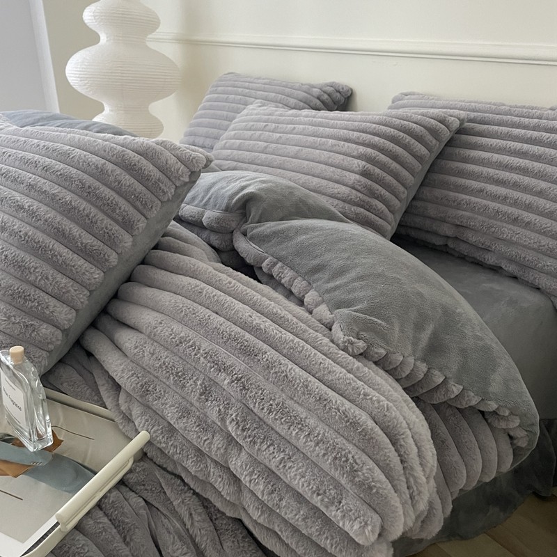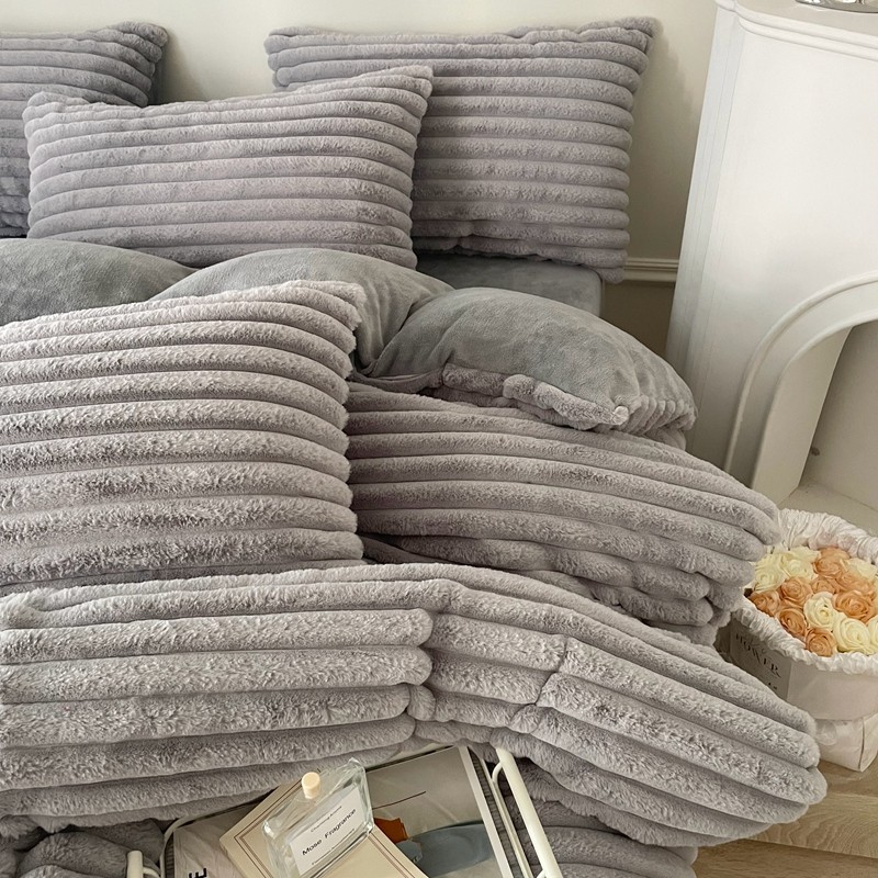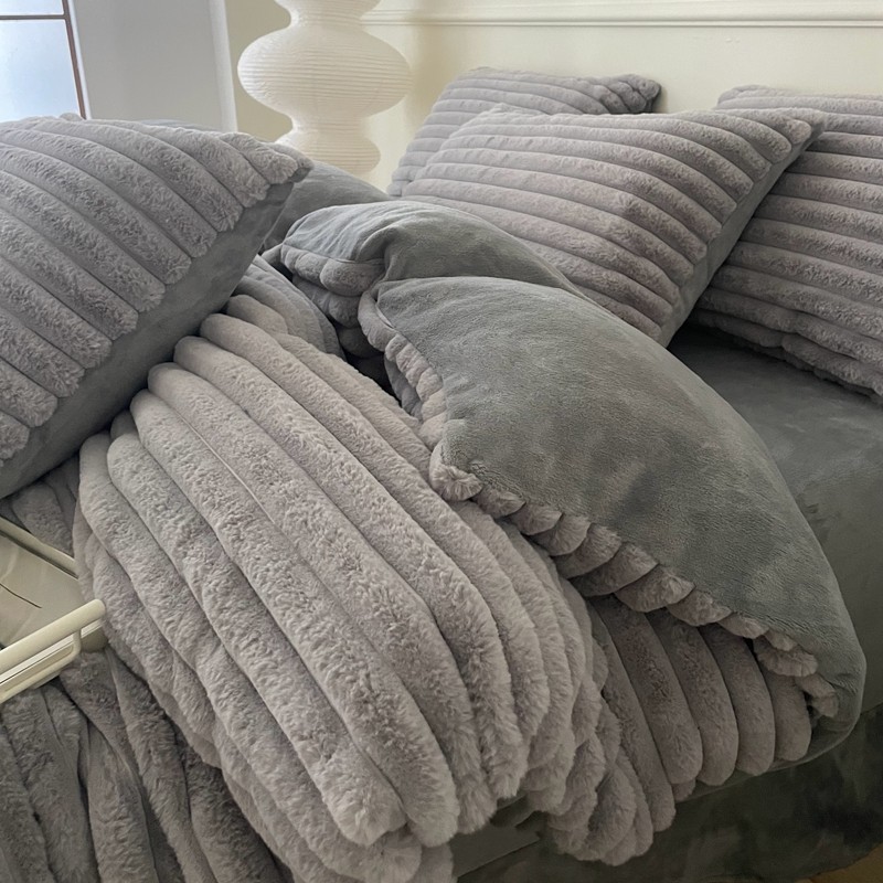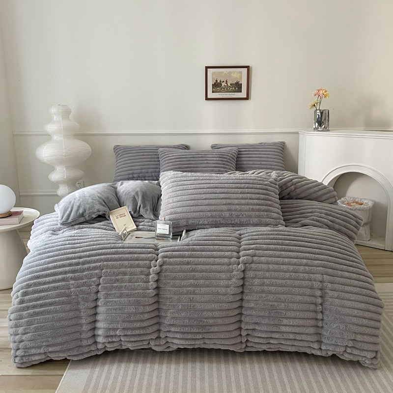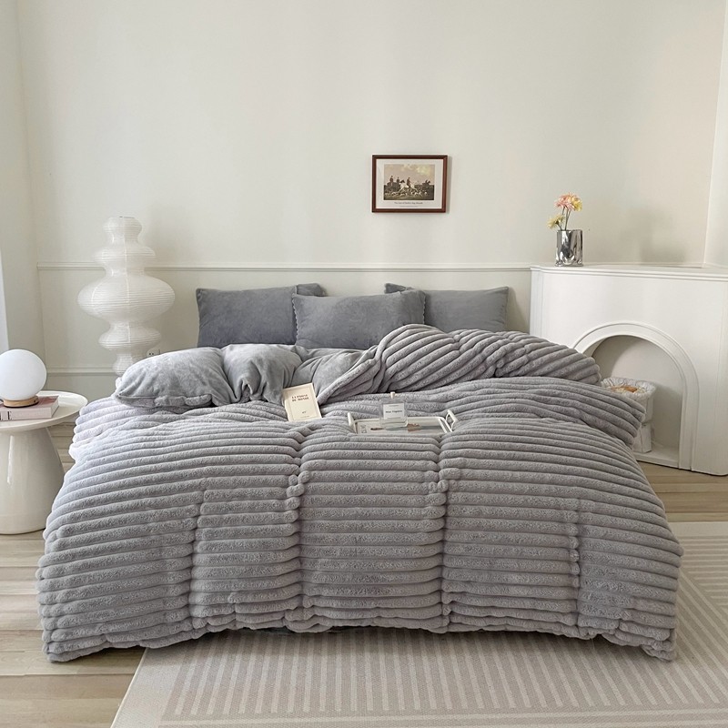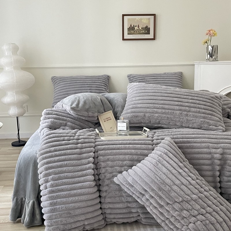 商品名称:畅畅家纺 2023新款兔毛绒兔兔绒懒兔绒立体剪花牛奶绒四件套 波浪-灰